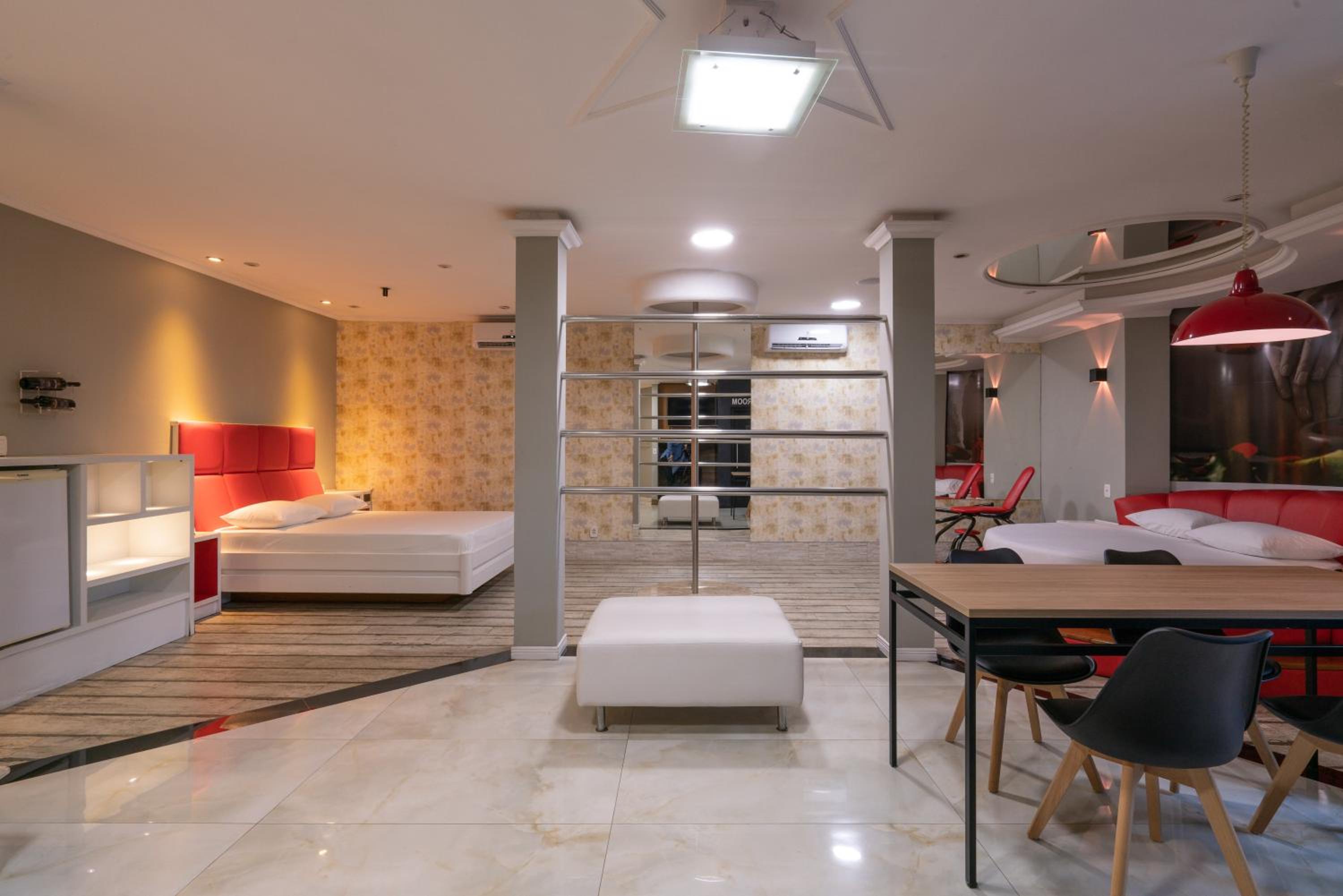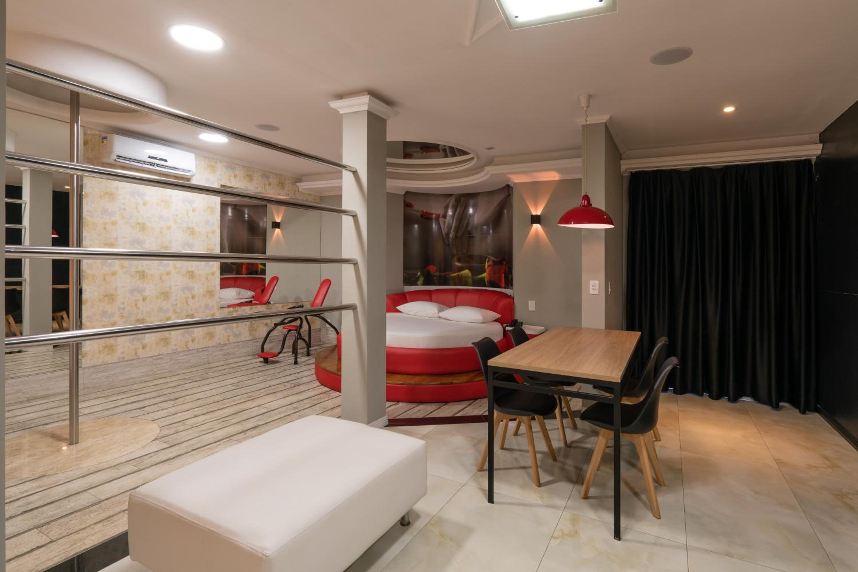 Sempre frequento este motel, porém decidimos pegar um quarto diferente, achando que seria melhor, para começar o quarto era diferente das fotos, uma parte com assoalho de madeira, em péssimas condições, sem cadeira erótica, iluminação horrível, vários interruptores não tinham função alguma, luzes queimadas, resumo, pagamos mais caro por um quarto ruim, já pagamos um pouco mais barato por uma suíte novinha e limpinha, essa muito visível que era antiga e não era feita manutenção, ala 800 suíte 18!