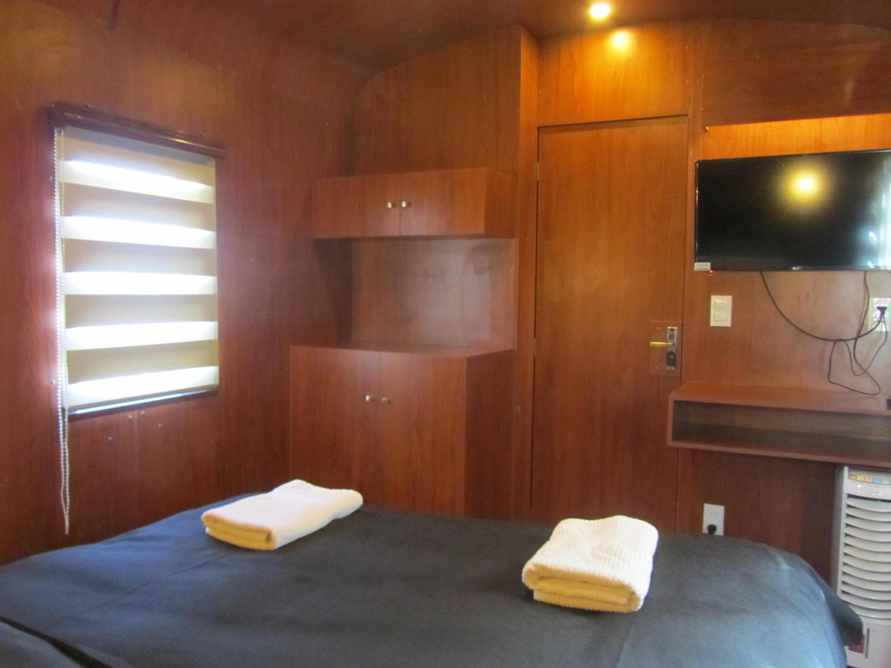 Vamos la... paguei a acomodação no vagão e chegando ao hotel fui alojada no quarto que era atras da linha ferroviária.... buzina de trem ate 1 da manhã! Travesseiro duro e extremamente alto, sendo totalmente desconfortável! Café da manhã super abaixo no esperado, pão duro, nao tinha opcao de frios e nem misteira ou torradeira para "amolecer" o pão. Nao tinha toalhas no nosso quarto e quando fui a recepção pedir toalhas fui tratada com grosseria de forma aleatória.... nao entendi nada! Enfim, ideia do hotel boa, mas MUITA coisa a melhorar... banheiro alaga, travesseiro ruim, recepção rude e por ai vai...
