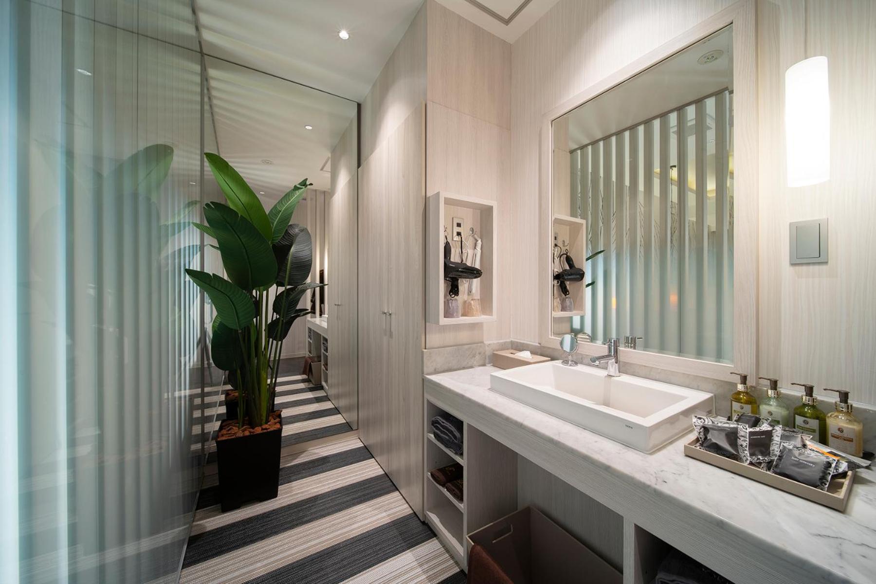 Excellent facilities. Great selection of toiletries available. Our check in was excellent , we had contact via email and in person. A lovely helpful female staff member was very friendly and assisted us throughout the process as did the staff member who emailed me and answered my questions. Very good hotel! Very large and spacious suite, large bed and spa bath. Excellent stay.