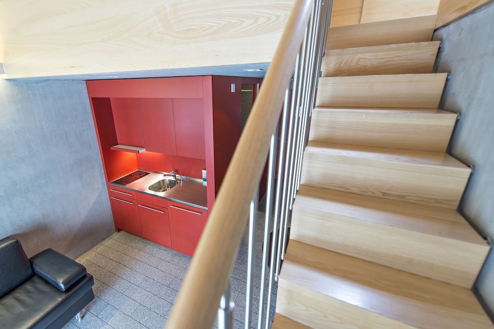 Excelente, mi habitación tenia nevera, estufa y algunos utensilios de cosina. Baño super cómodo cuarto y armarios amplios. TV grande. No tiene aire acondicionado y solo abre una ventana pequeña. Cerca de una parada de bus. Desde la estación de trenes la guagua 606 te lleva a la parada celerina y de ahí caminas 10 min hasta el hotel. Tiene 3 lavadoras y sexadoras para uso del huesped. Excelente experiencia