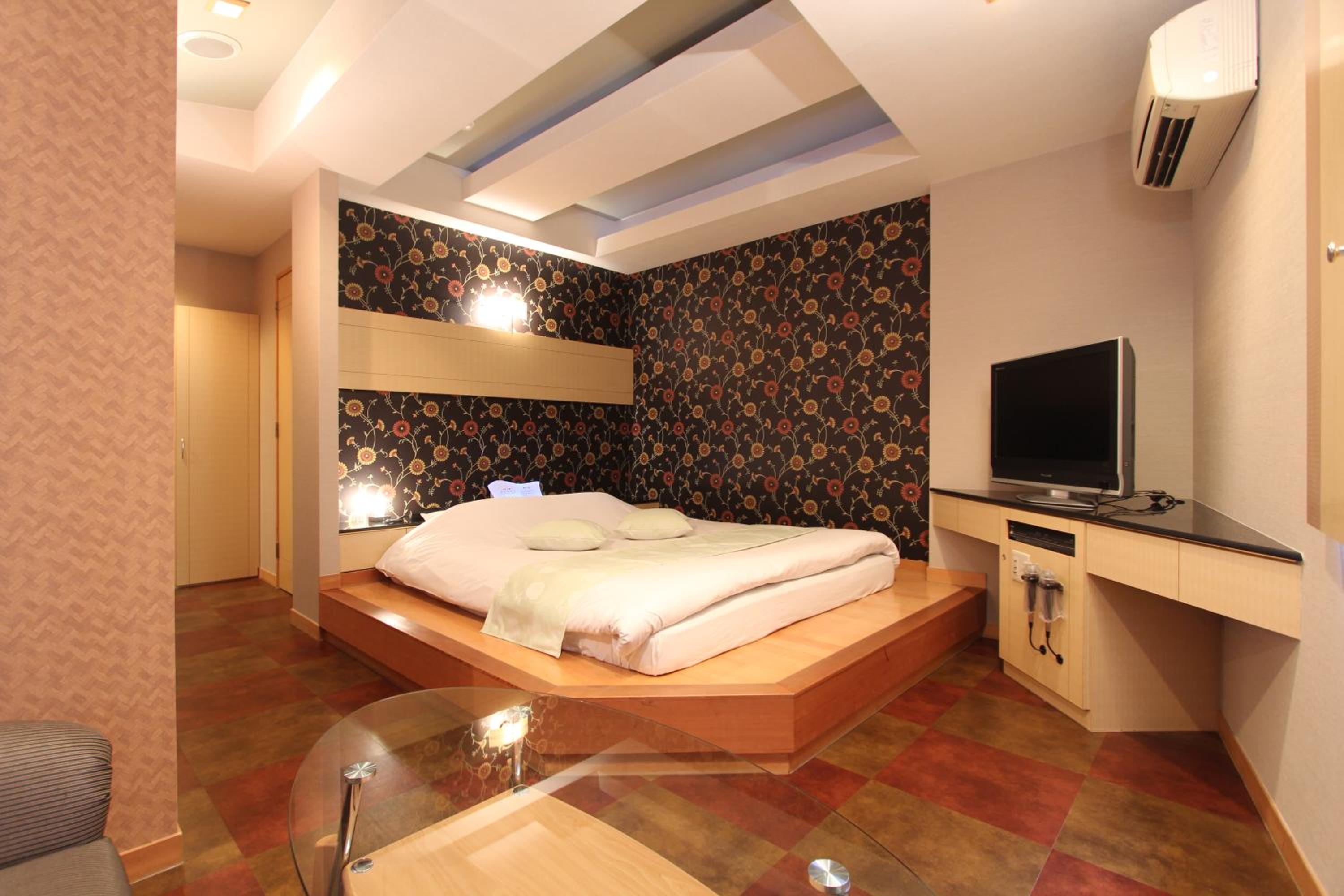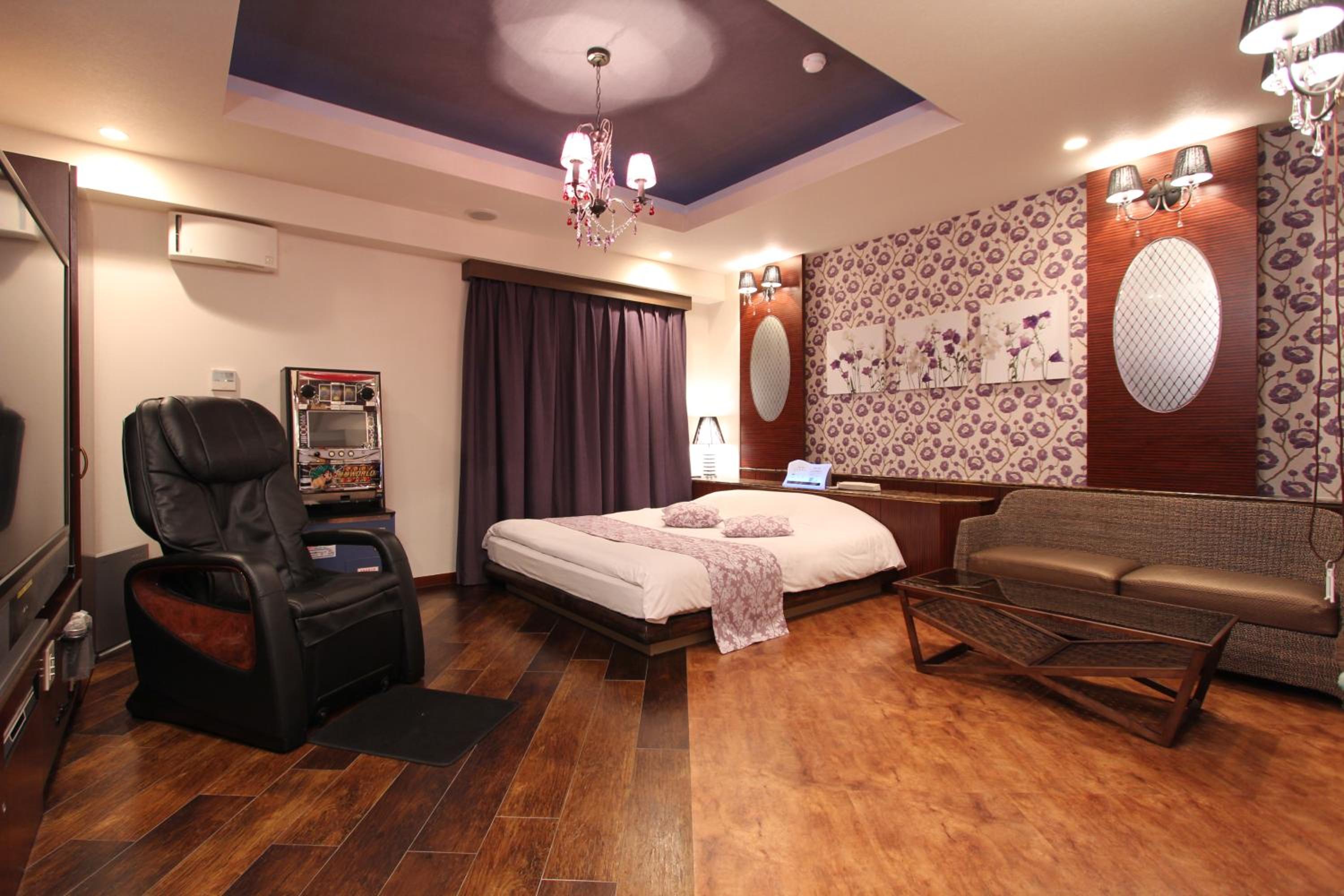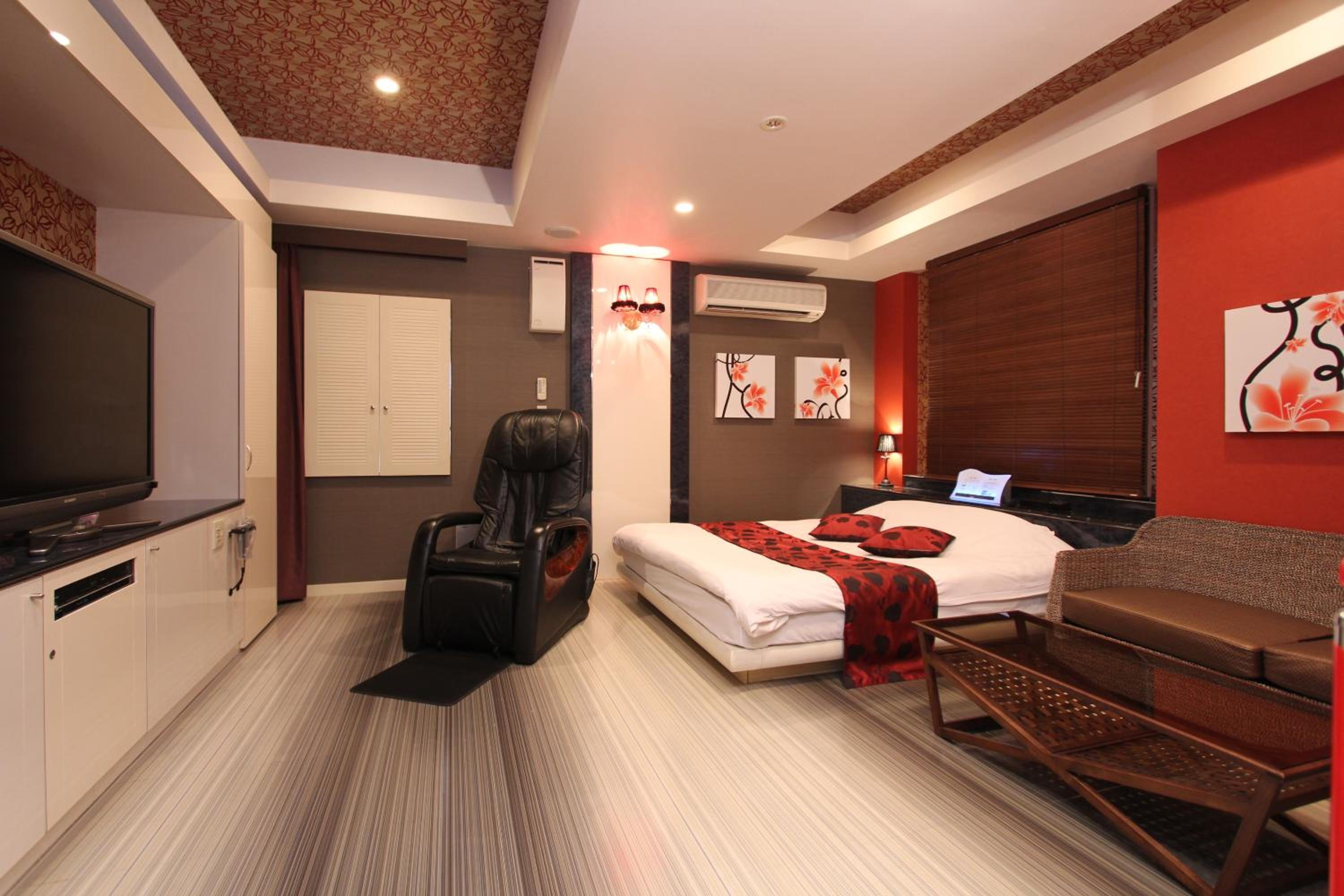 Guest rooms at this love hotel are designed for comfort and relaxation, featuring air conditioning, a flat-screen TV with satellite channels, a DVD player, and a private bathroom with premium toiletries. Each room also comes with cozy bed linen and fluffy towels for a pleasant stay.