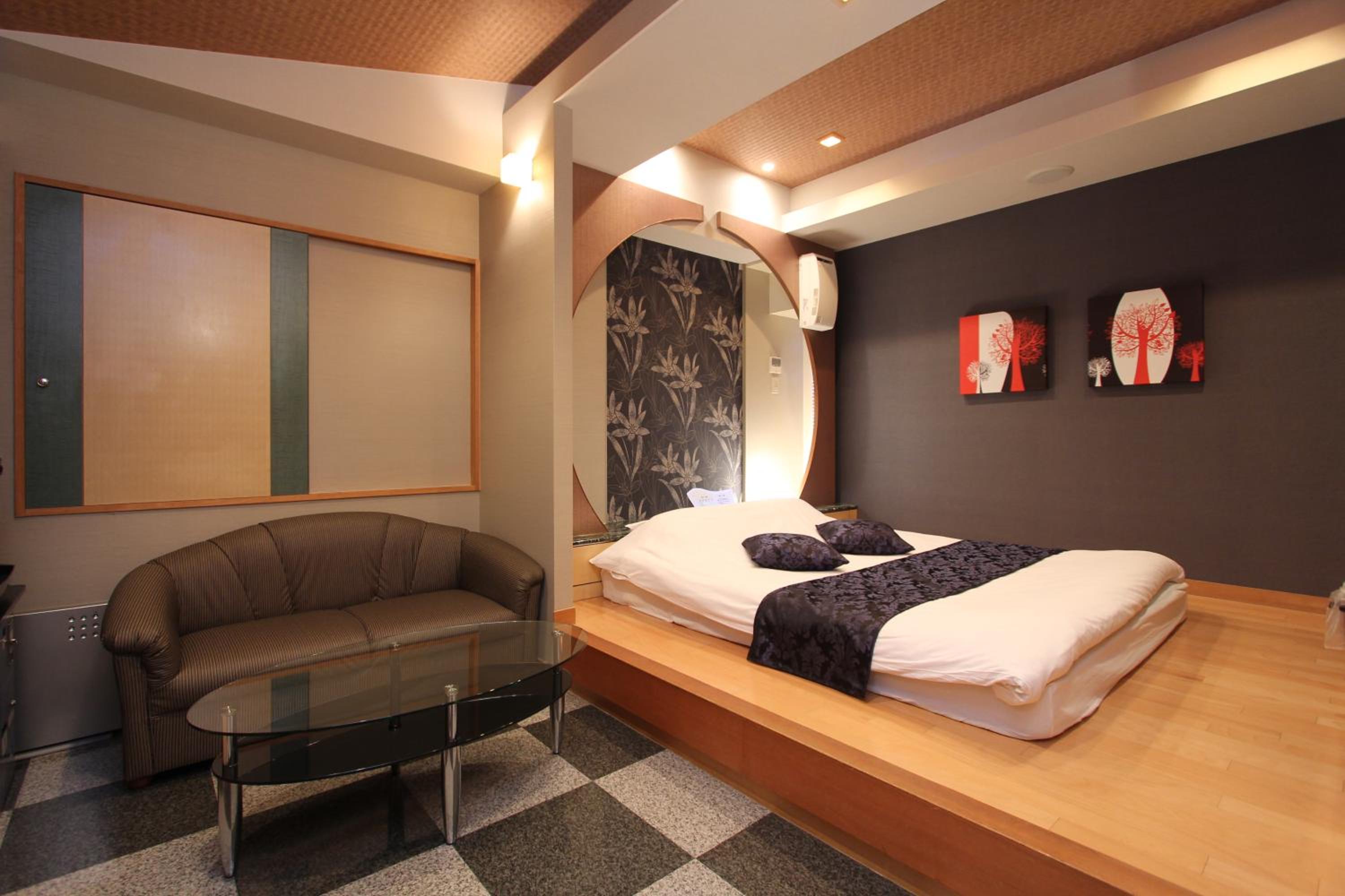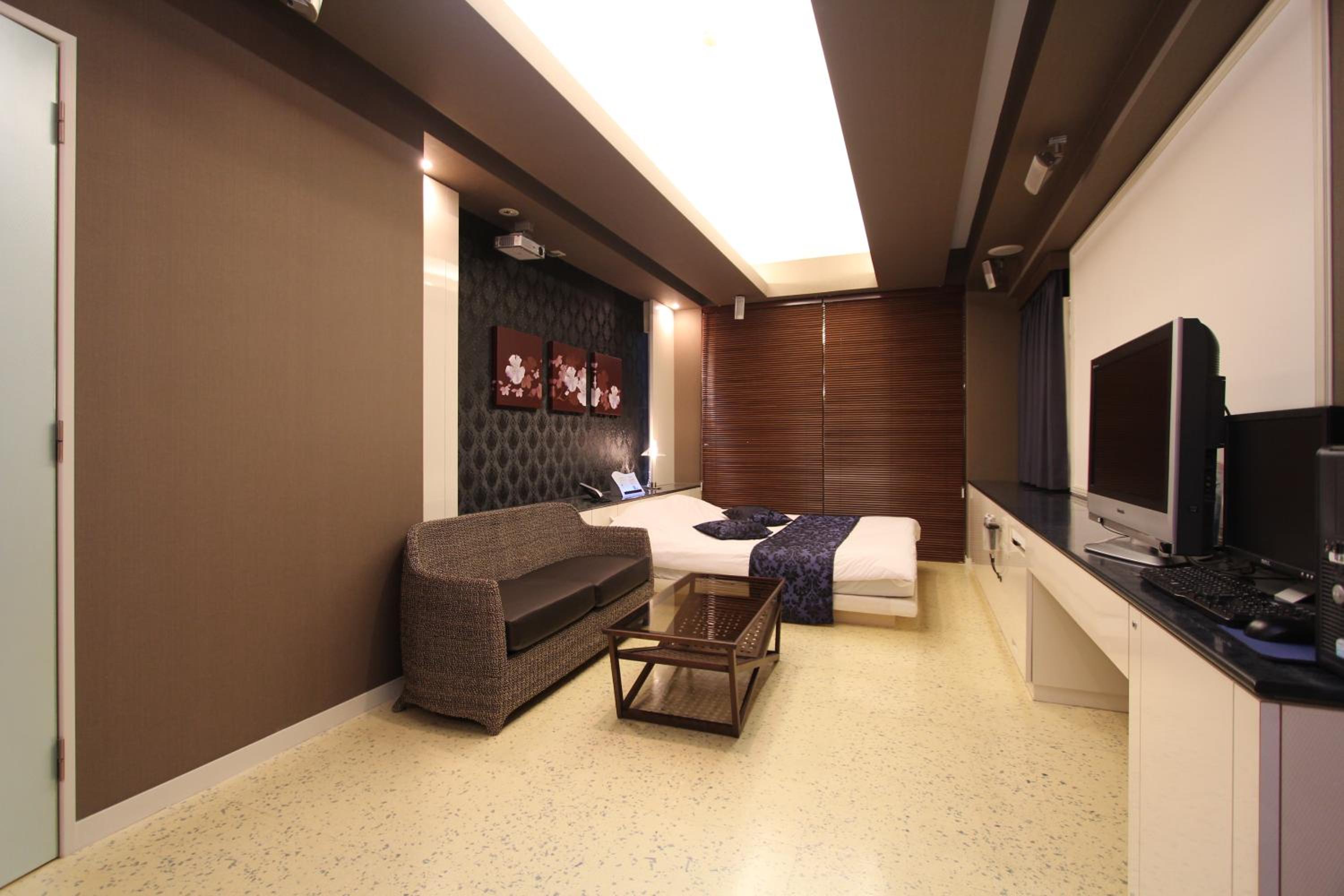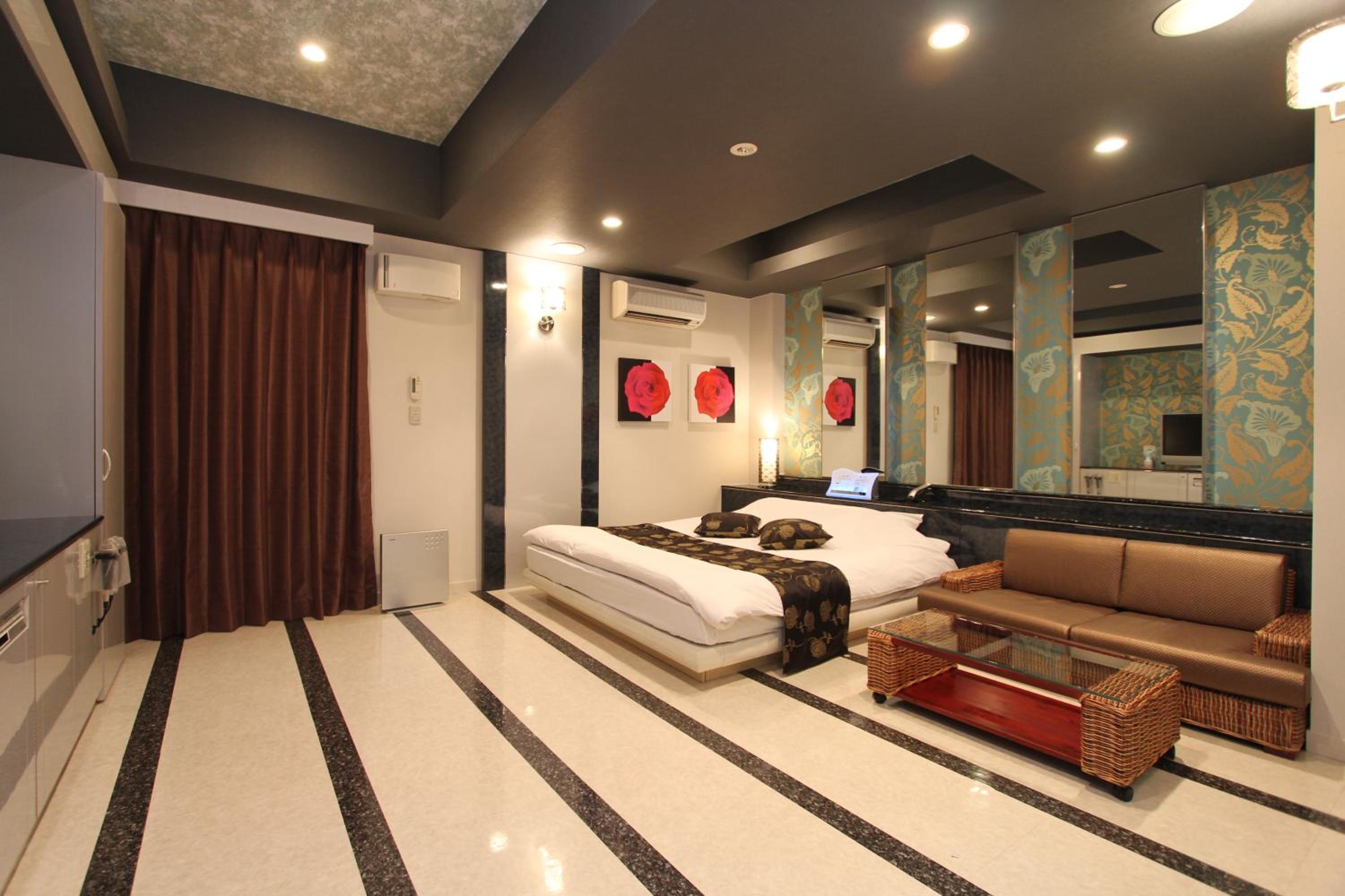 Guest rooms at this love hotel are designed for comfort and relaxation, featuring air conditioning, a flat-screen TV with satellite channels, a DVD player, and a private bathroom with premium toiletries. Each room also comes with cozy bed linen and fluffy towels for a pleasant stay.