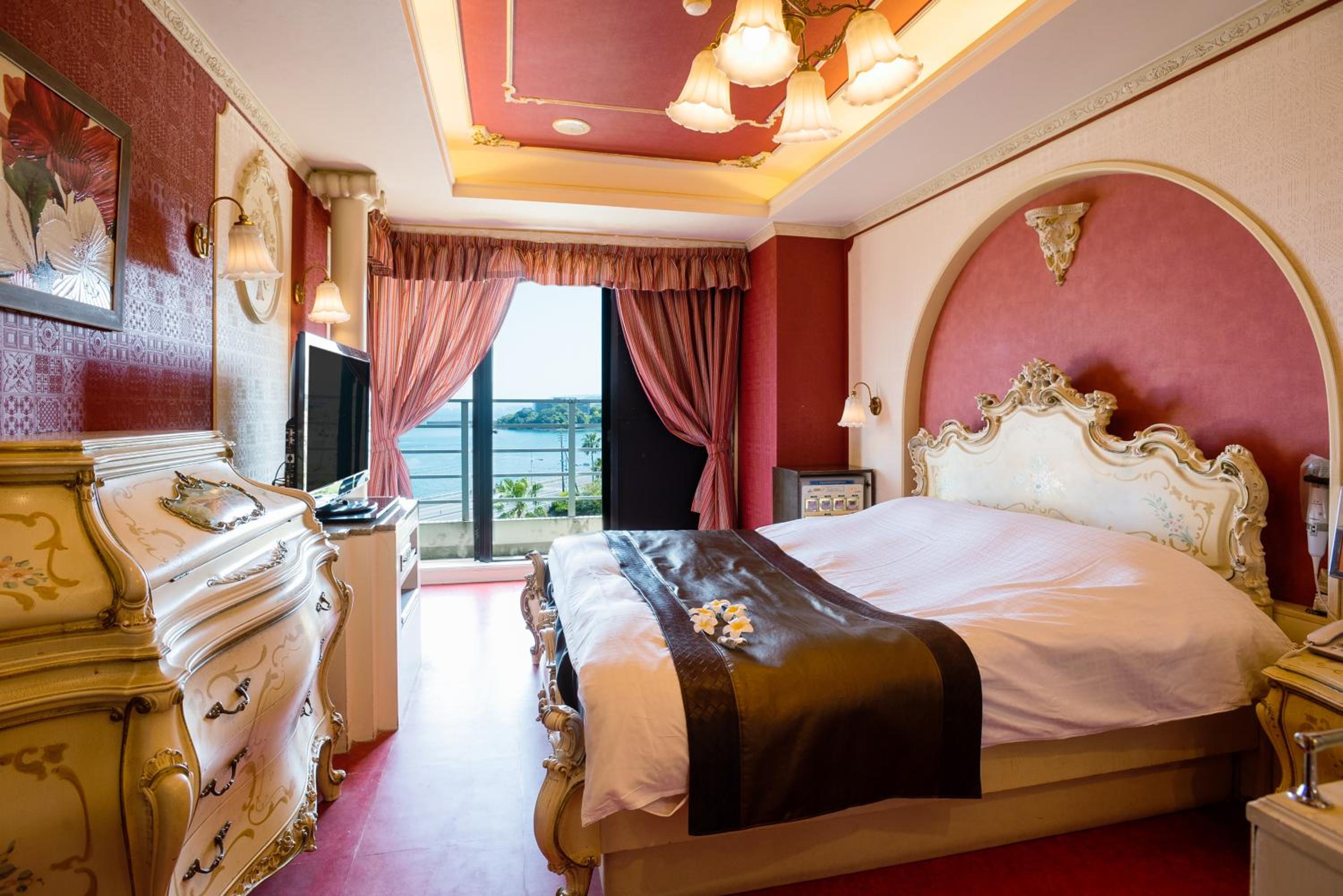 Spectacular Sea Views: Indulge in the breathtaking sea views from select rooms at Kagoshima Hotel Florence Ami (Adult Only), equipped with a flat-screen TV and kitchenette for ultimate comfort.