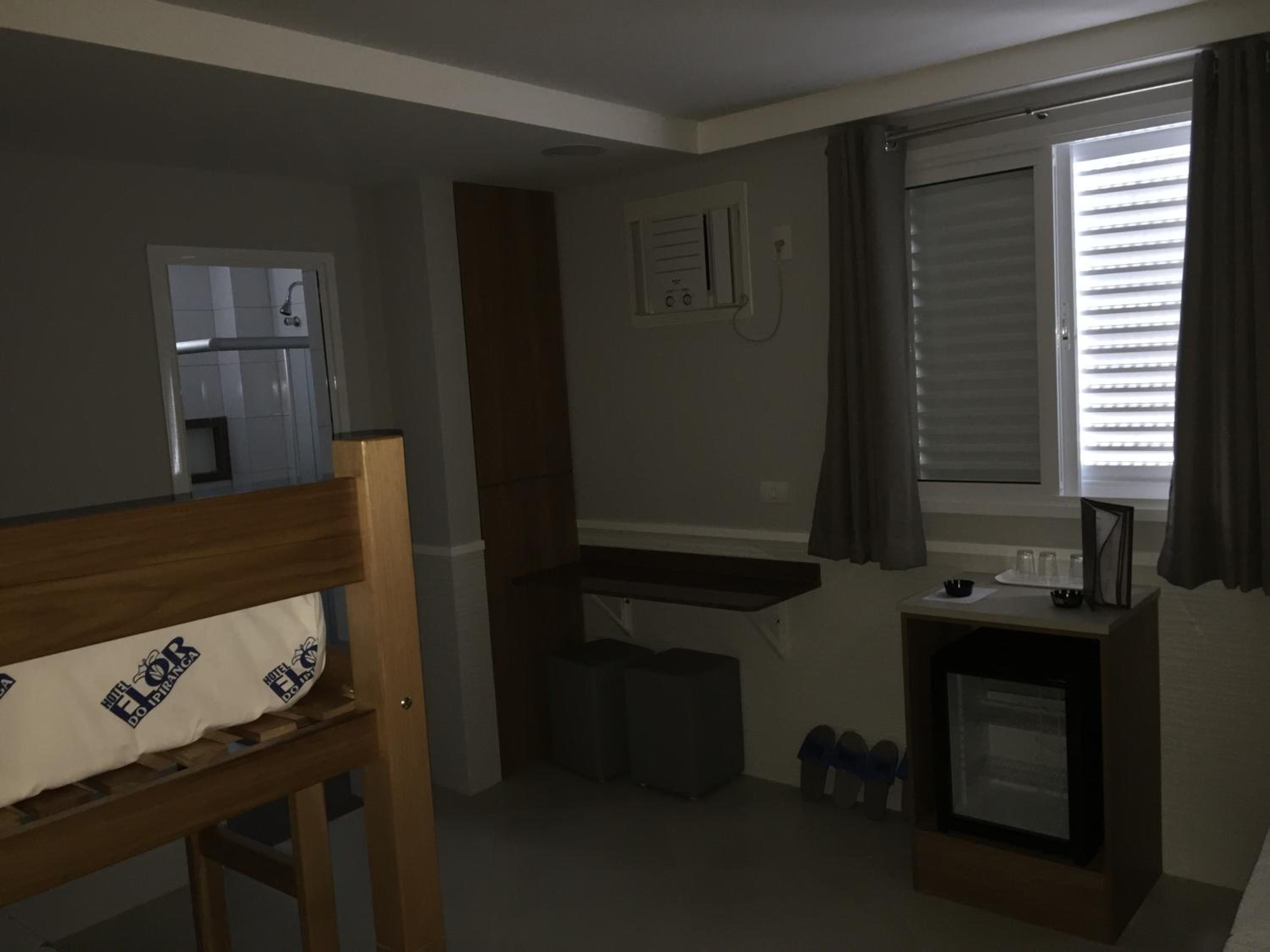 O quarto não tem ar condicionado, não tem frigobar a cama tinha um colchão fino de espuma.