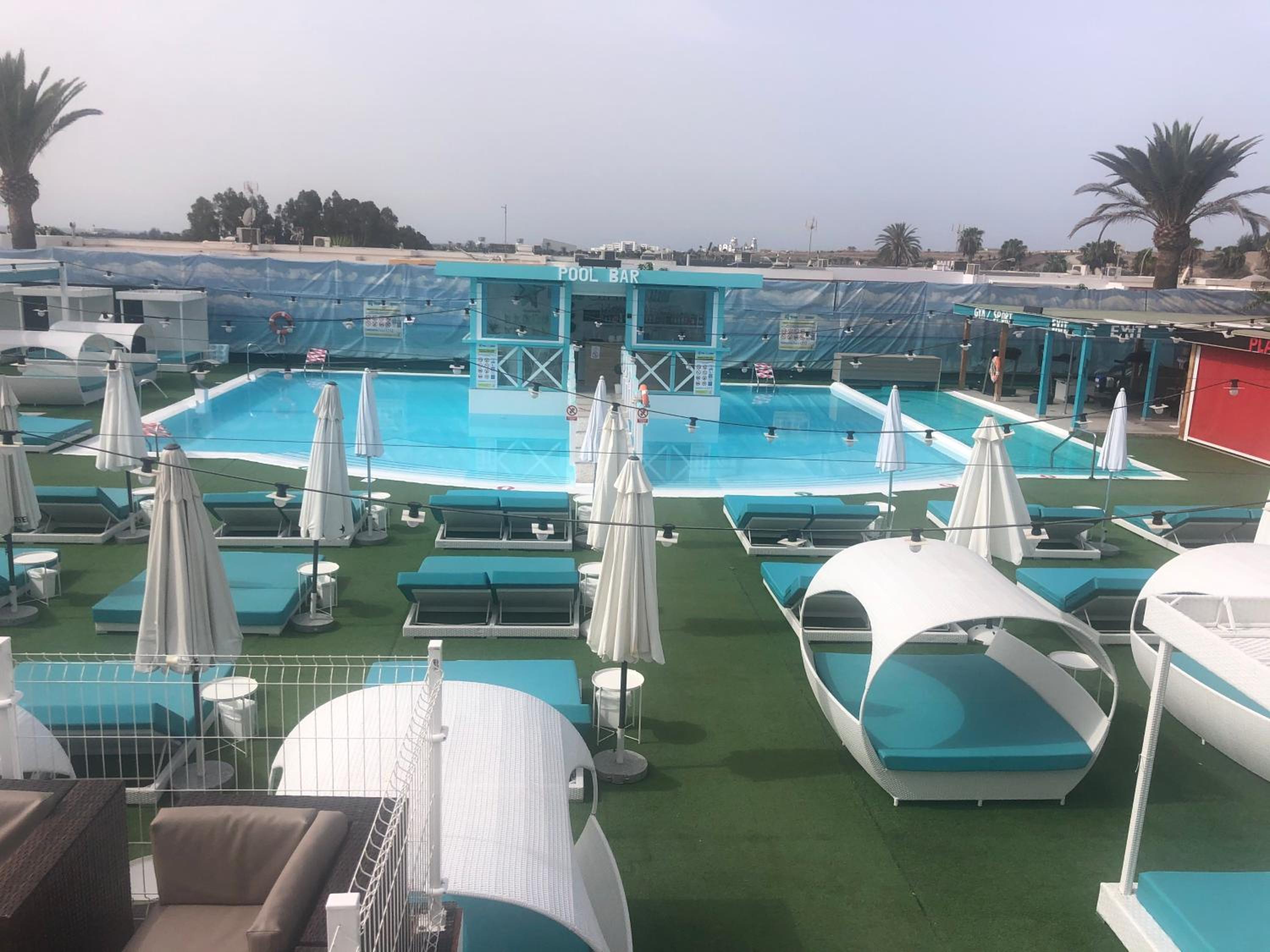 The large hot tub, tends to get overtaken by groups of visiting locals and day guests who spent hours in there noisily drinking and chatting particularly on foam party days and weekends which makes it difficult to enjoy and relax in. Also leaves the water very mucky and un appealing.
