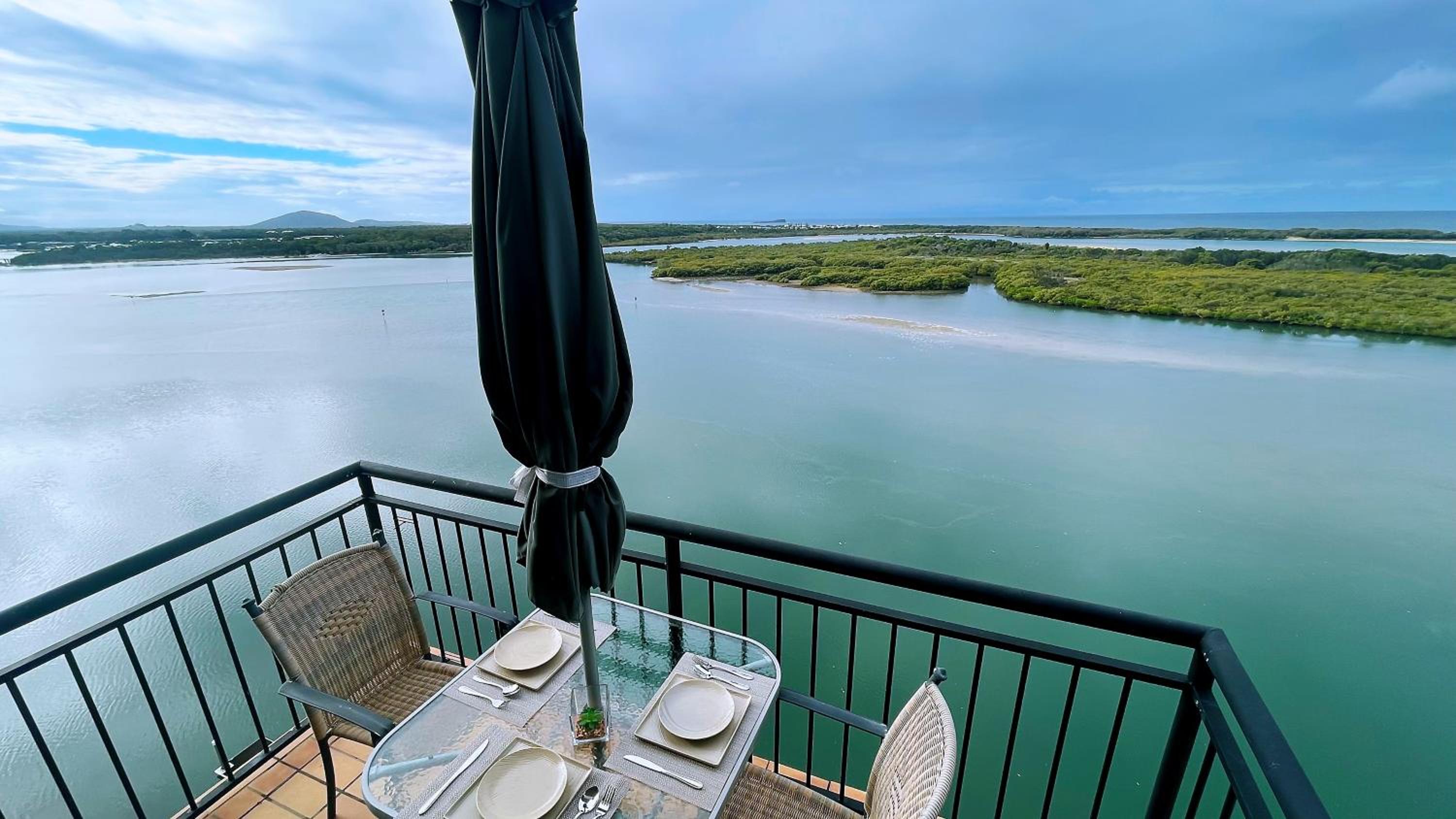 Well equipped and spacious apartment with a fantastic view overlooking the beautiful Maroochydore River and out to sea.