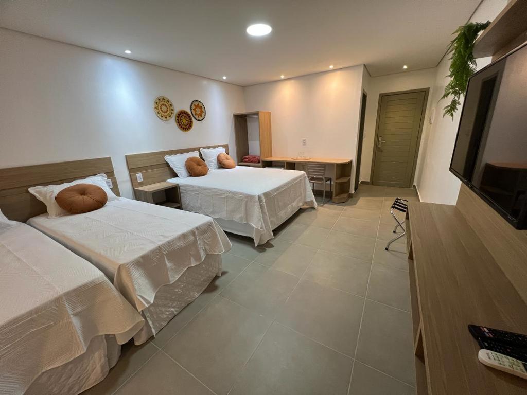 Café da manhã excepcional (principalmente o bolo de tapioca - carro chefe da casa), quarto amplo e com varanda (ficamos em 3 amigas, numa casa de casal e 1 de solteiro). Ar condicionado de qualidade, bom chuveiro, camas confortávels e roupas de cama e banho limpas. Funcionários educados e prestativos. Área externa com piscina grande e limpa, mini cozinha disponível, água a vontade e área de churrasco. Internet boa.