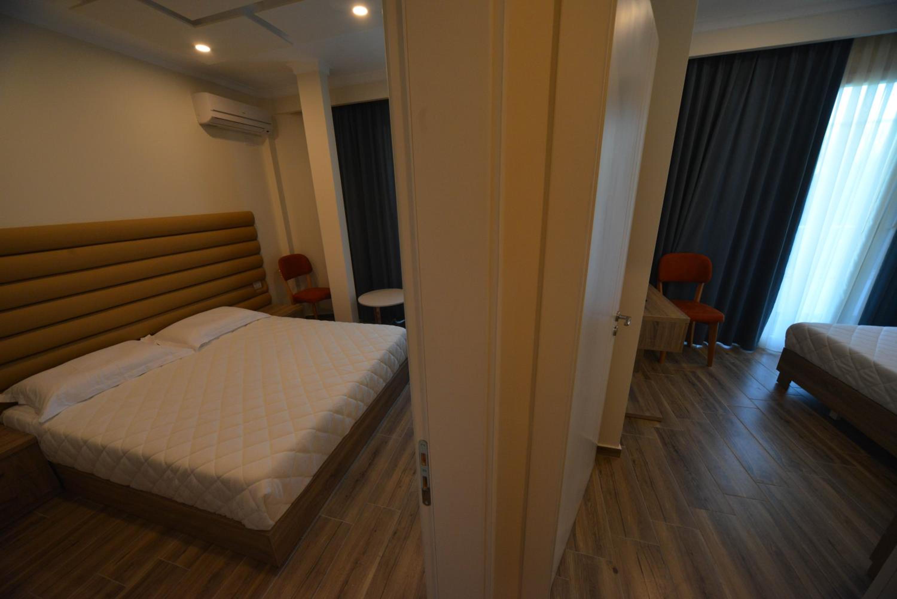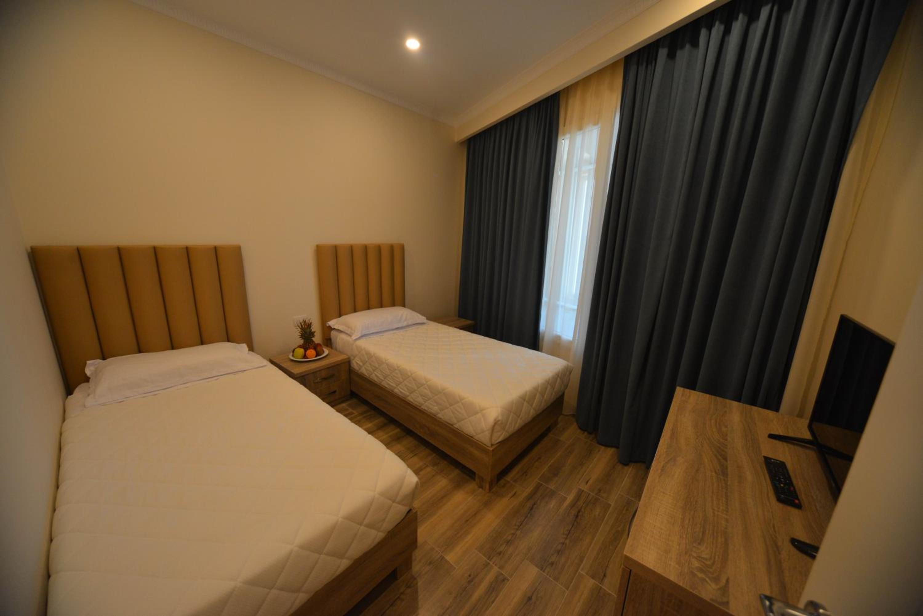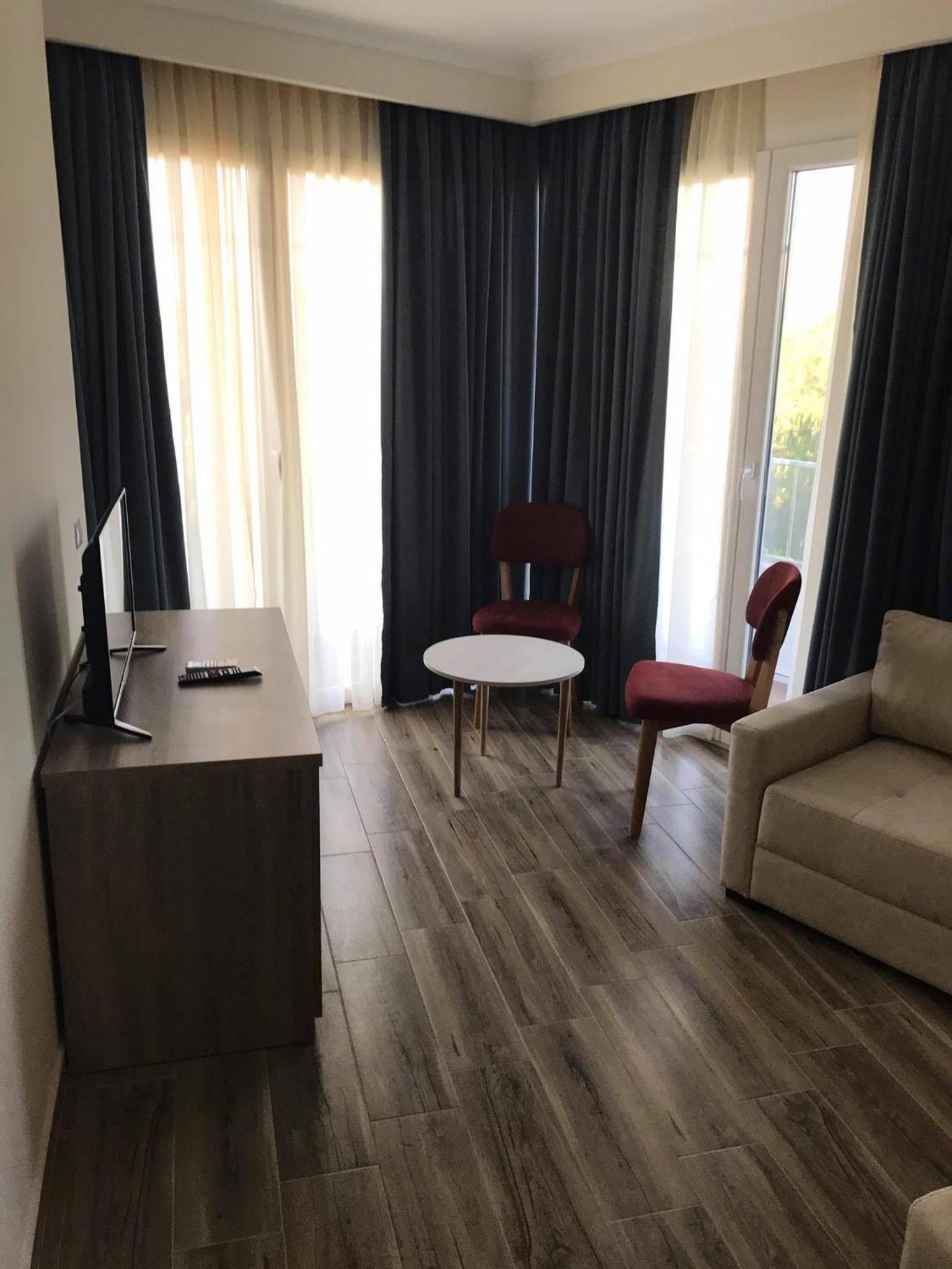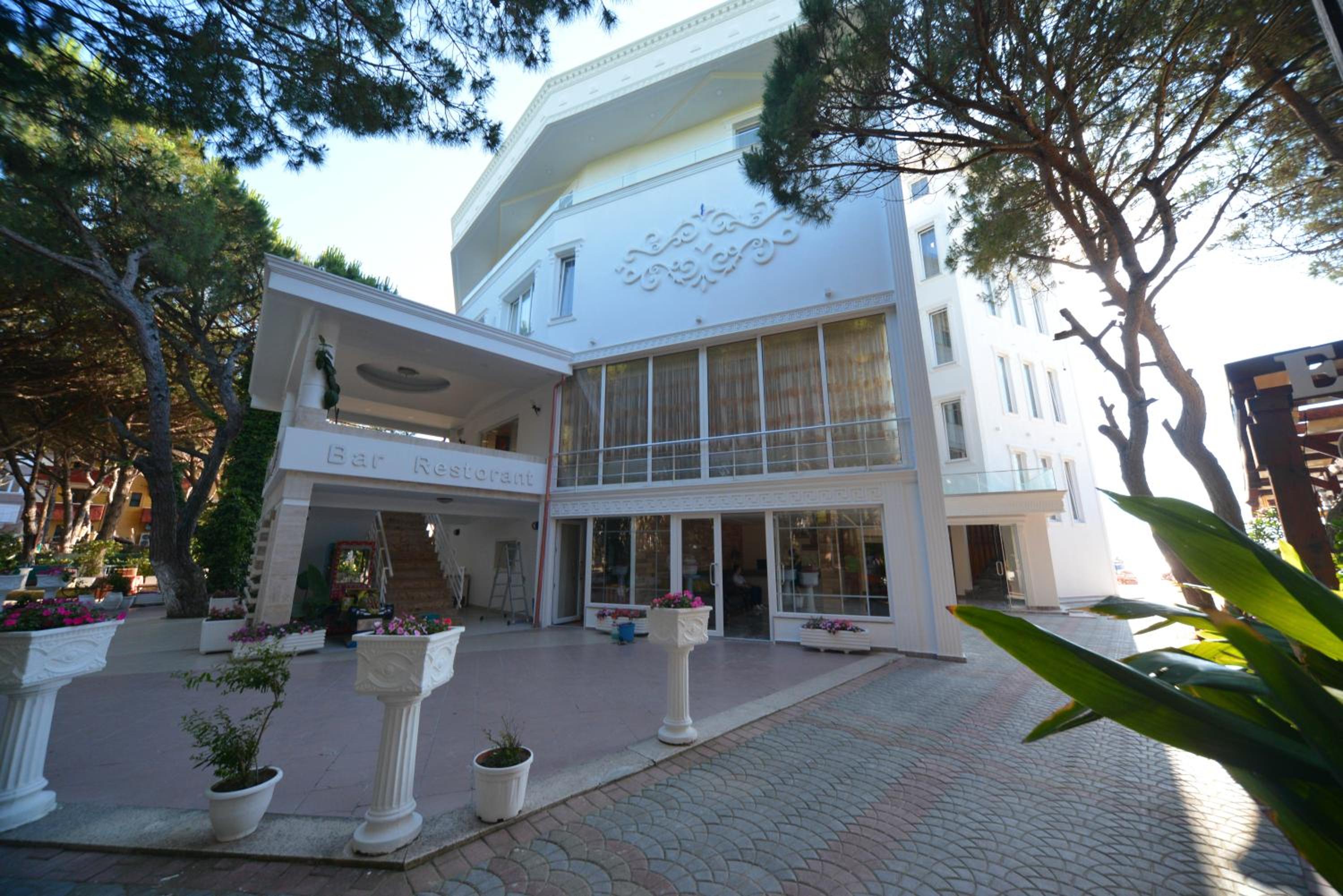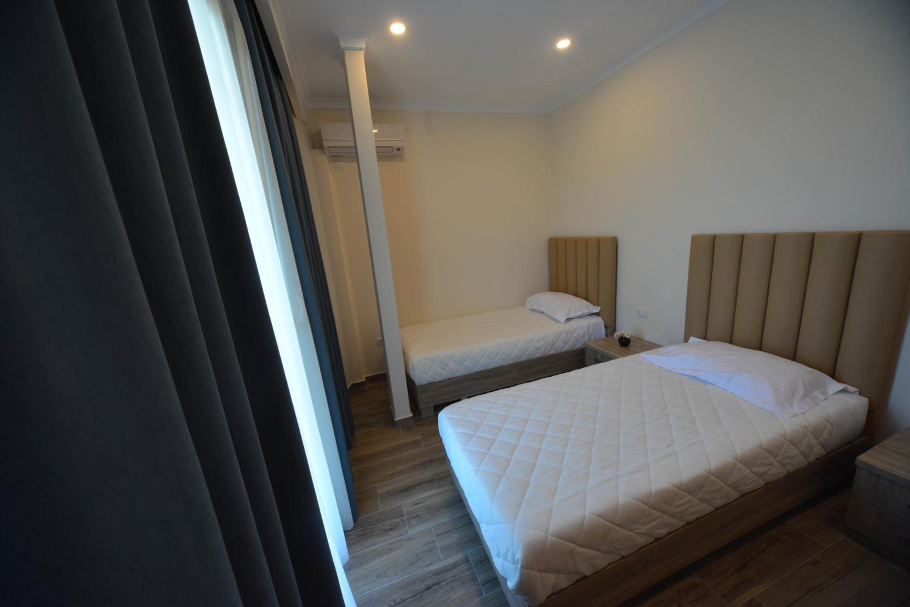 The hotel is right on the beach. I had a room with balcony to the pool and the sea. Beautiful view and the roar of the sea... Very good breakfast including local food. Buffet dinner is available with a nice variety of food. Very polite and very nice young waiter helped me choose a bottle of wine from Albania. I recommend it.