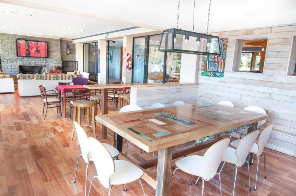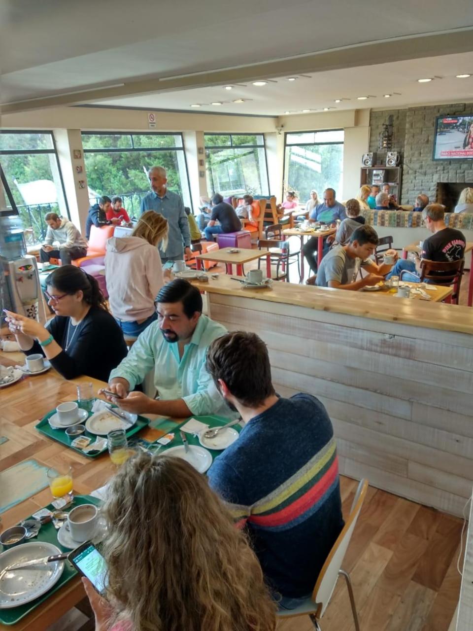 Antiguo hotel pero muy bien restaurado. Tiene un living enorme con comodos sillones frente a la tele y a la vista del Lago. Si pedis delivery tiene un espacio con heladera y dispenser agua gria y caliente. Ambos espacios tienen acceso a un hermoso balcon que da al Lago.