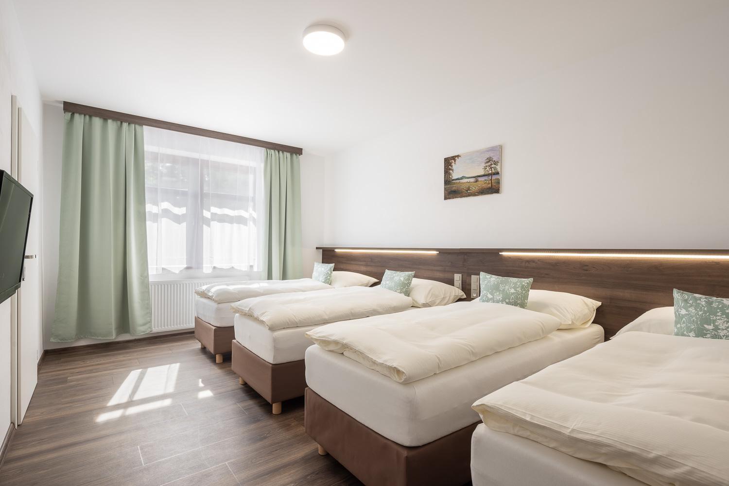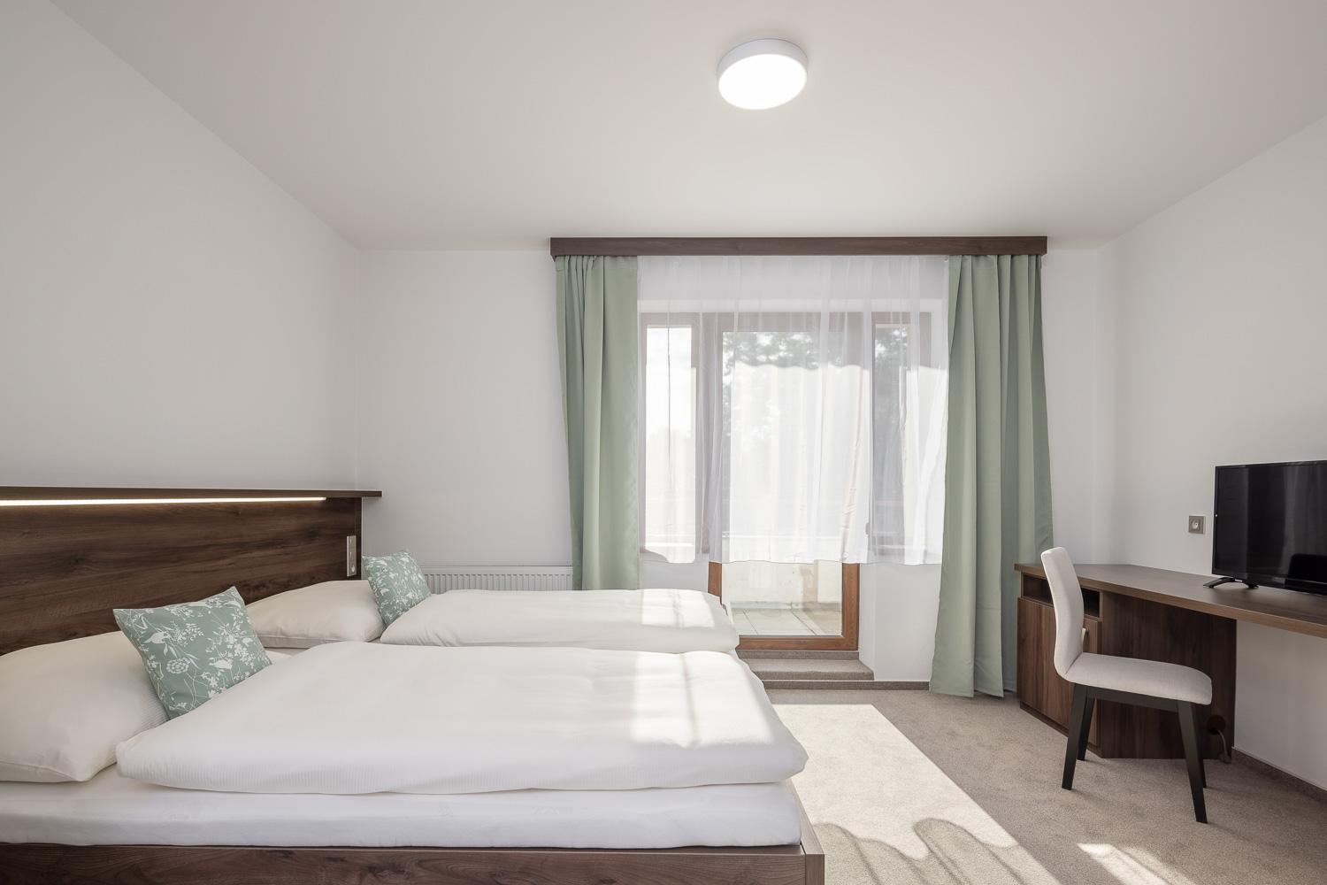 Vybrali jsme ubytování pro možnost snídaňového rautu, ale nebyl dostatek hostů, takže první den raut nebyl. Pokoj byl v pořádku, i když nechápu, proč všude mají dvě postele přiražené k sobě a ne 1 manželskou, to mi dost ztěžuje společné spaní s dítětem a vždycky je někdo na tvrdém. Na záchodech to smrdělo dole i v pokoji.