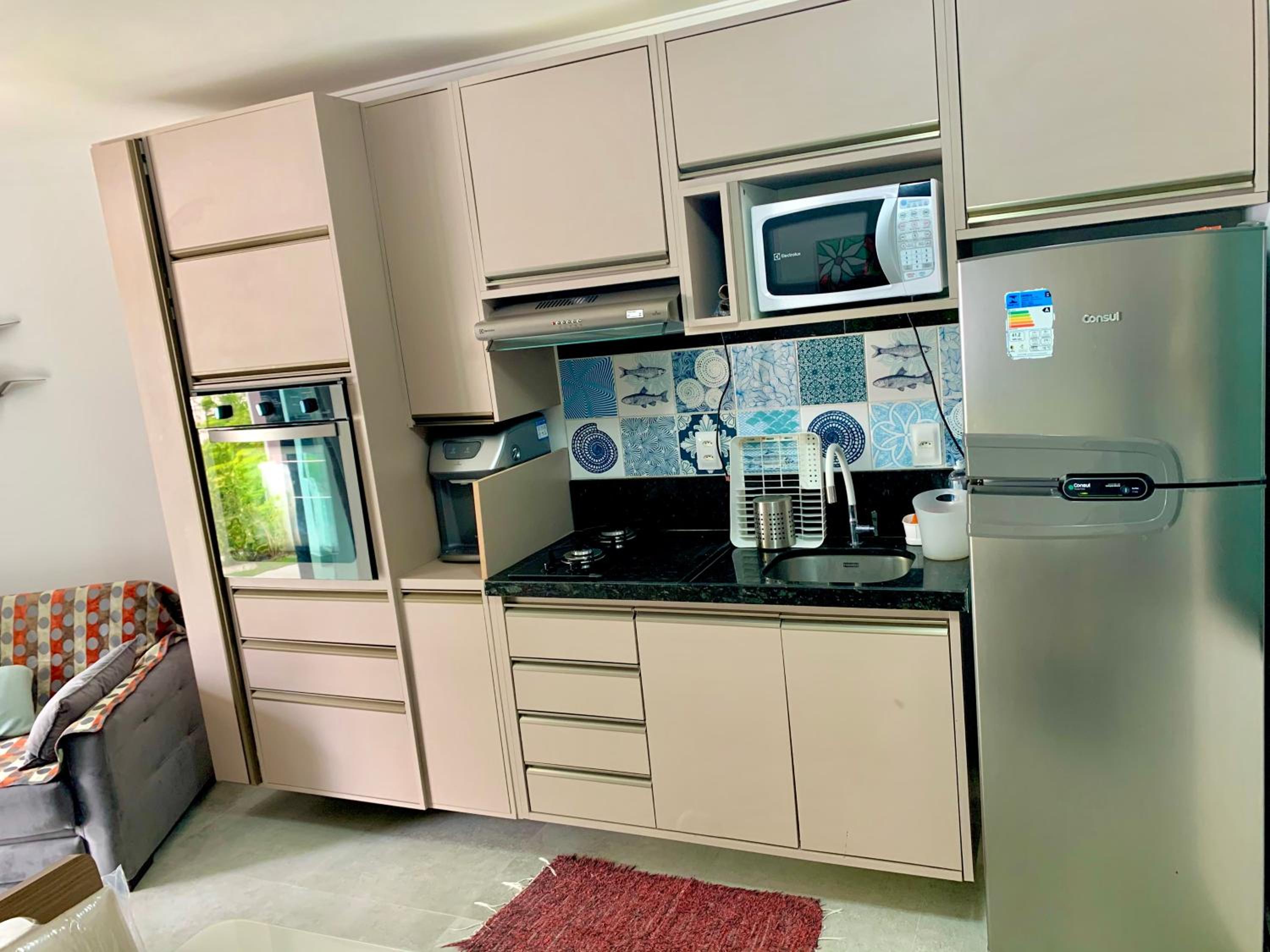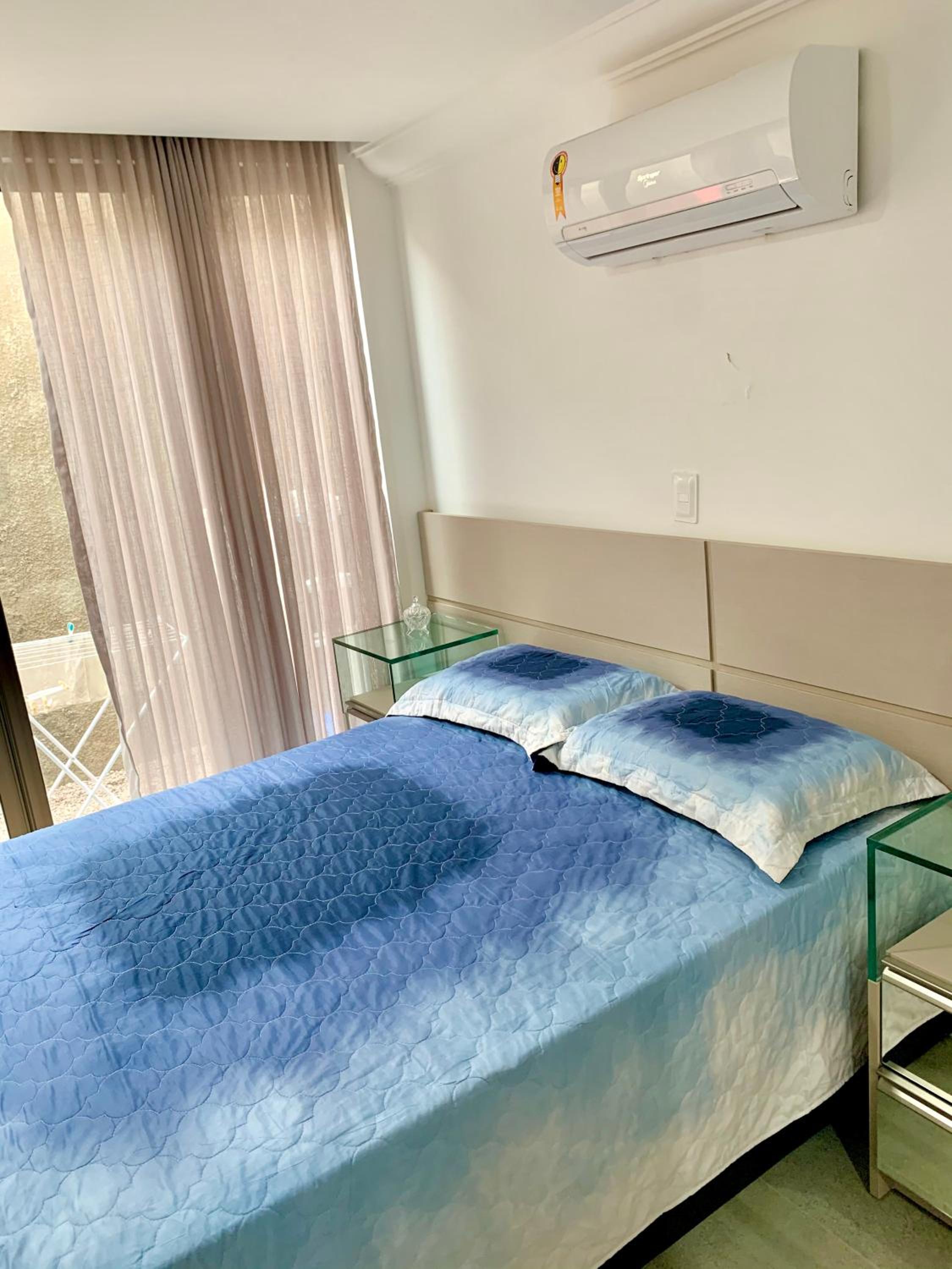 Do quarto, primeiro que o anfitrião não anunciou o número do flat nem ao menos ficou disponível para nós dar suporte , pagamos uma taxa de limpeza e pegamos o local com cheiro horrível de mofo ácaro e panelas mofadas bem como cheiro fortíssimo e locais da pia como forno e tomadas dando formigamento, no sábado deu um curto ao usarmos microondas e queimou as tomadas da geladeira forno e tal tivermos que chamar o hotel porque o anfitrião não atende chamadas. Sinceramente péssimo atendimento. Concertaram só a geladeira. Horrível o constrangimento bem na hora de fazer o almoço. Precisa higienizar cortinas ventilar amantes dos hóspedes chegarem sofro de alegrias e estou com crise alérgica. Ar condicionado barulhento no quarto precisando de manutenção pelo que vimos quarto não tem manutenção para estar sendo oferecido.