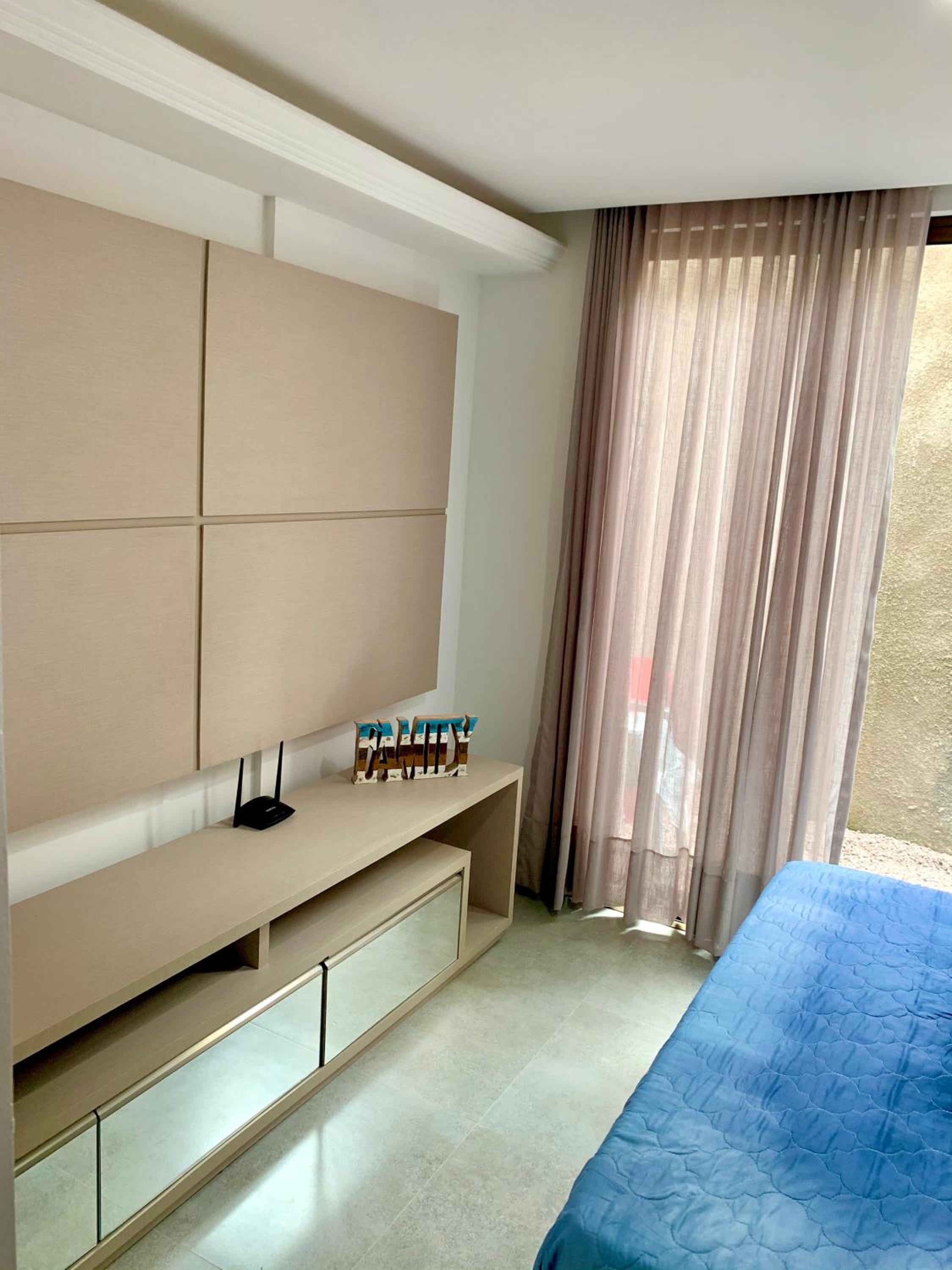 O quarto não tinha cortina tivemos que dormir no quarto basicamente com uma luz do corredor do prédio virada para o quarto que incomodou todos os dias! Todos os dias acordando as 5hs da manha devido a luz do sol e o quarto sem nenhuma cortina.
