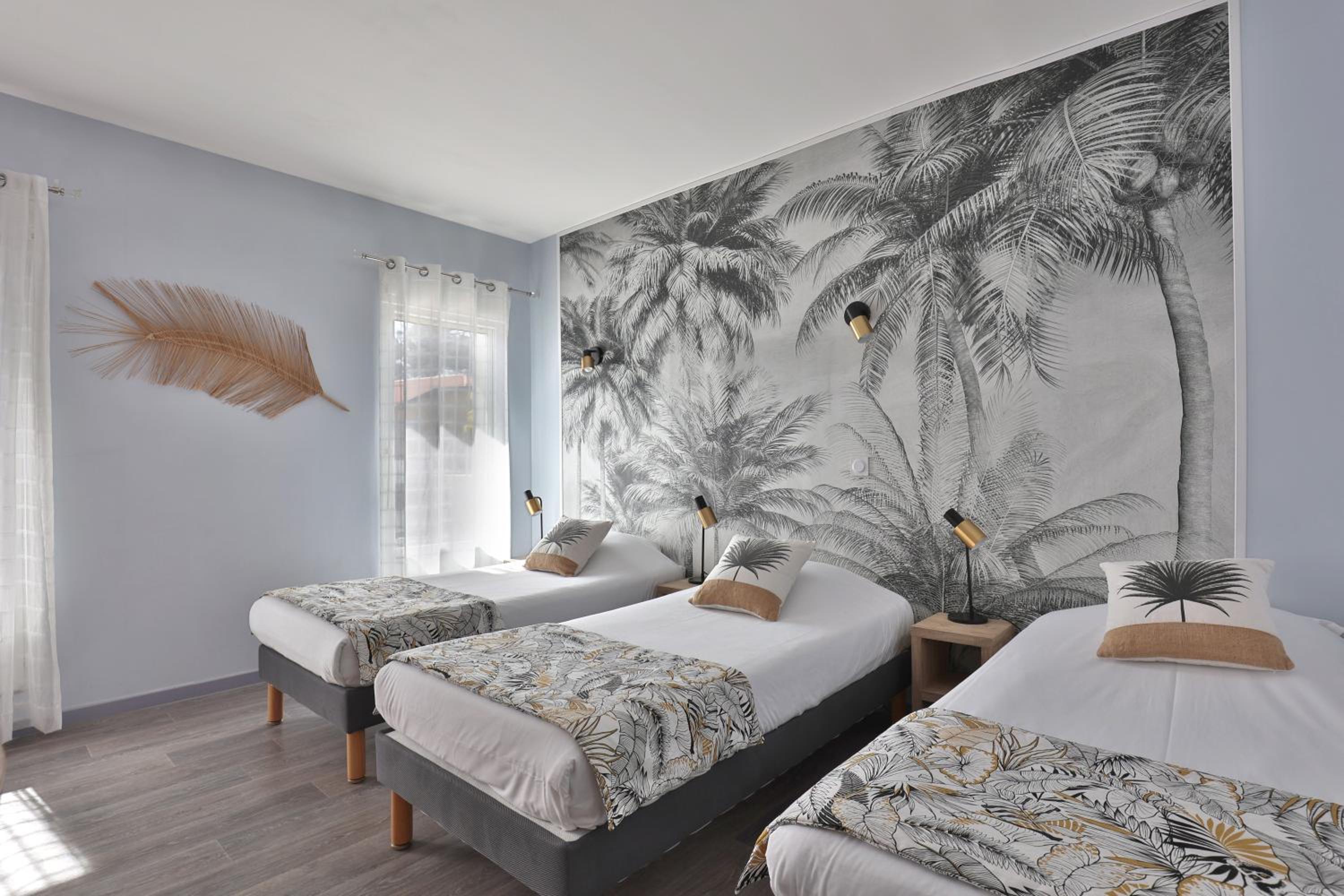 Each room at Hotel Du Cap is equipped with modern amenities including a flat-screen TV, free WiFi, and a private bathroom. Some rooms even feature a balcony for a relaxing view.