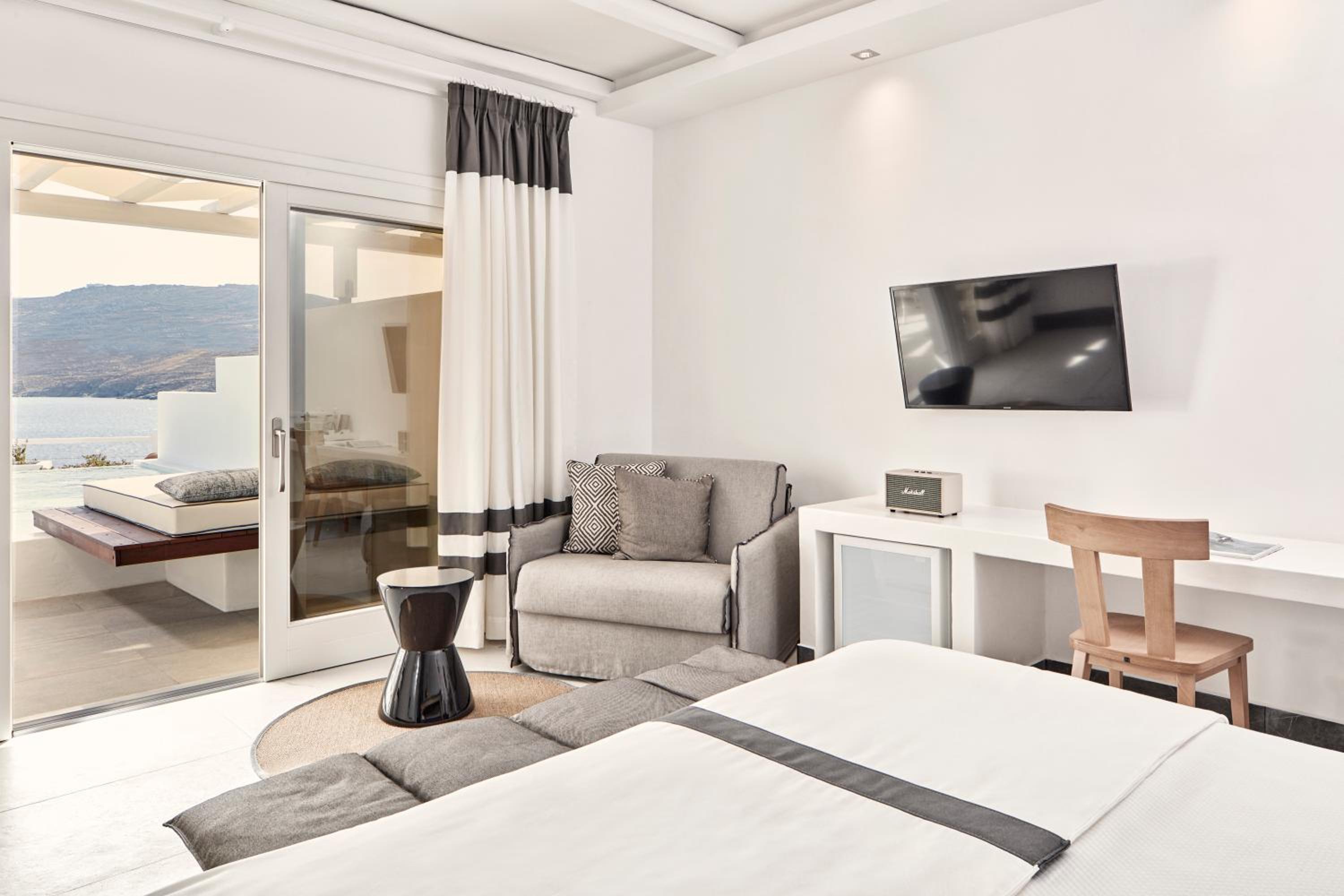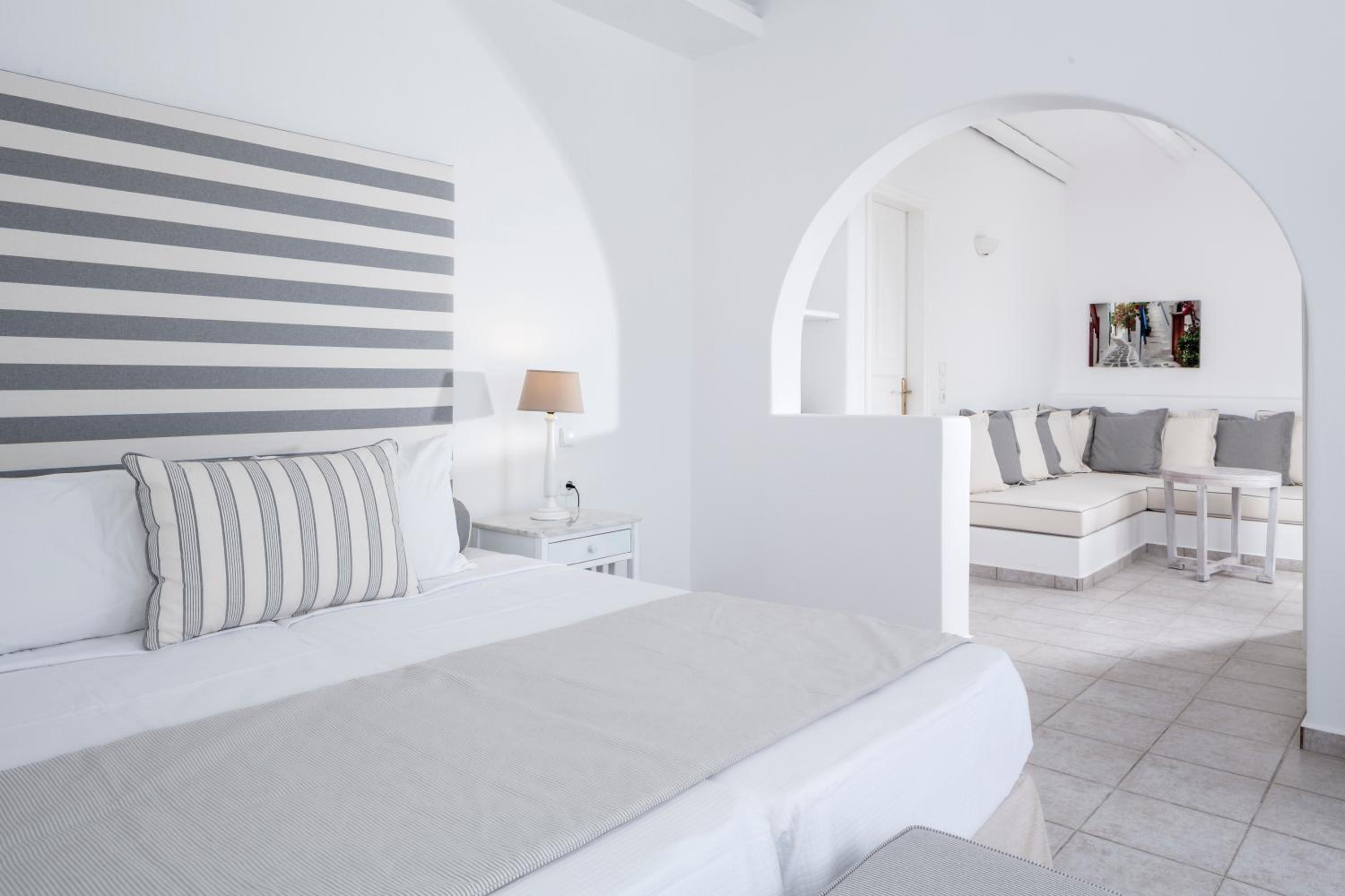 Experience the charm of Mykonos at Archipelagos Hotel, where traditional Mykonian architecture meets modern comfort. The independent building housing the reception and lobby, along with the Mykonian-style church overlooking the area, adds to the unique and authentic feel of the hotel.