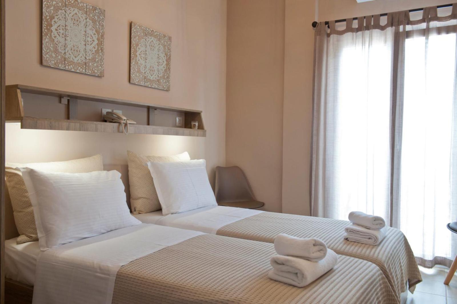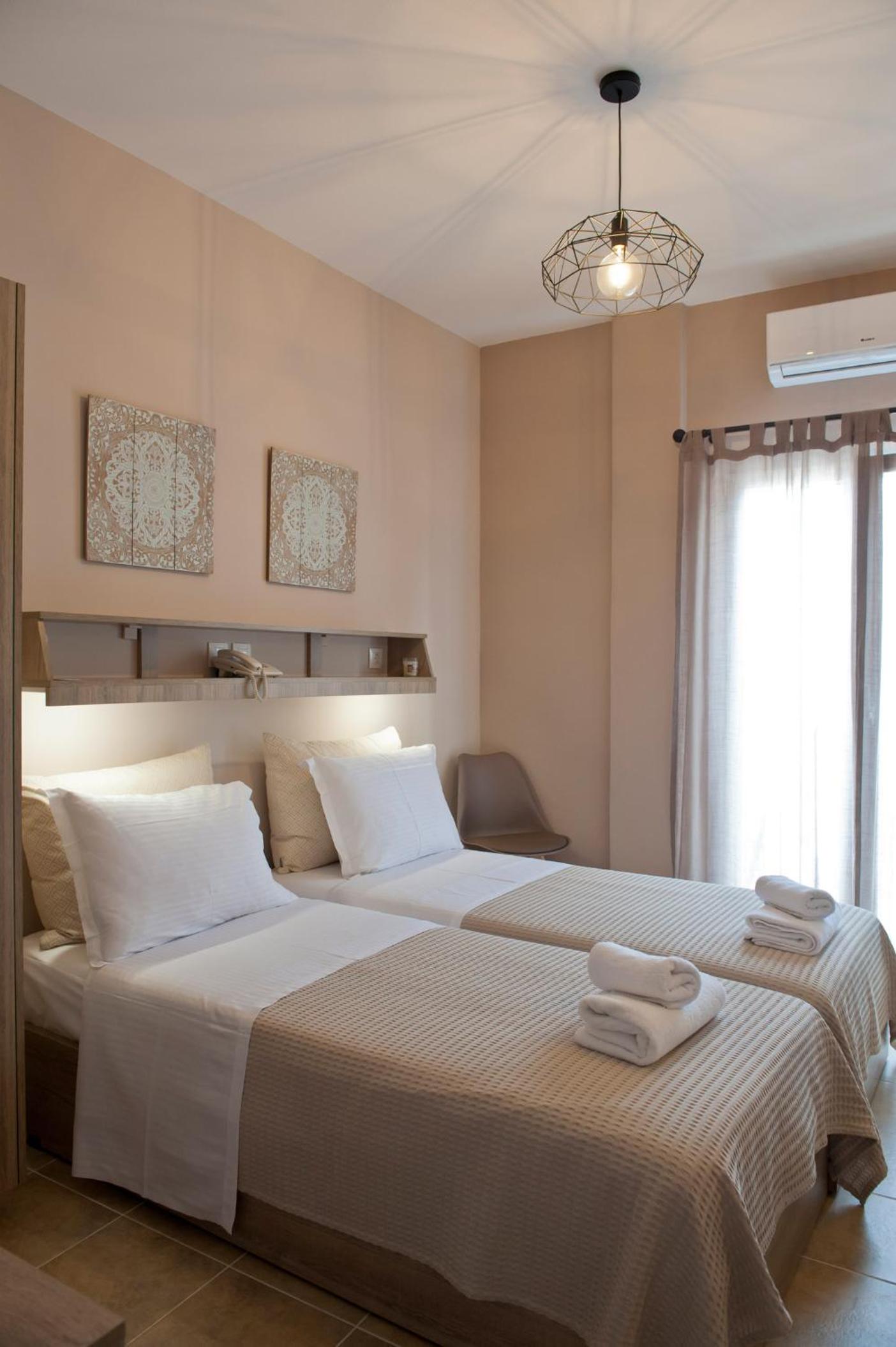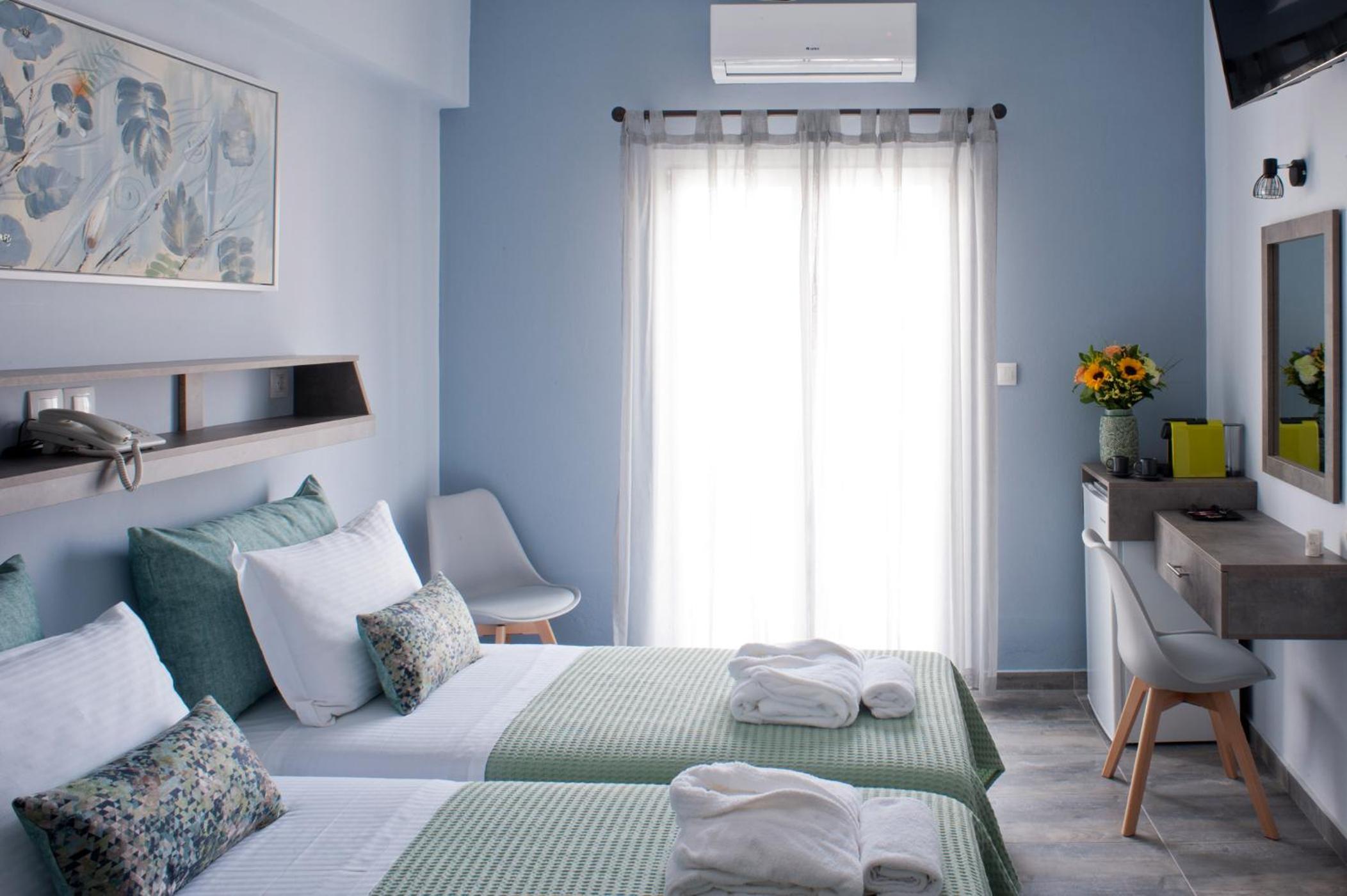 A lovely family-run boutique hotel right in the centre of Naoussa, with plenty of eateries and shops just outside the doorstep. My room was on the second floor facing the square, and despite the location, once the windows were closed the outside noise was completely shut out and I slept quite peacefully. Everyone was welcoming and helpful, including the lovely ladies from housekeeping :)