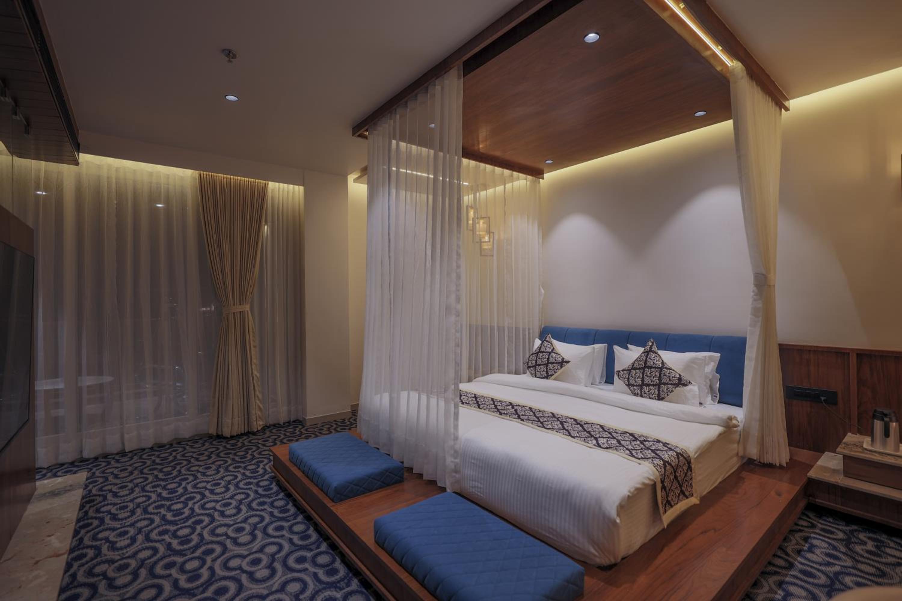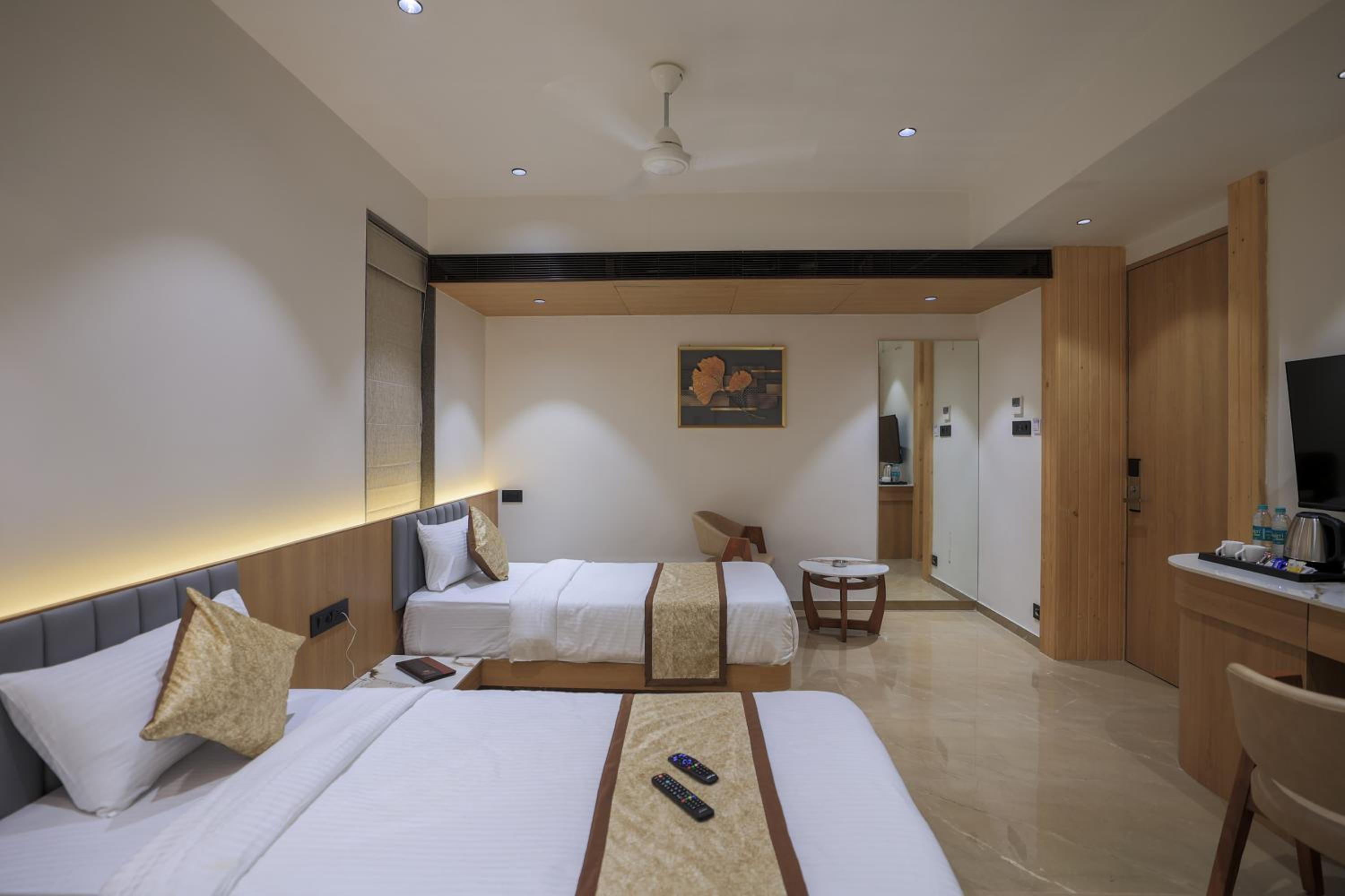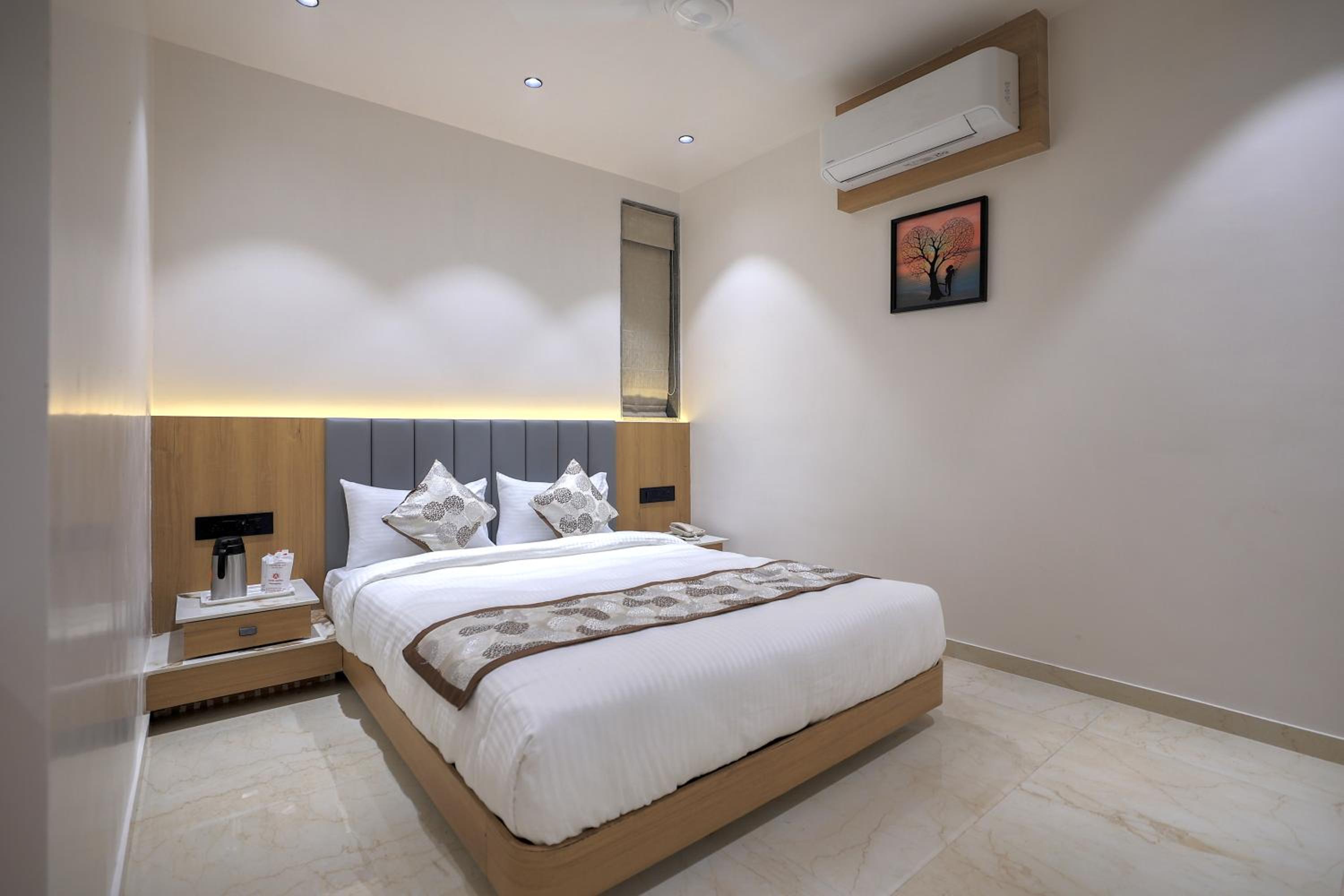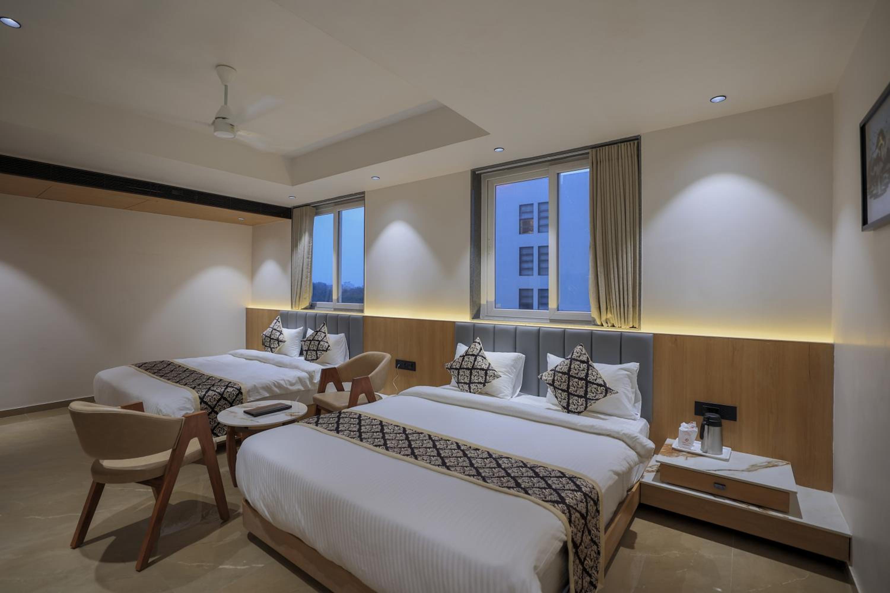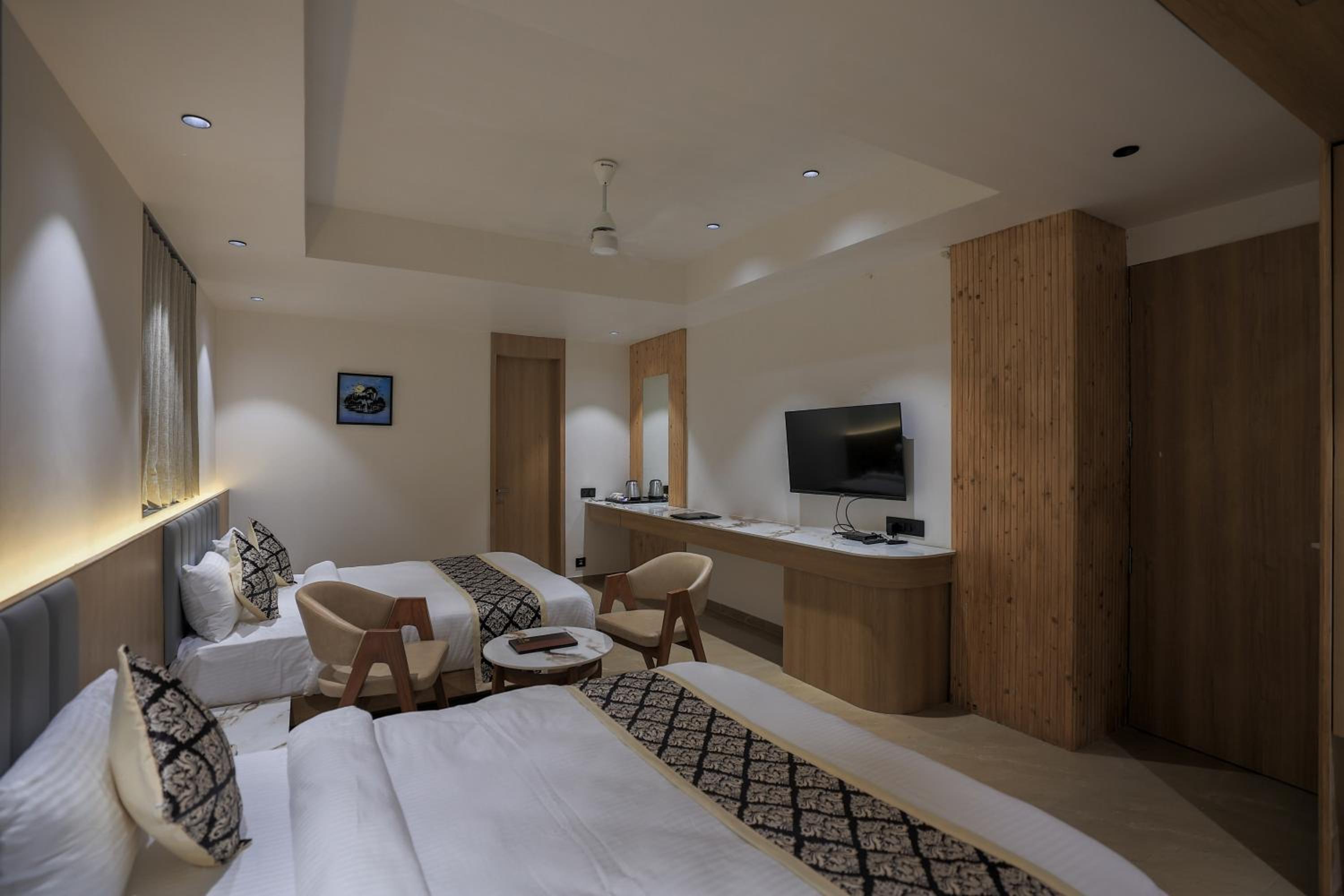 Hotel Aditya Mansingh Inn offers comfortable rooms with modern amenities, including air conditioning, flat-screen TVs, and some with balconies. The family rooms provide ample space for a relaxing stay.