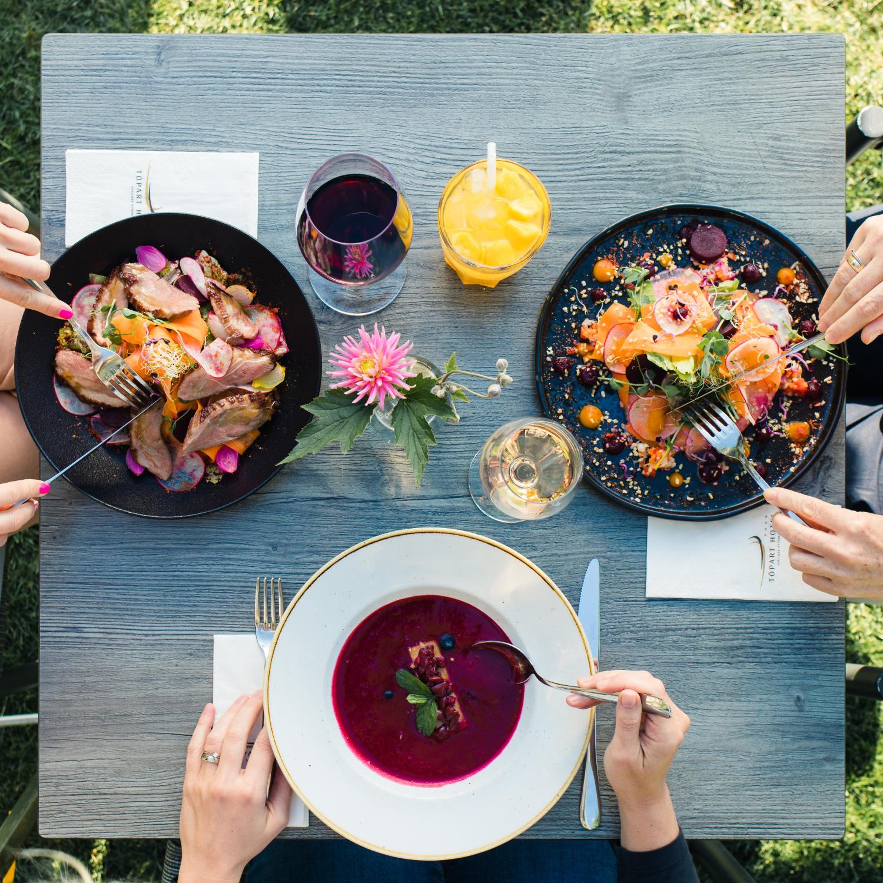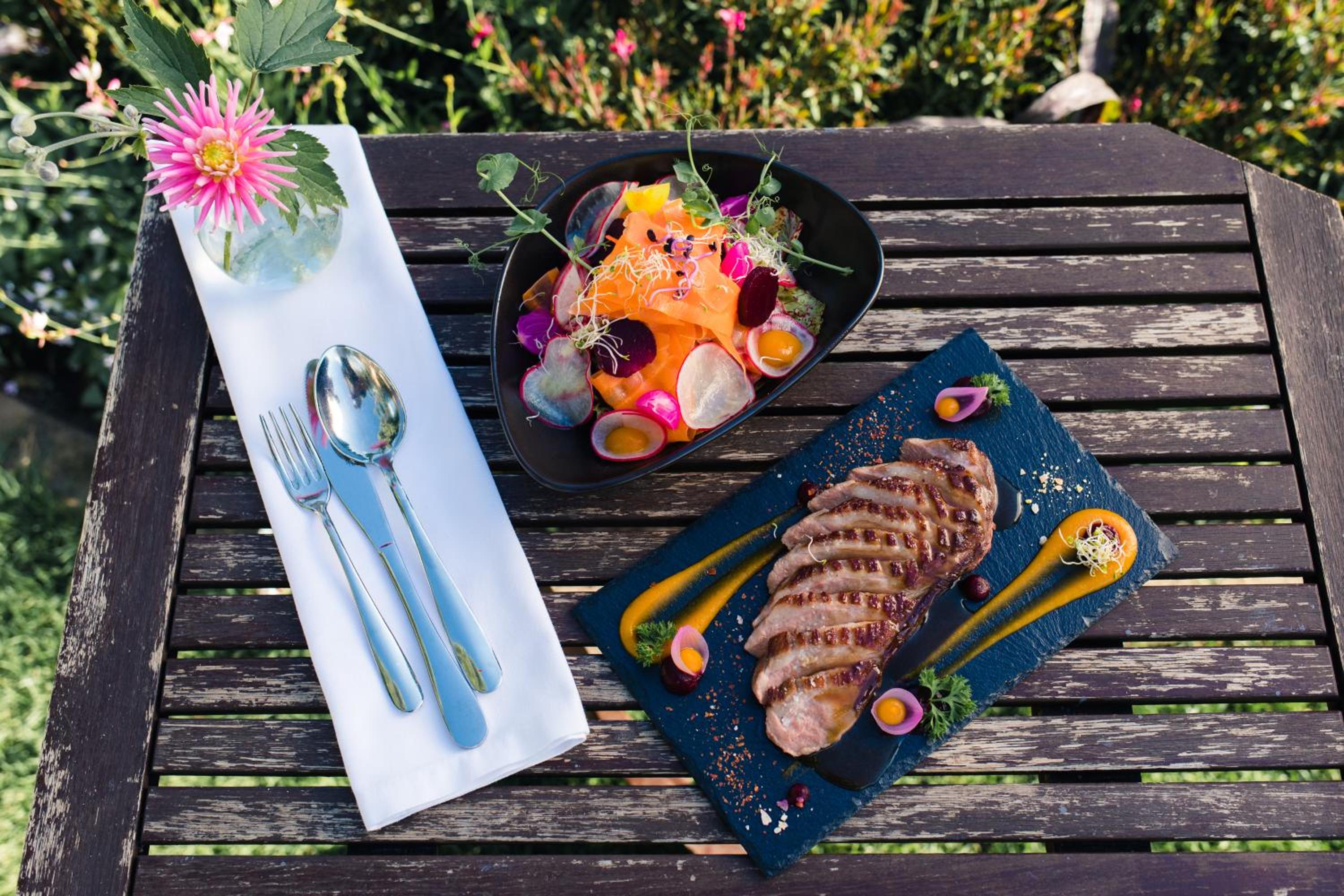 Indulge in delicious meals, cocktails, and wines at our scenic restaurant and bar.