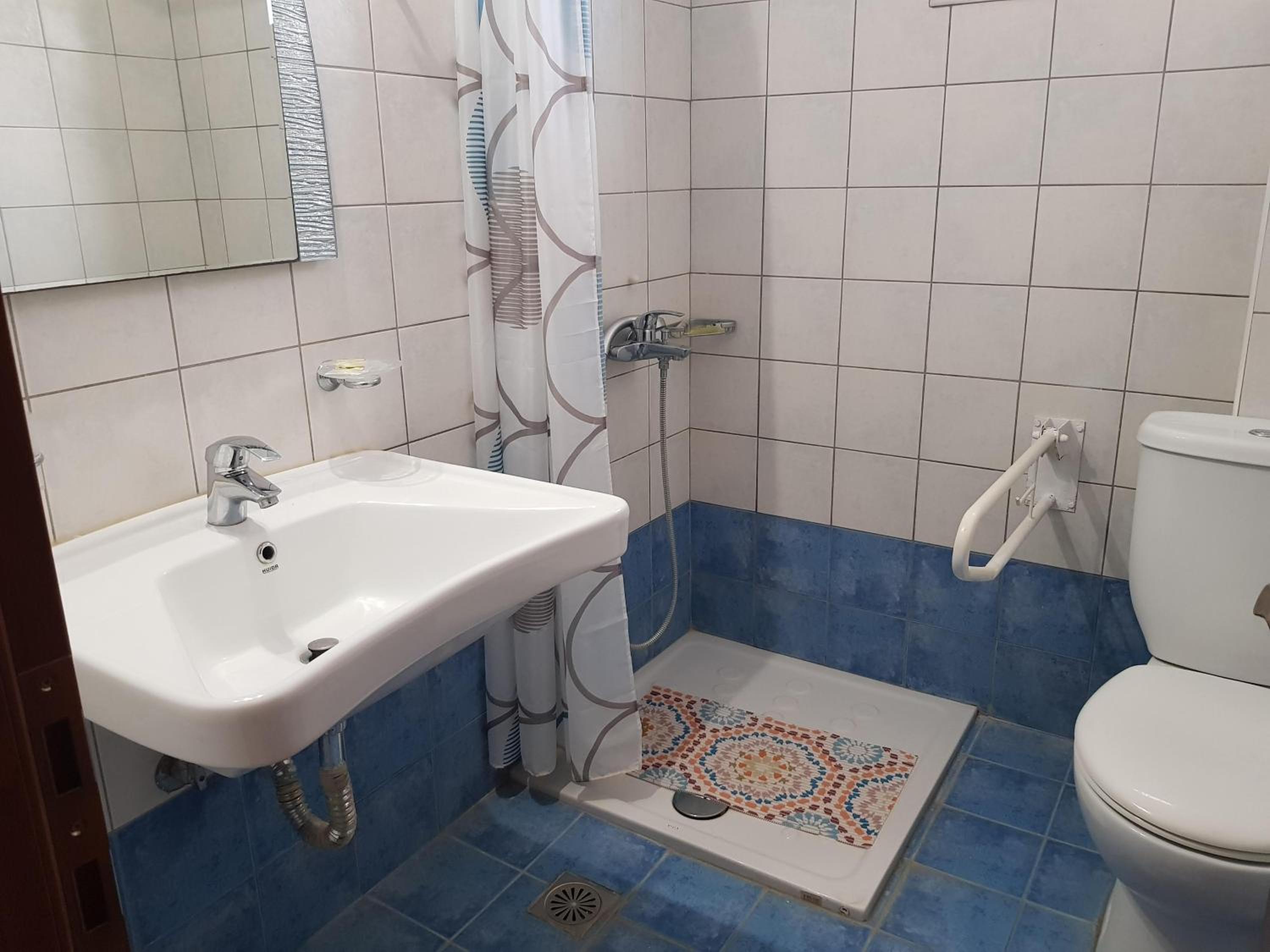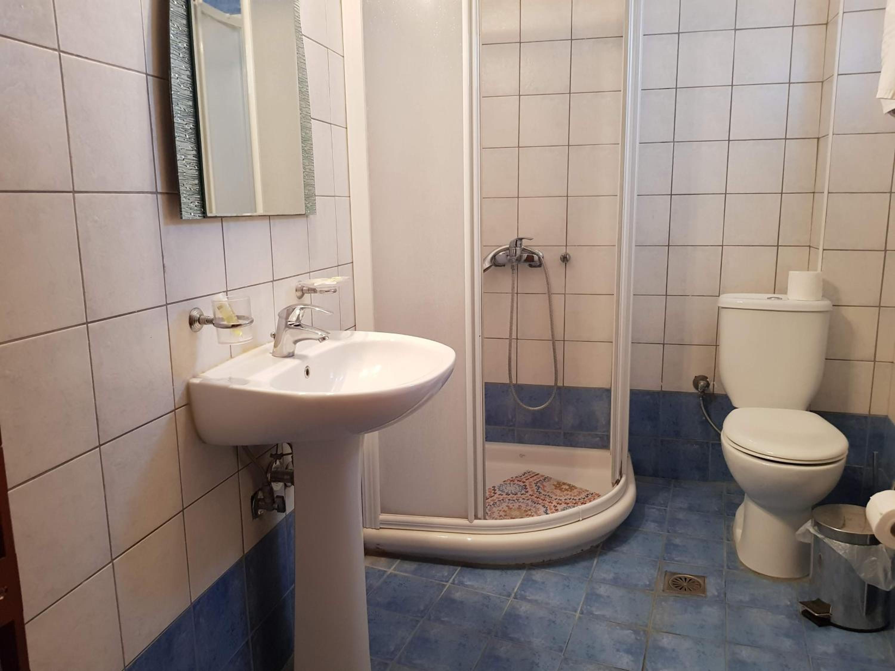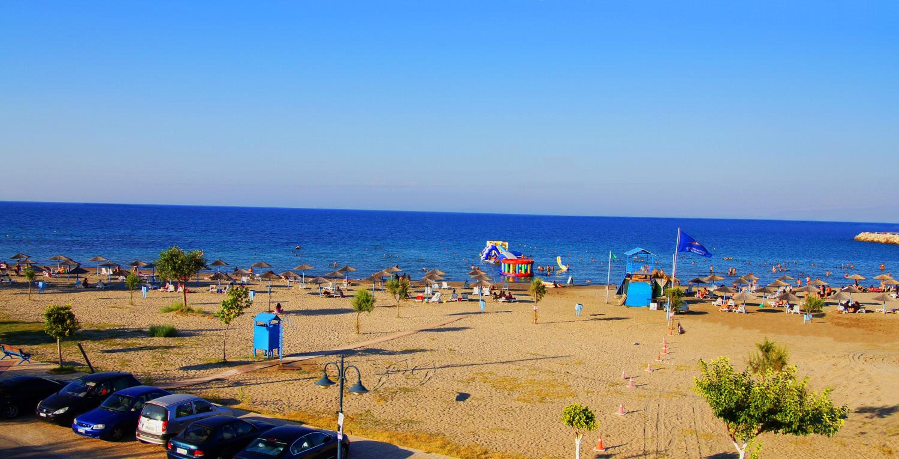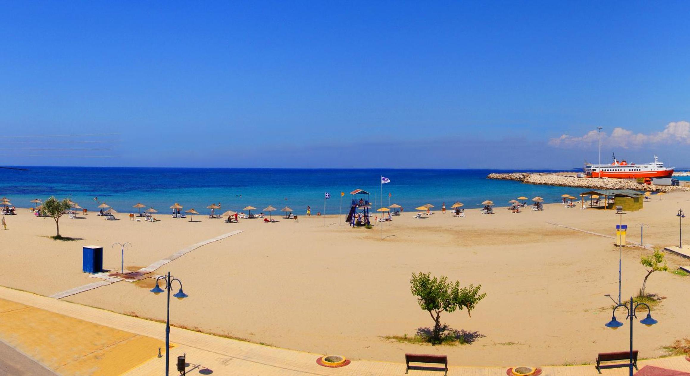 Great location next to port. 2 minute walk to a nice beach and a few tavernas and markets. Nice clean room. Plenty of free parking in front. Friendly family run hotel.