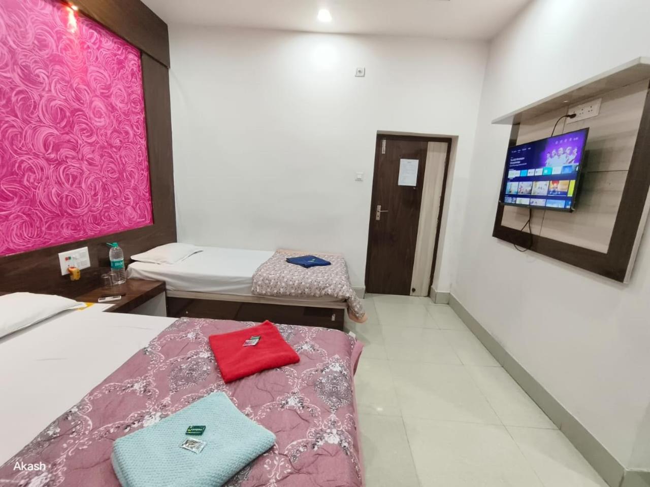 Cockroach found in washroom, washroom was not cleaned. Flush was not working on bedsheet there was stain, it is mentioned that it is next to the temple from 1 km, but it is very far from the hotel and towel was given very less, so was given very less.