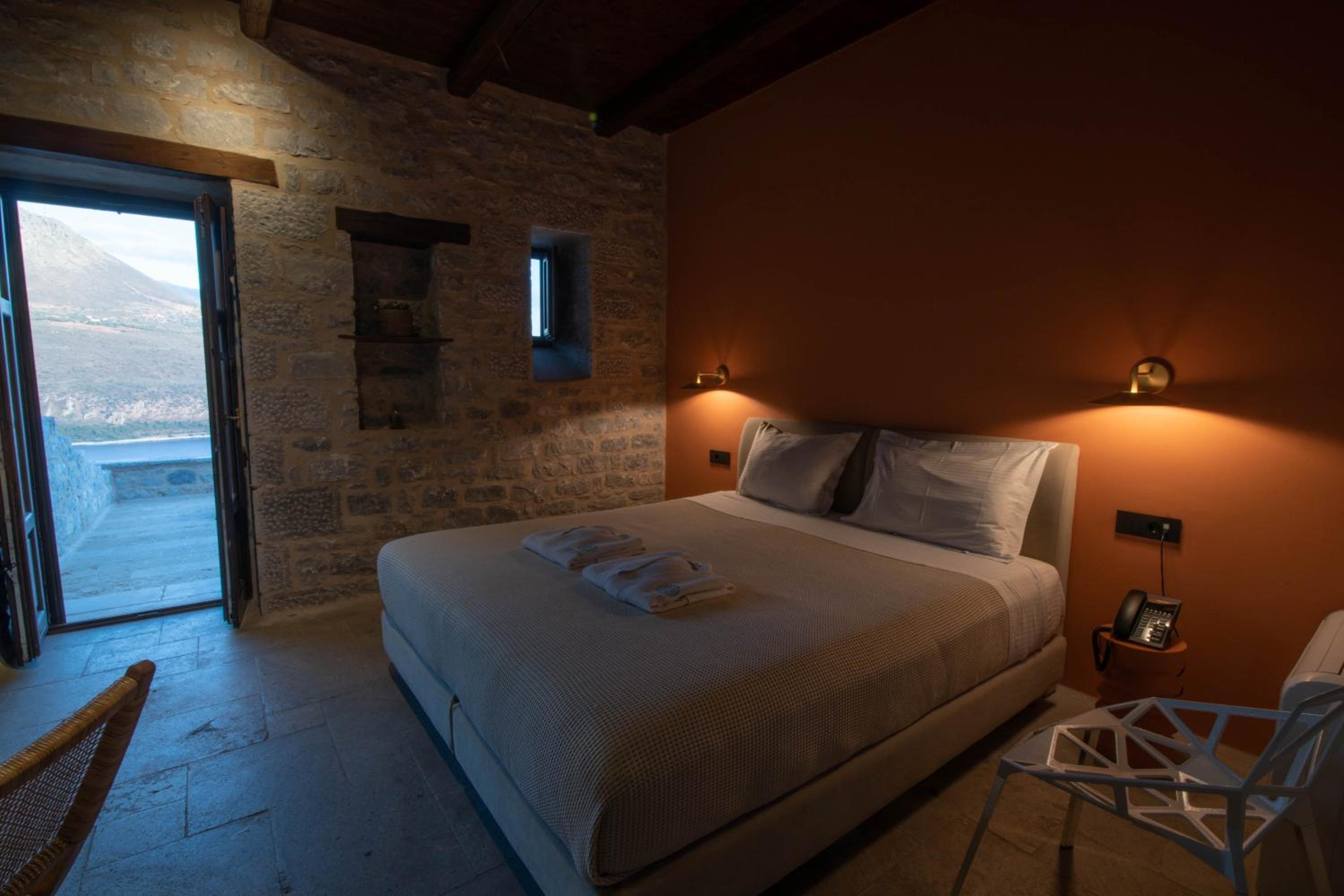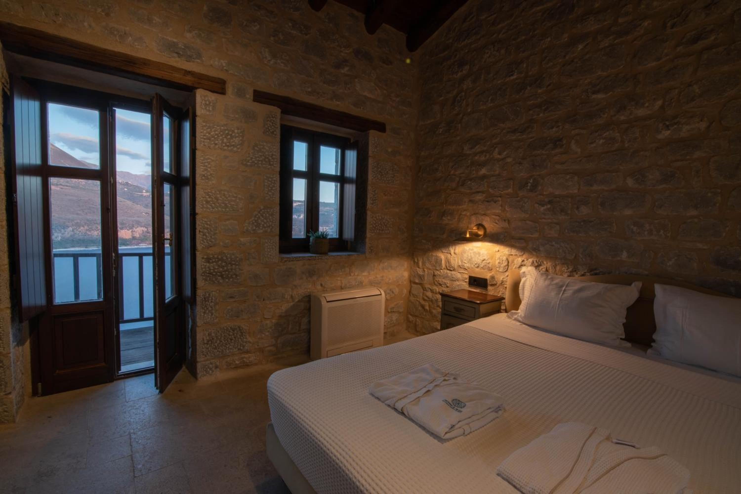 Experience the charm of traditional stone-built architecture at Petra & Fos Boutique Hotel, perched on the southern cliff-side of Mt. Taigetos. Enjoy breathtaking panoramic views over the gulf of Itilo from our sunlit rooms with beamed ceilings and wooden flooring.