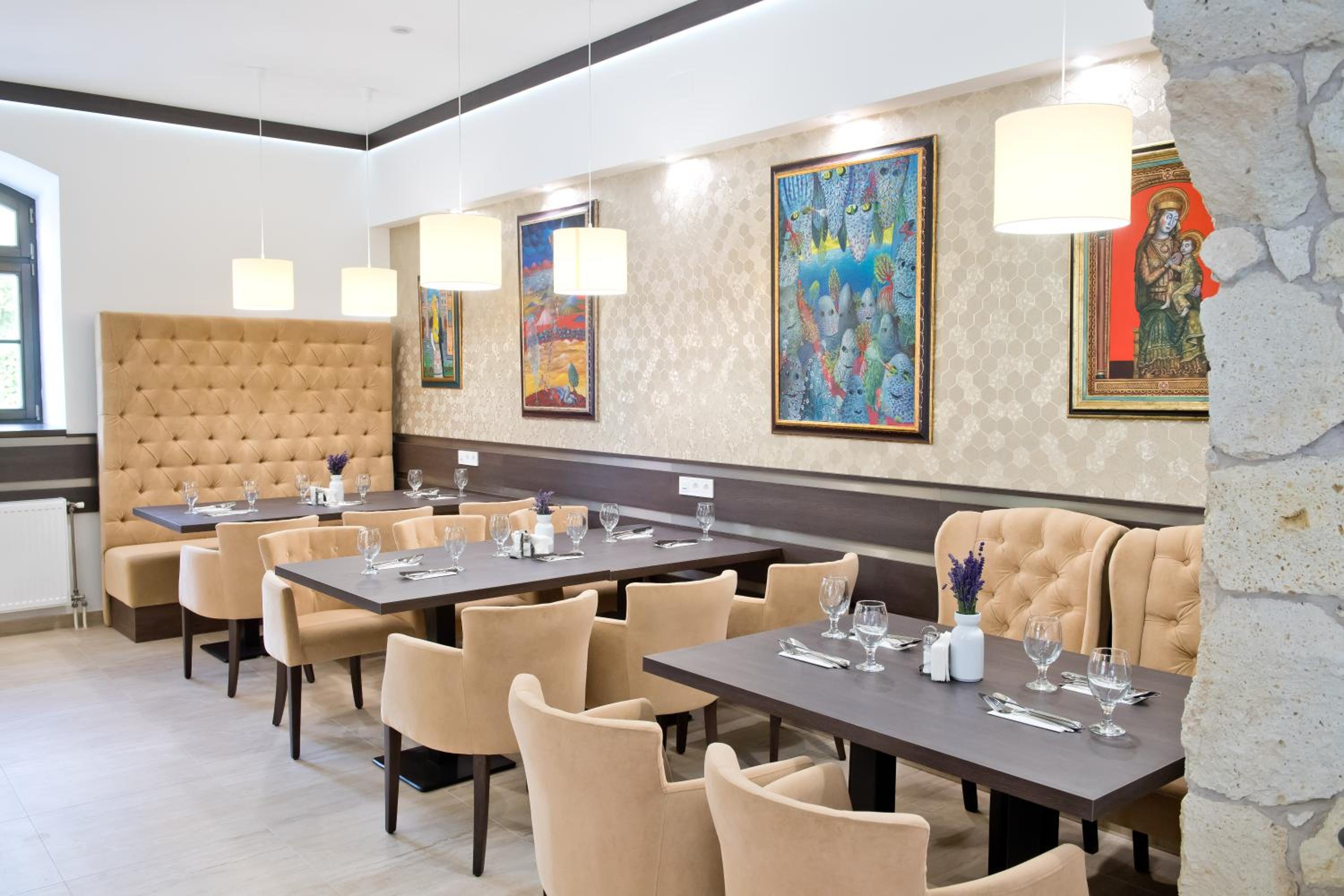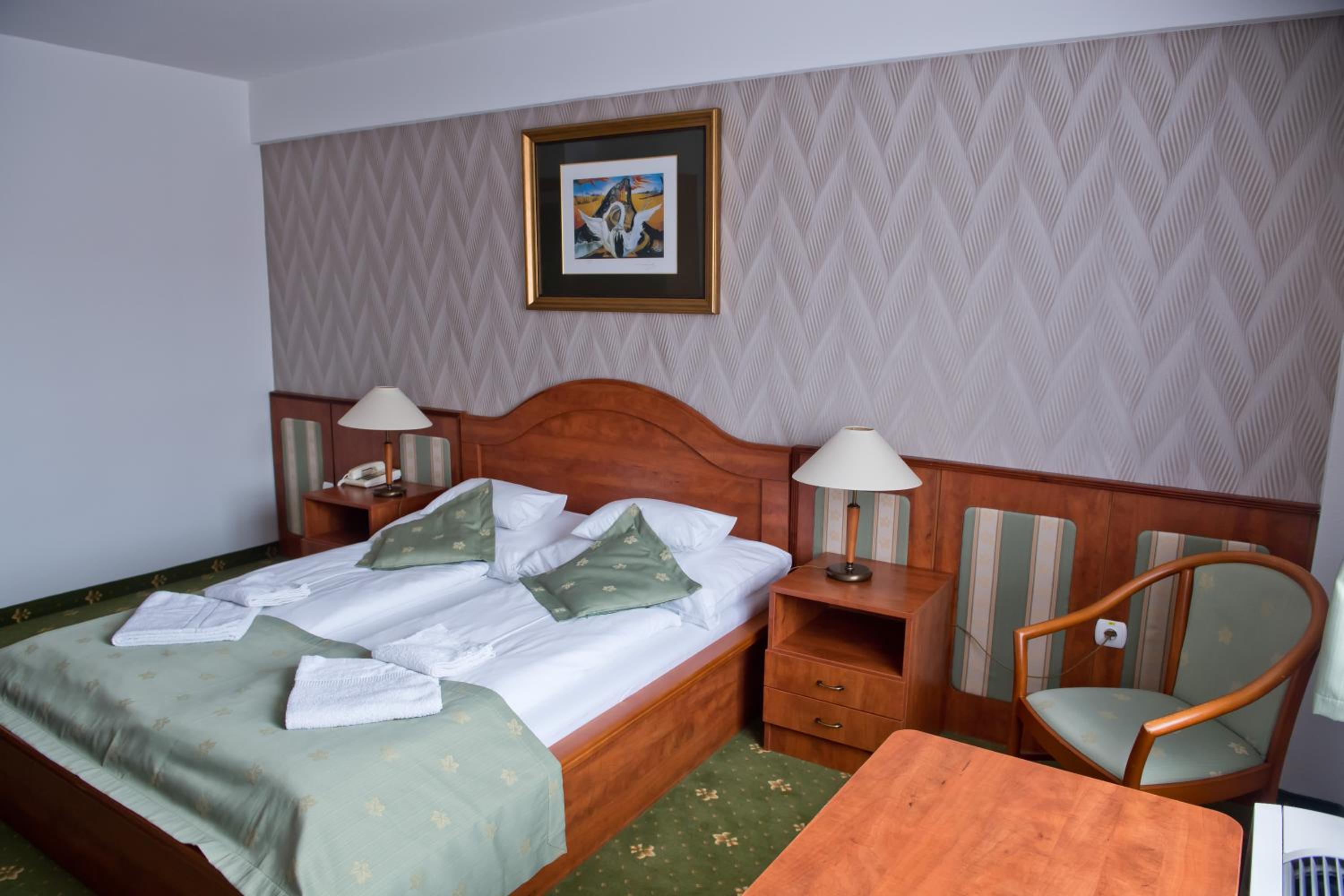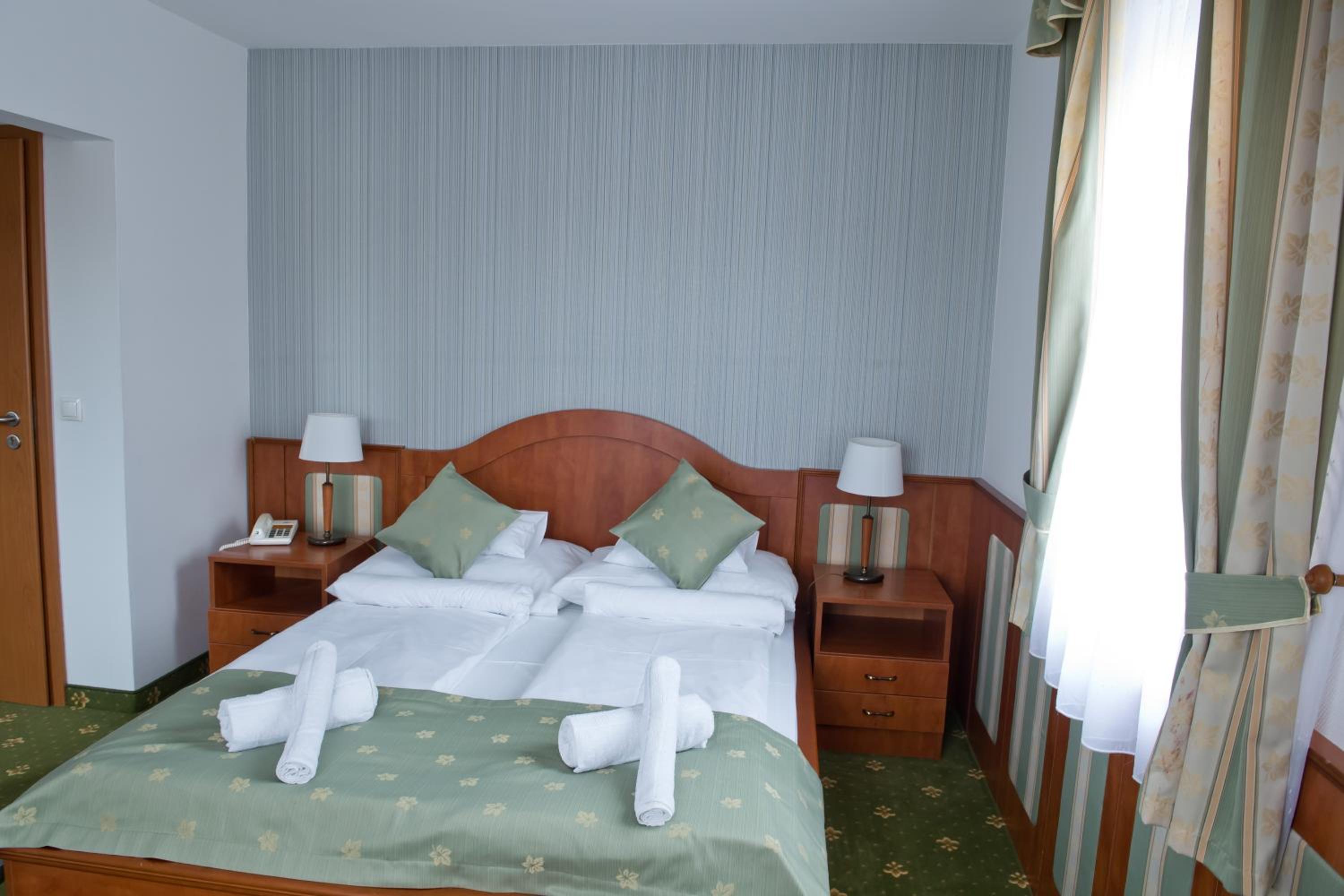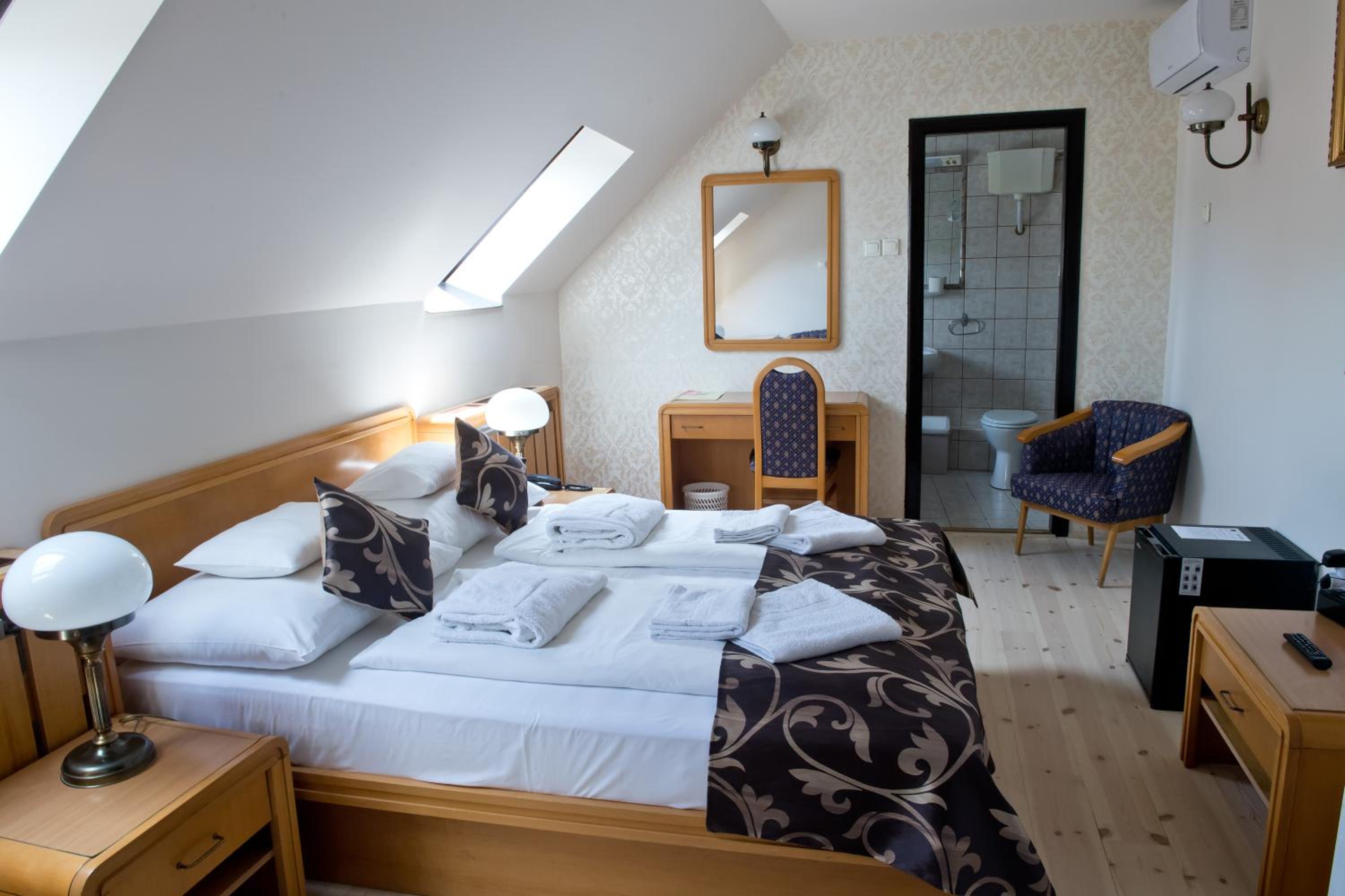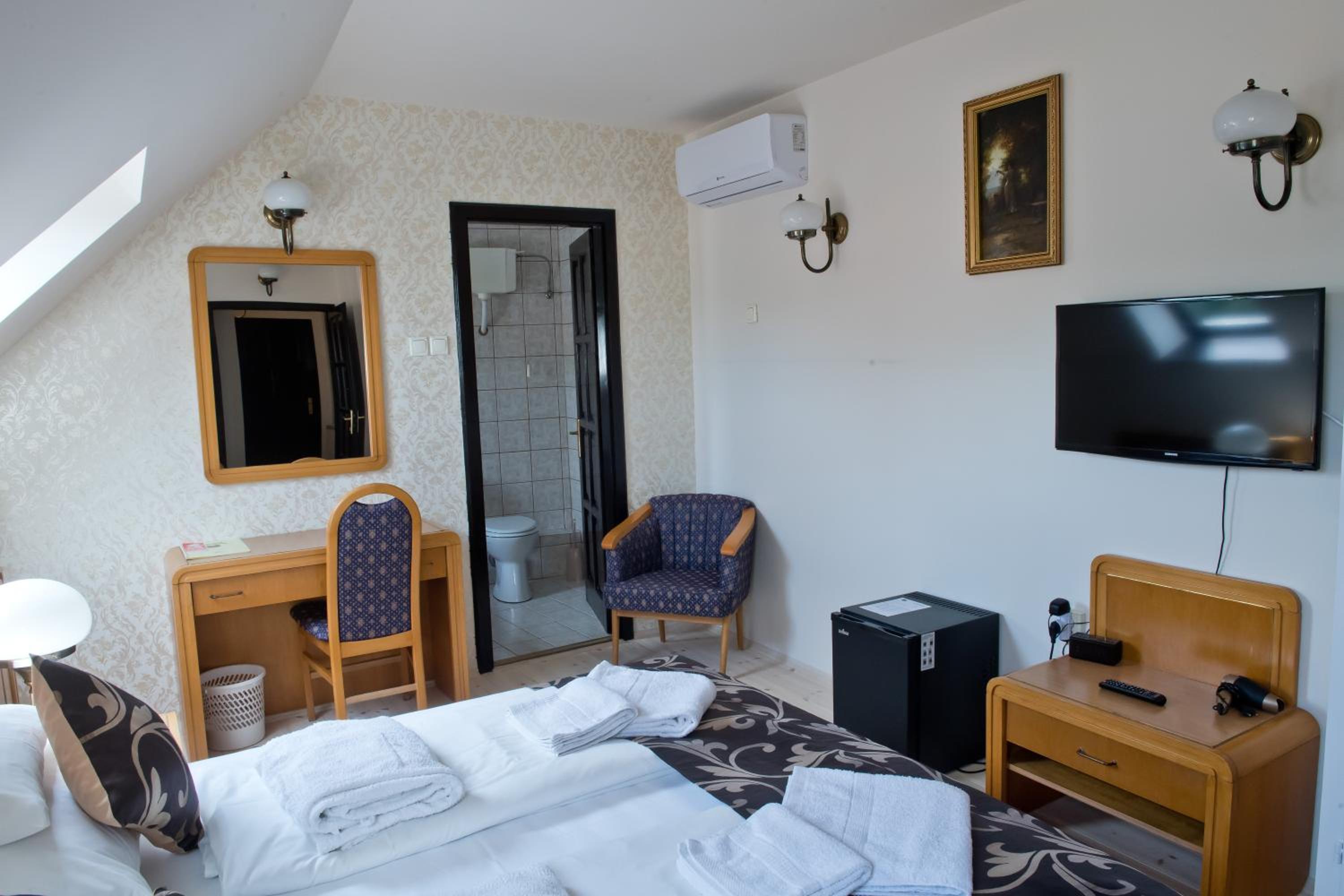 Indulge in comfort with pastel-colored rooms featuring wooden furniture and modern amenities. Explore the nearby ski slope, hiking tracks, and the fascinating exhibits at Tokaj Museum showcasing the region's wine-making heritage.