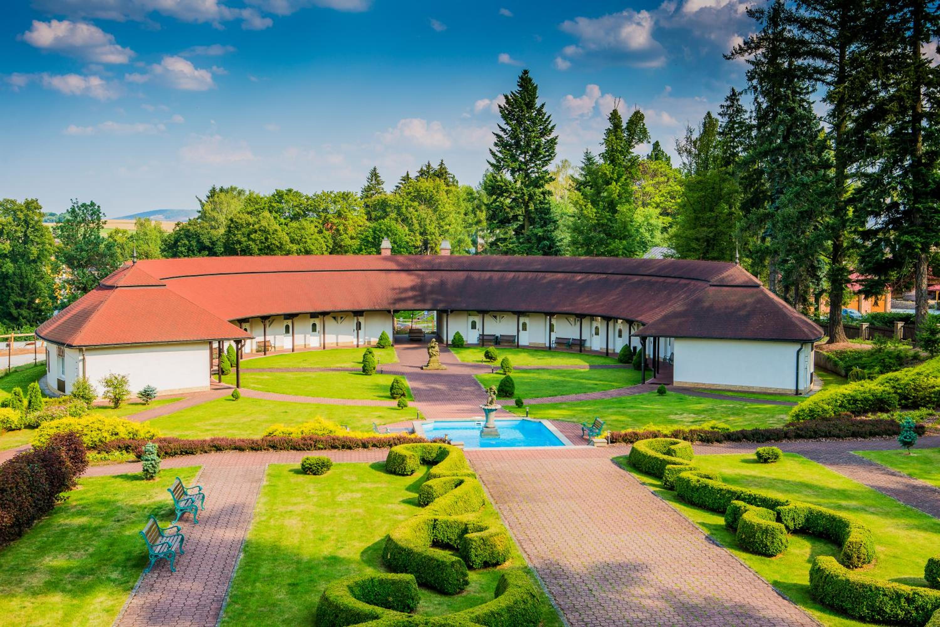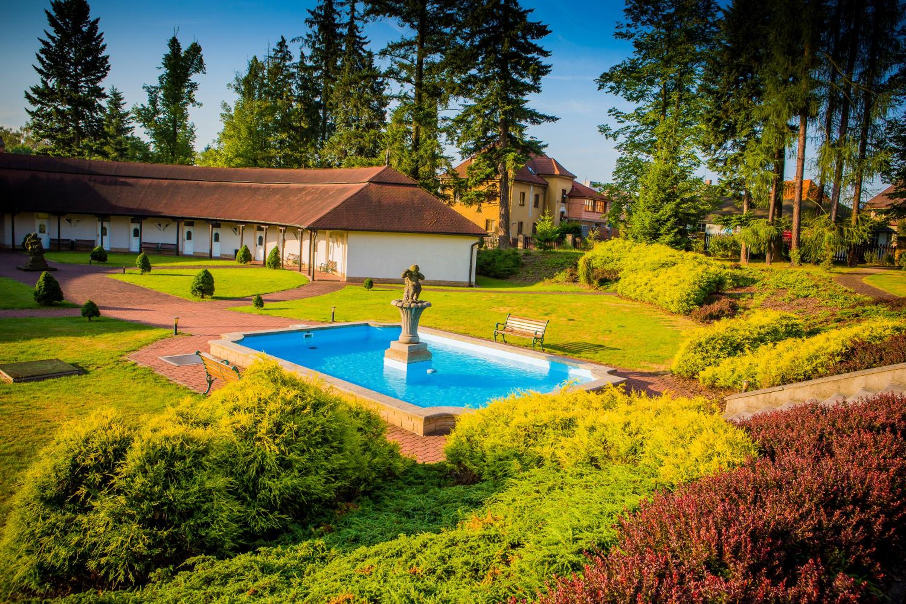 Ubytování v krásné zahradě. Perfektní wellness i když s nedostačující otevírací dobou.