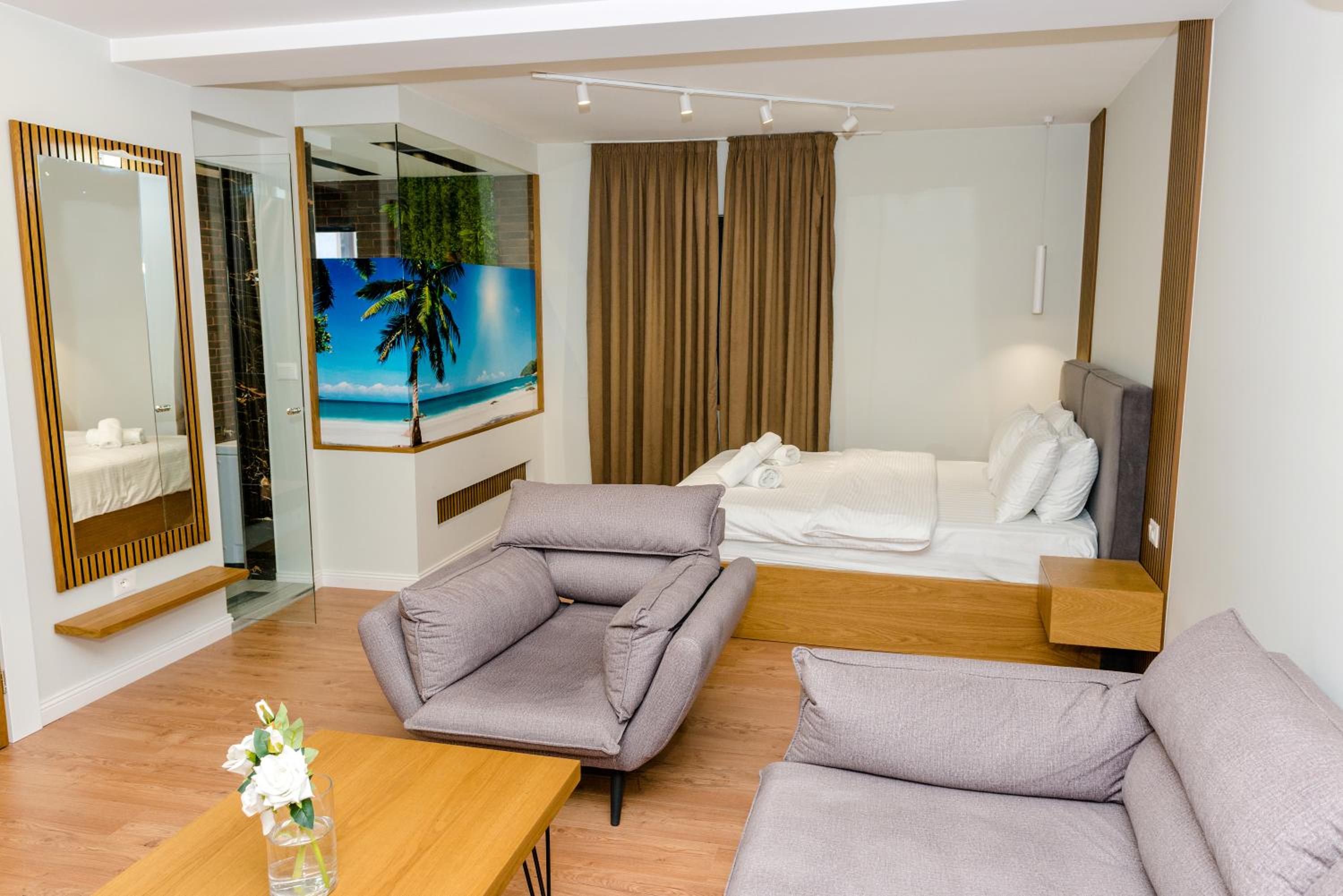 Each room at Hotel Pazari & Apartments features a private bathroom, flat-screen TV, and air conditioning. Some rooms even come with a balcony, providing stunning views and extra relaxation. Whether you're here for business or leisure, our modern amenities cater to all your requirements.