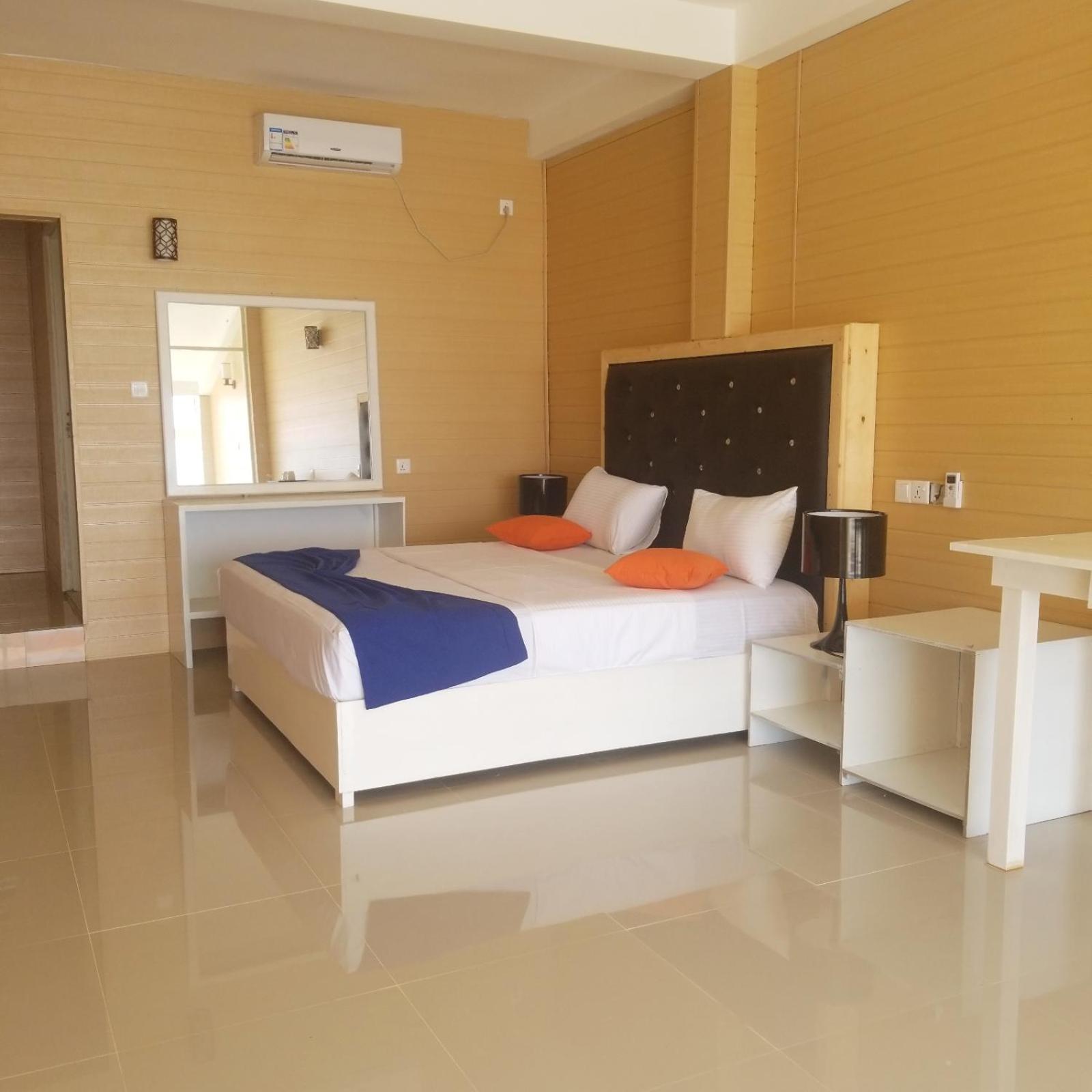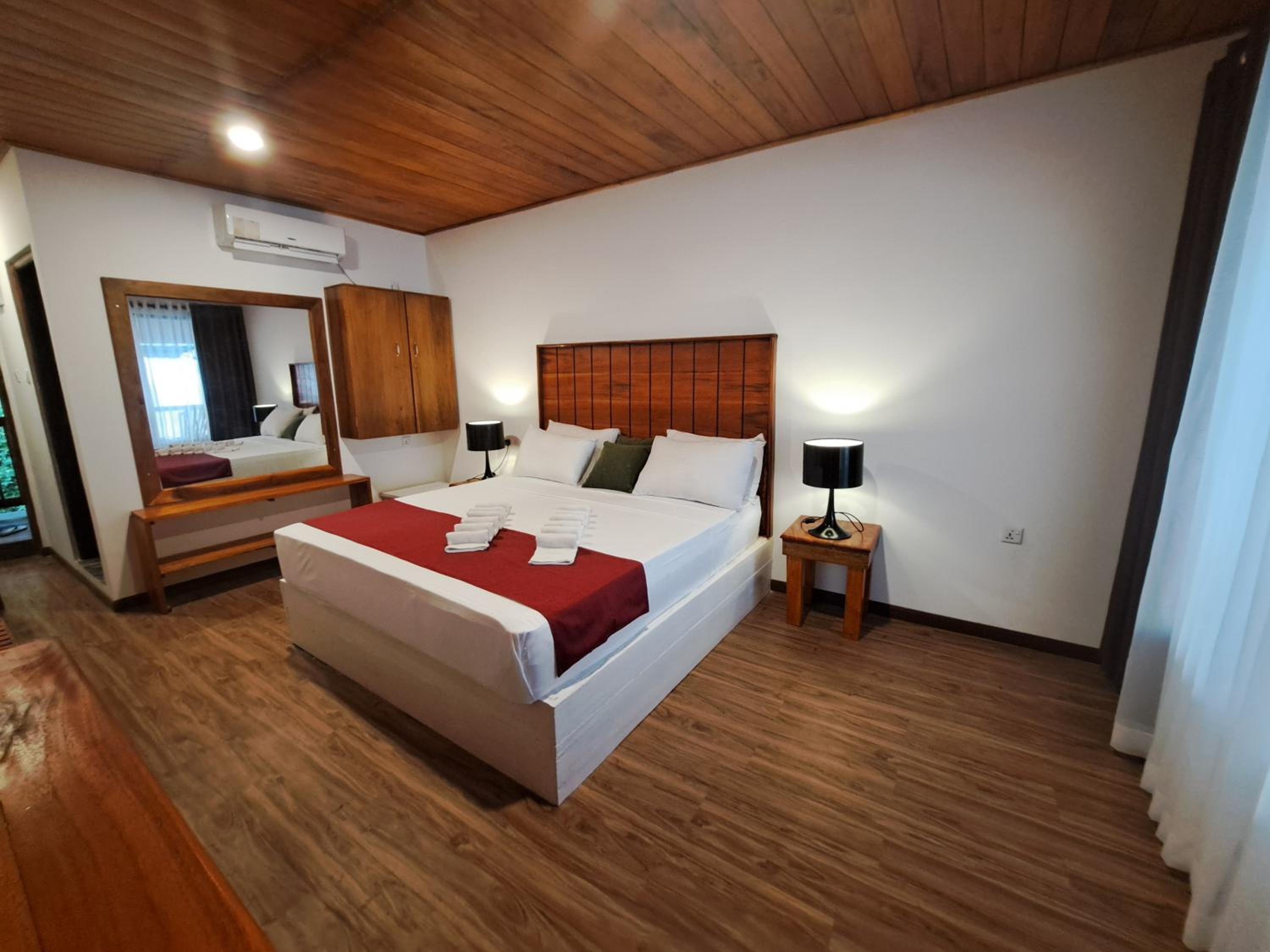 С потолка отвалилась штукатурка и это место просто закрасили. В ванной ещё хуже: вырванный замок на двери, кран пытался сбежать его забитонировали, плитка с раковы смогла совершить побег её решили не возвращать, стоит отвратный запах слив в душе выгнут будто ктото из него ломился на ружу. Скажем так мне не нравится необоснованно повышение цены и то что отель не может честно конкурировать на рынке. Отель явно для местных, мы встретили 10 местных мужиков купающихся в бассейне в котором прекрасный вид но вашей девушке или жене думаю будет мало приятного идти в бассейн 3×6м с 10ю мужиками. Да я бы не стал оставаться в нем если бы не политика Booking очень списание средств за отмену, а просто нашёл что-то похожее или дороже. Так-же у вас не получится отменить проживание и вернуть деньги после заселения так как на вас будут смотреть буд-то бы вы им врете в глаза 👀 и отель просто супер. В 22.02.26 при выезде были удивлены они начали снимать сгнившие доски у босеина возможно что людям после нас повезёт и они заселяться в отель после ремонта.