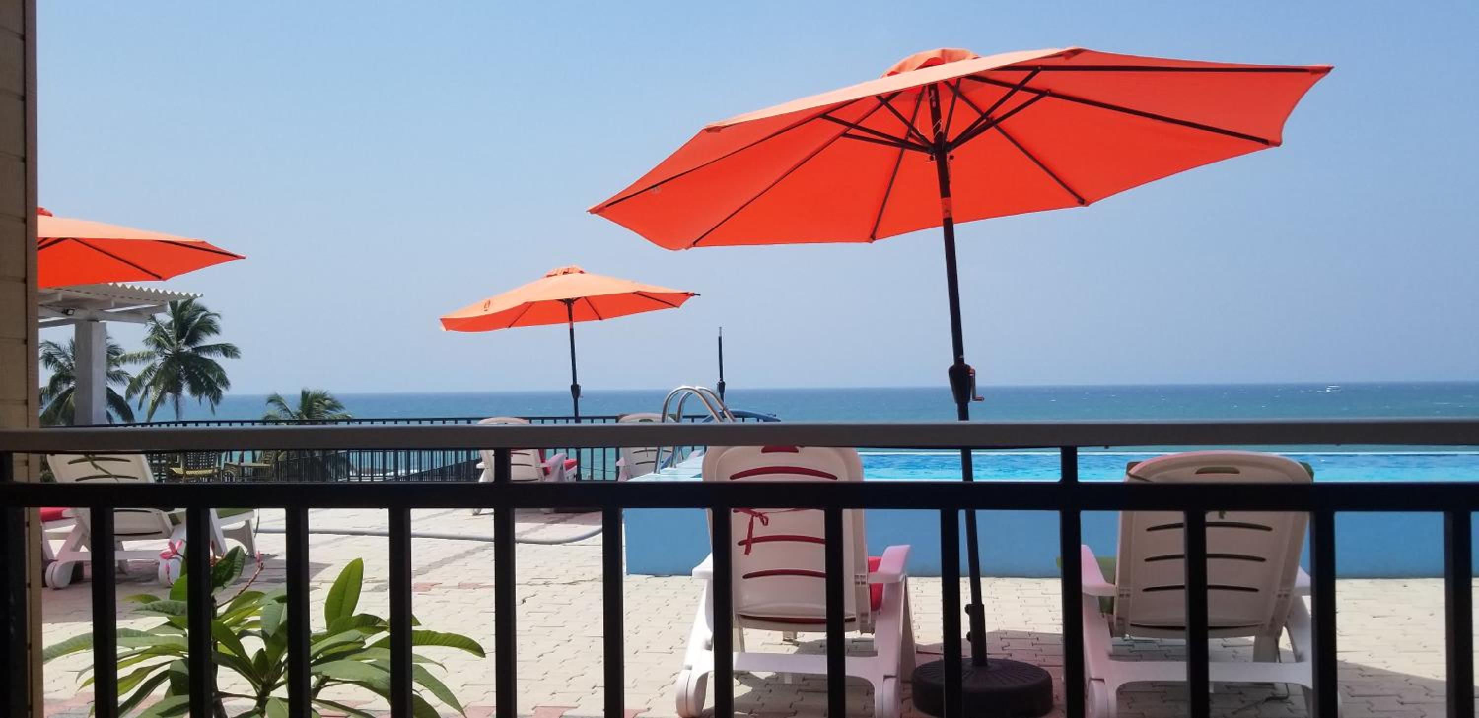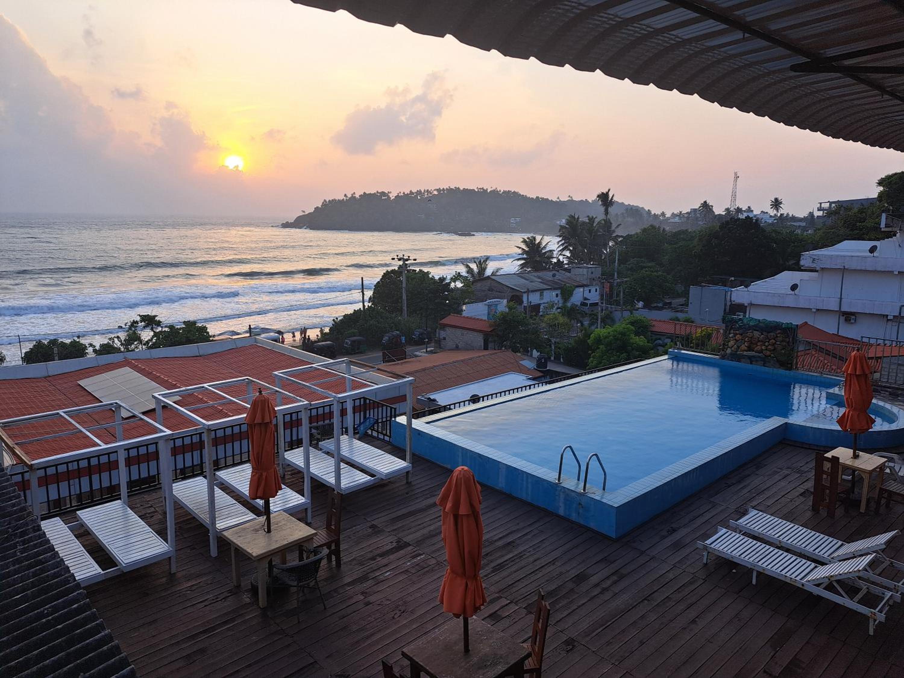 Dobra lokalizacja, śniadanie standardowe lankijskie, widok z basenu na ocean ale też na dach stacji benzynowej.