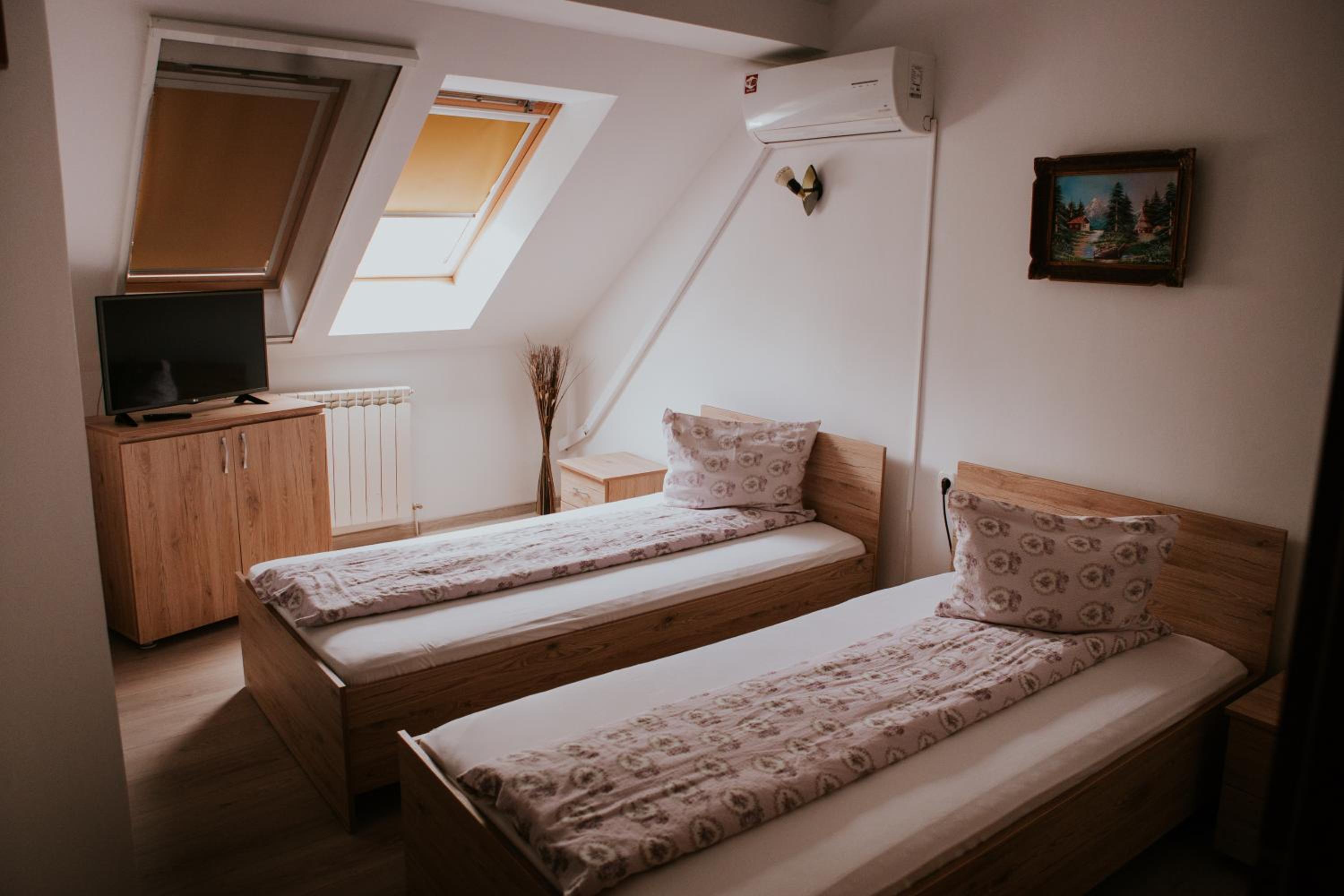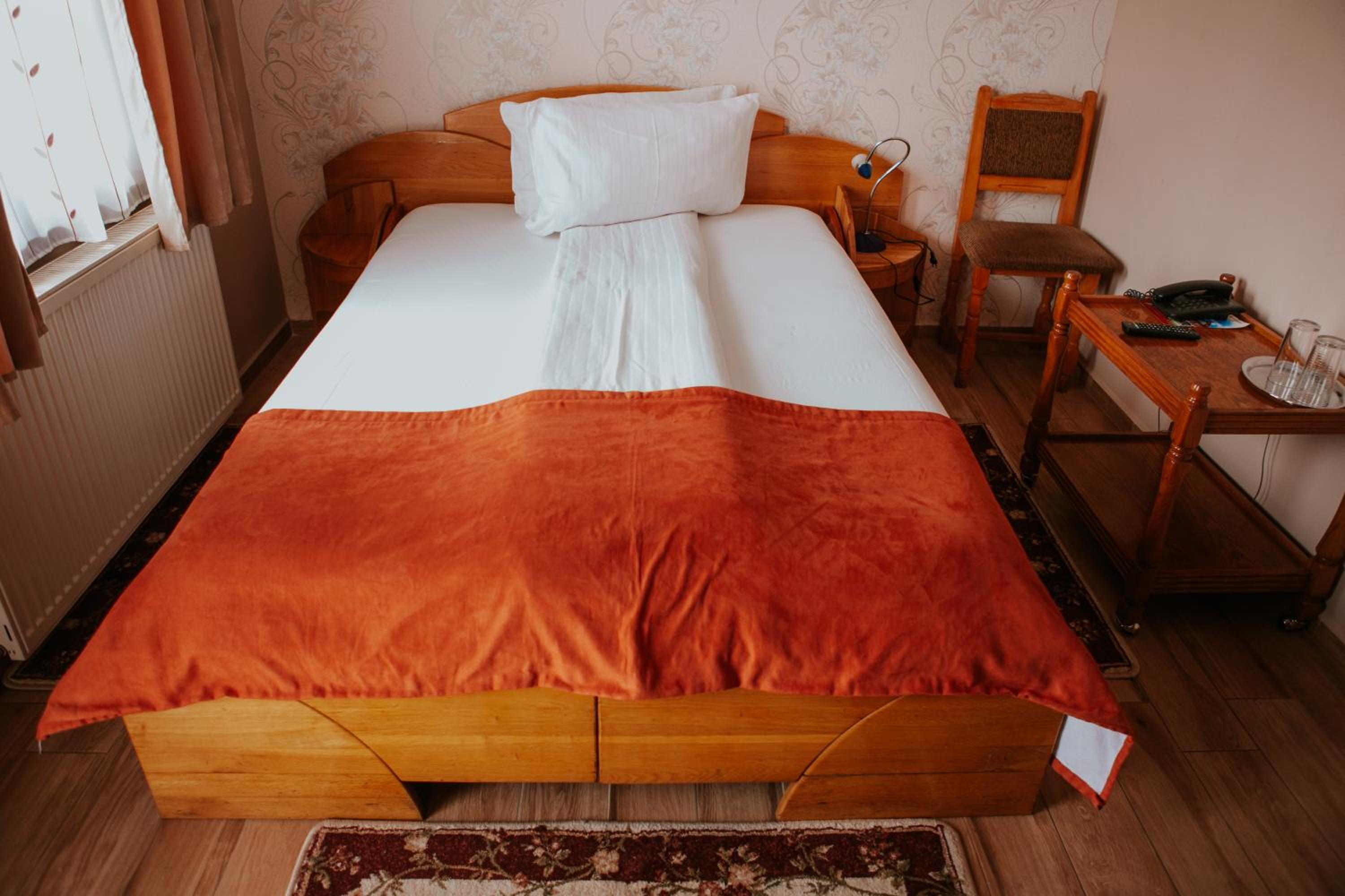Maiłem rezerwację na pokój dwuosobowy z dwoma łóżkami a dostałem z jednym większym łóżkiem, hotel miał być czynny całą dobę a jak dotarłem o godzinie 23:50 to na szczęście jakiś Pan zamykał już drzwi i z łaski nas zabukował w pokoju z jednym łóżkiem ( dla 2 osób) i powiedział że bierzemy to albo wychodzimy, nic innego nam nie da nawet jeśli mieliśmy rezerwację przez booking