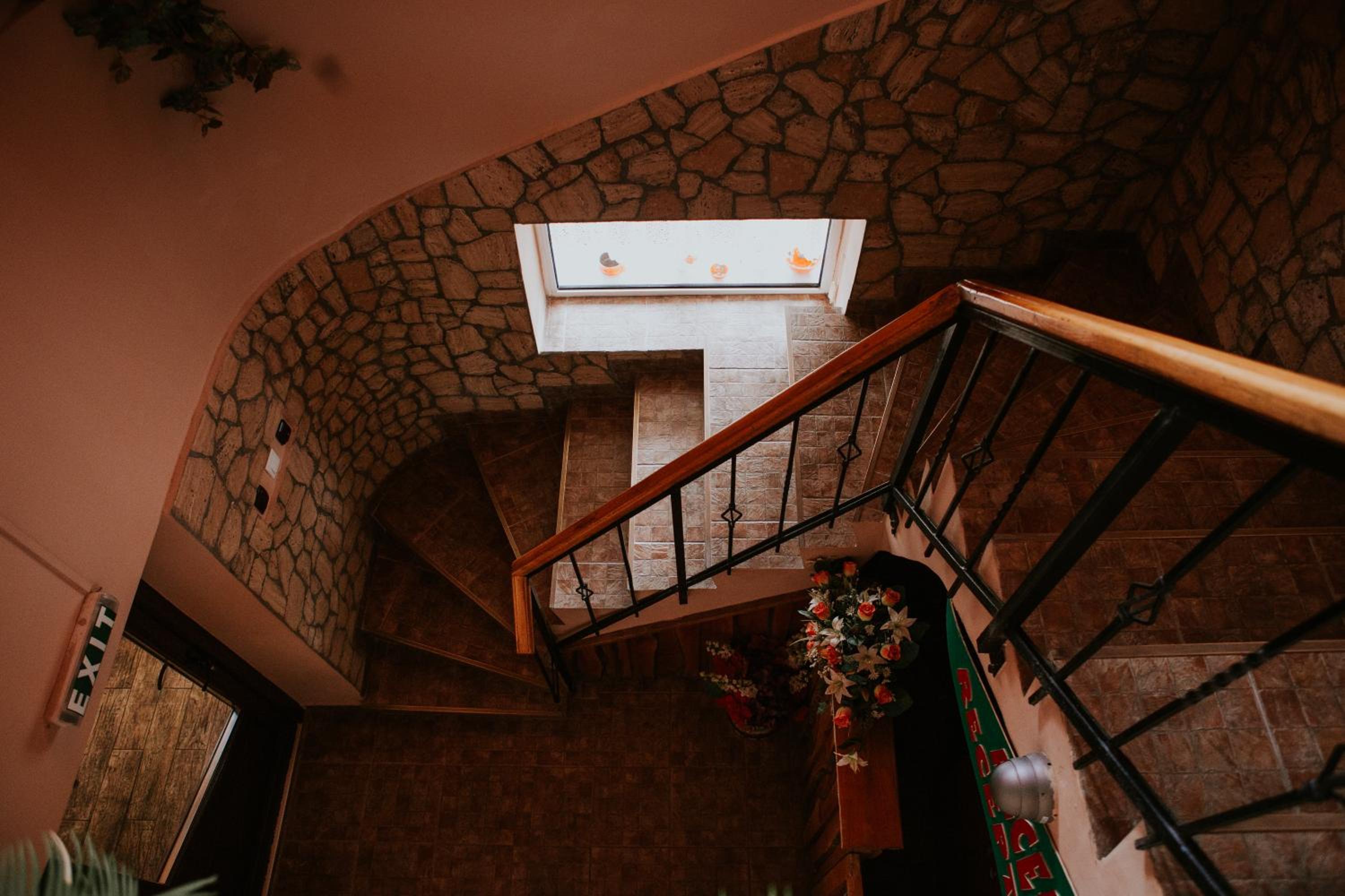 A személyzet nem volt túl barátságos. A szobák az éttermen keresztül voltak megközelíthetők, nagyon meredek és keskeny lépcsőkön.
