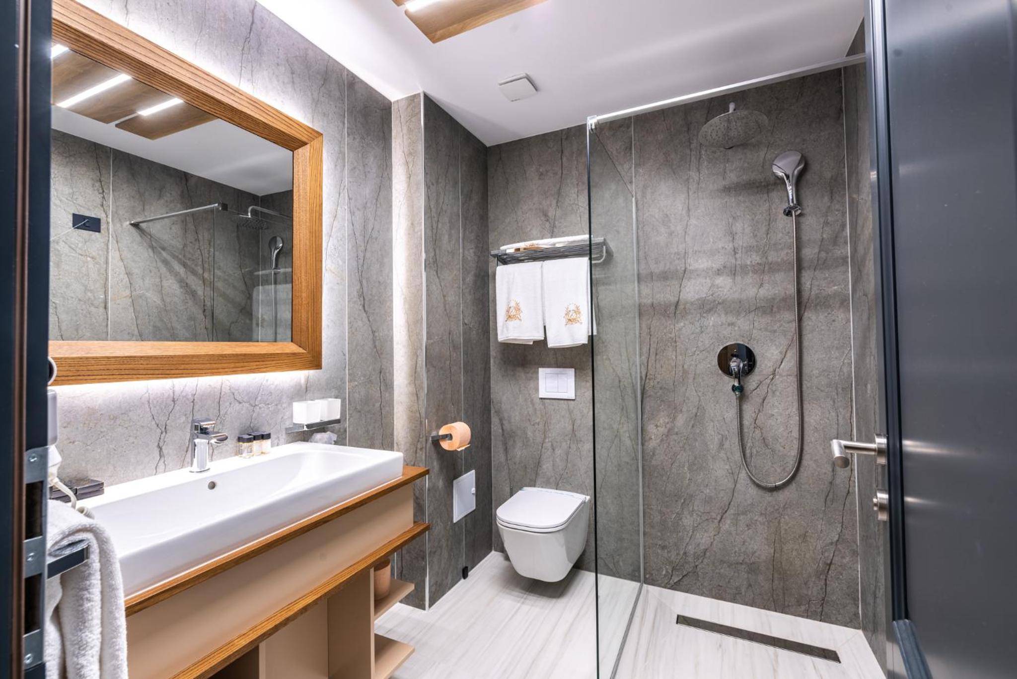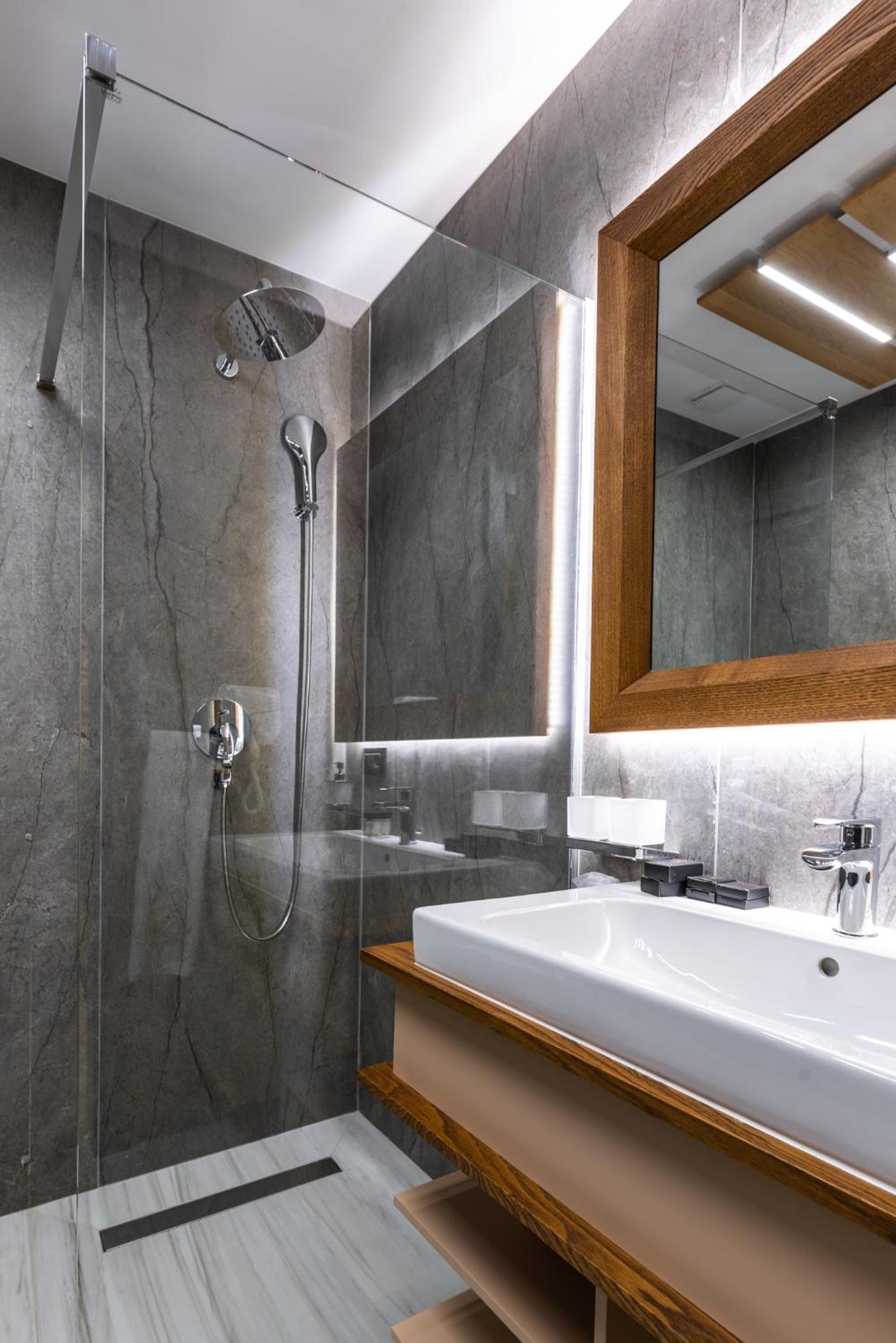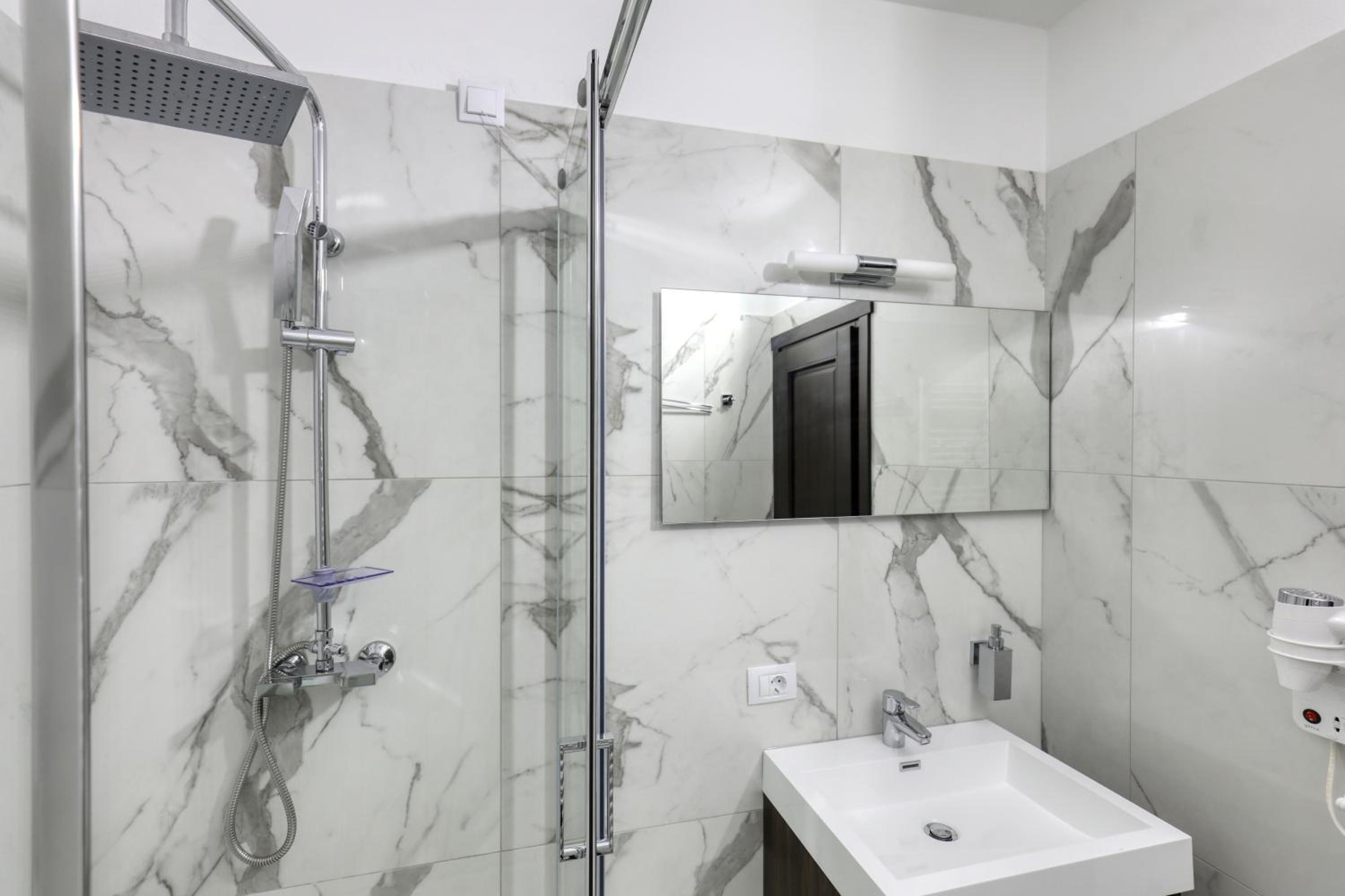 În zona spa ar fi util un duș obișnuit. Dușul emoțional are altă destinație, iar cel din vestiare este destul de departe. În plus, aici se mai acumulează apă pe podea.Risc de alunecare!