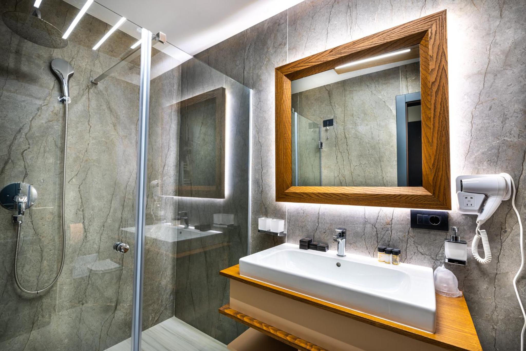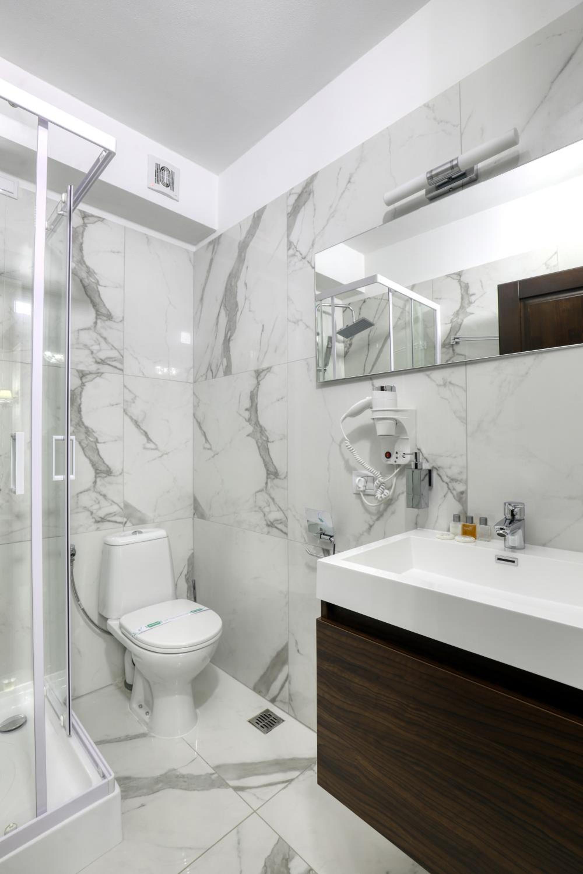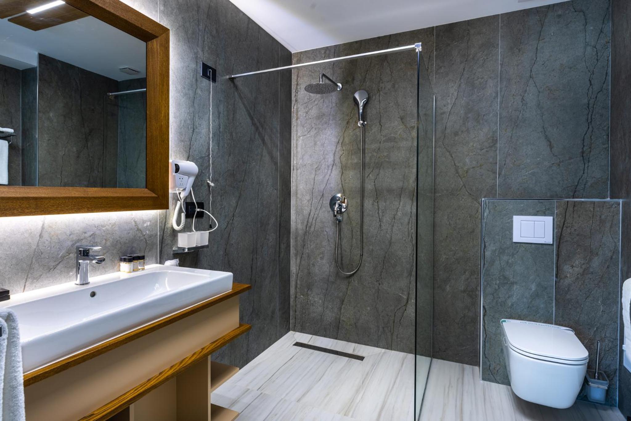 În zona spa ar fi util un duș obișnuit. Dușul emoțional are altă destinație, iar cel din vestiare este destul de departe. În plus, aici se mai acumulează apă pe podea.Risc de alunecare!