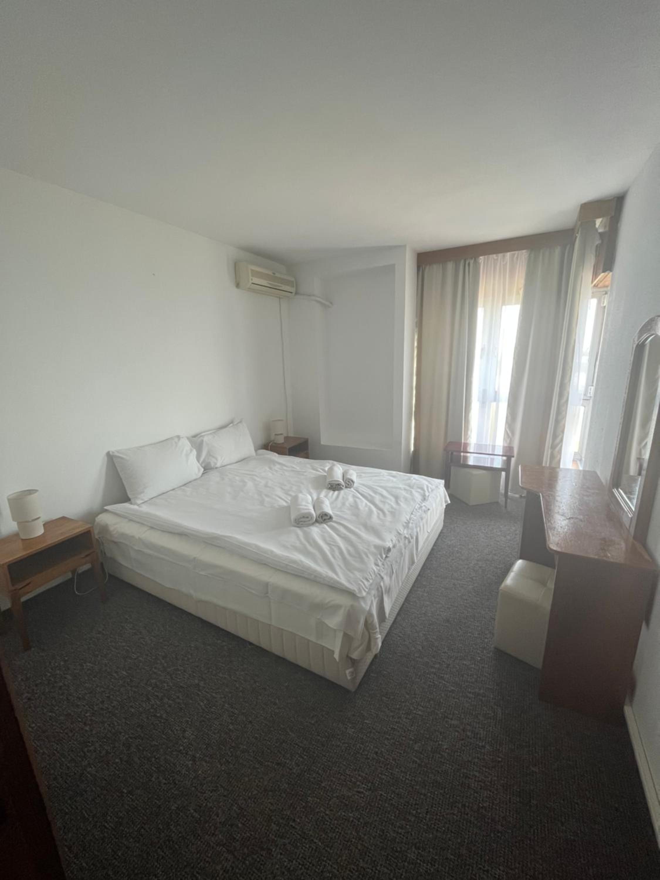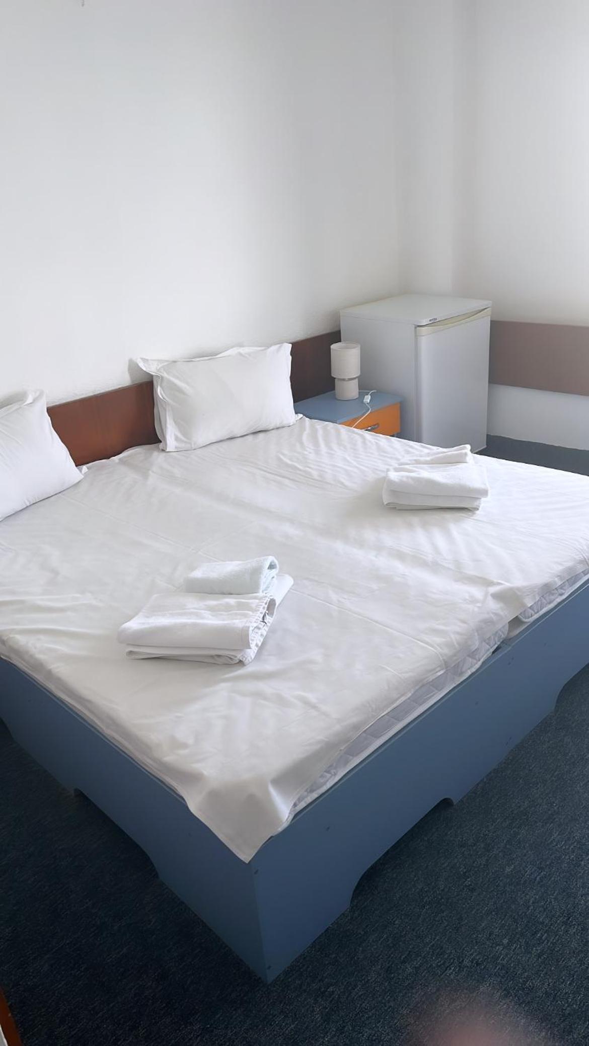 The Hotel Banat in Olimp Beach offers functional rooms equipped with modern amenities like a TV, refrigerator, and private bathroom. The comfortable accommodation ensures a relaxing stay for all guests.