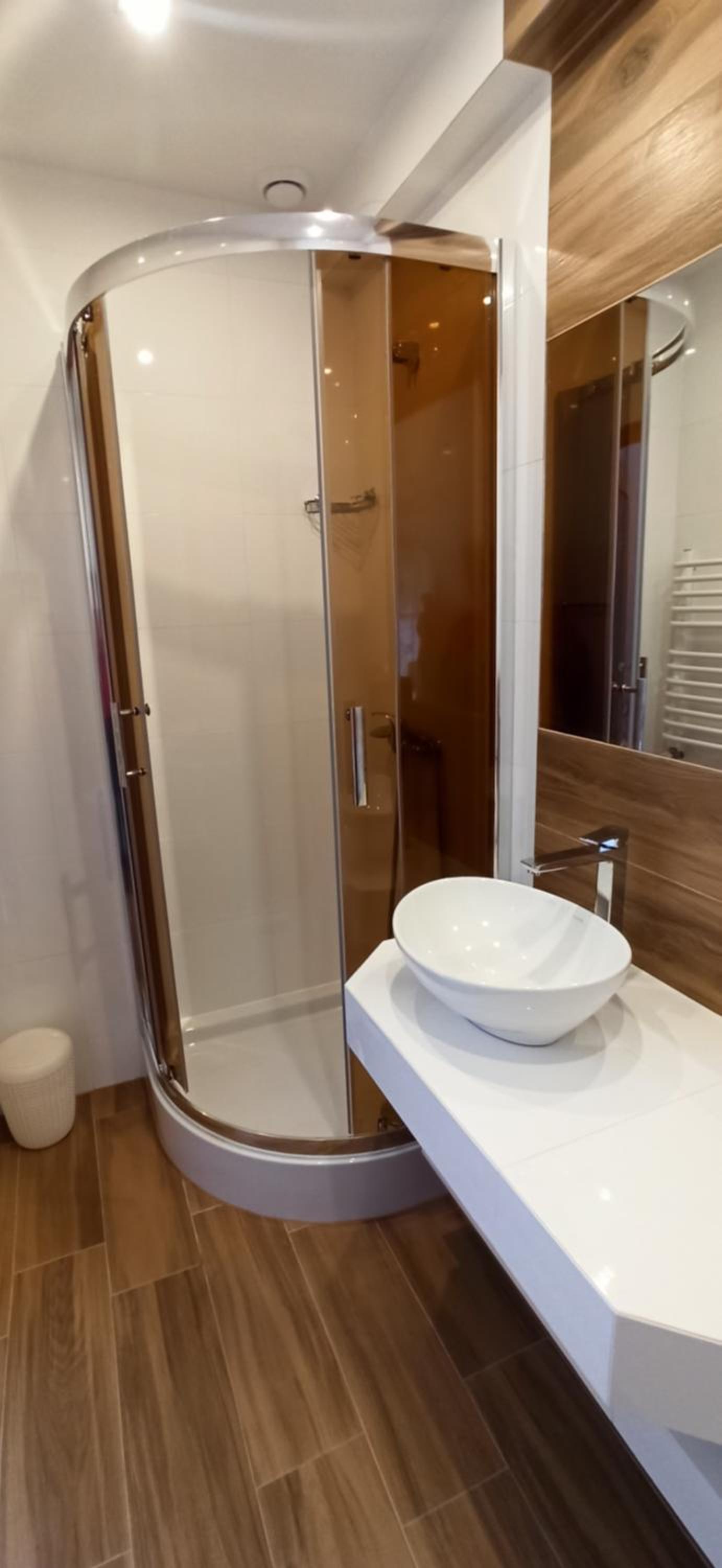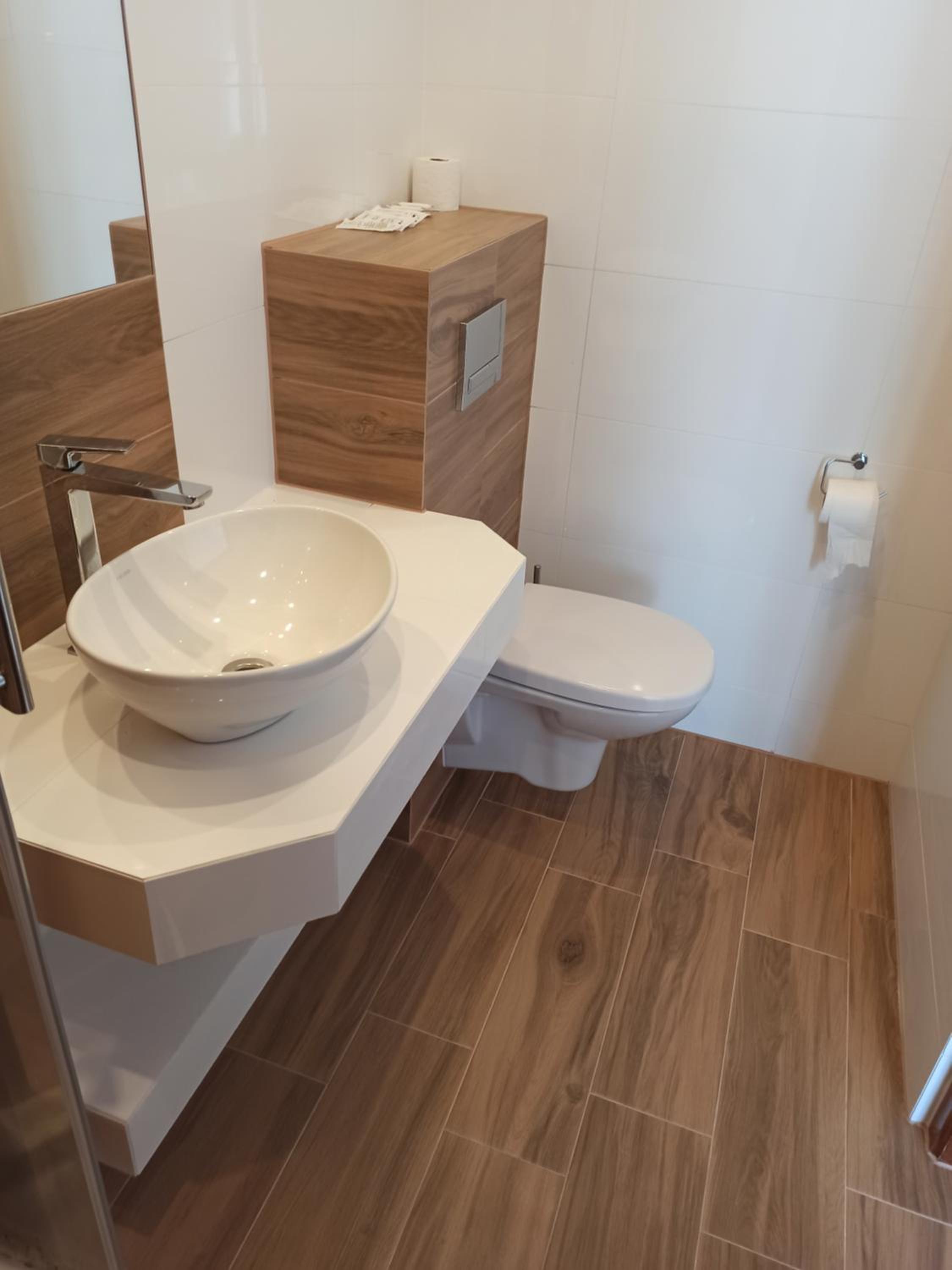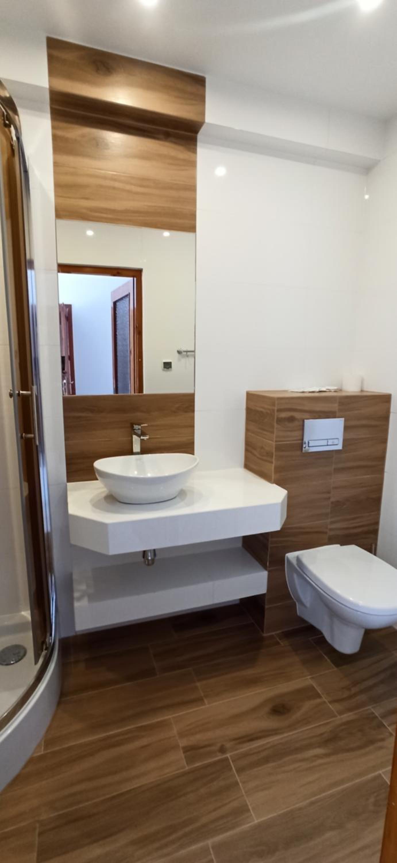 Brak "nocnego" oświetlenia w łazience, może dodałbym kilka półek na akcesoria w pokoju.