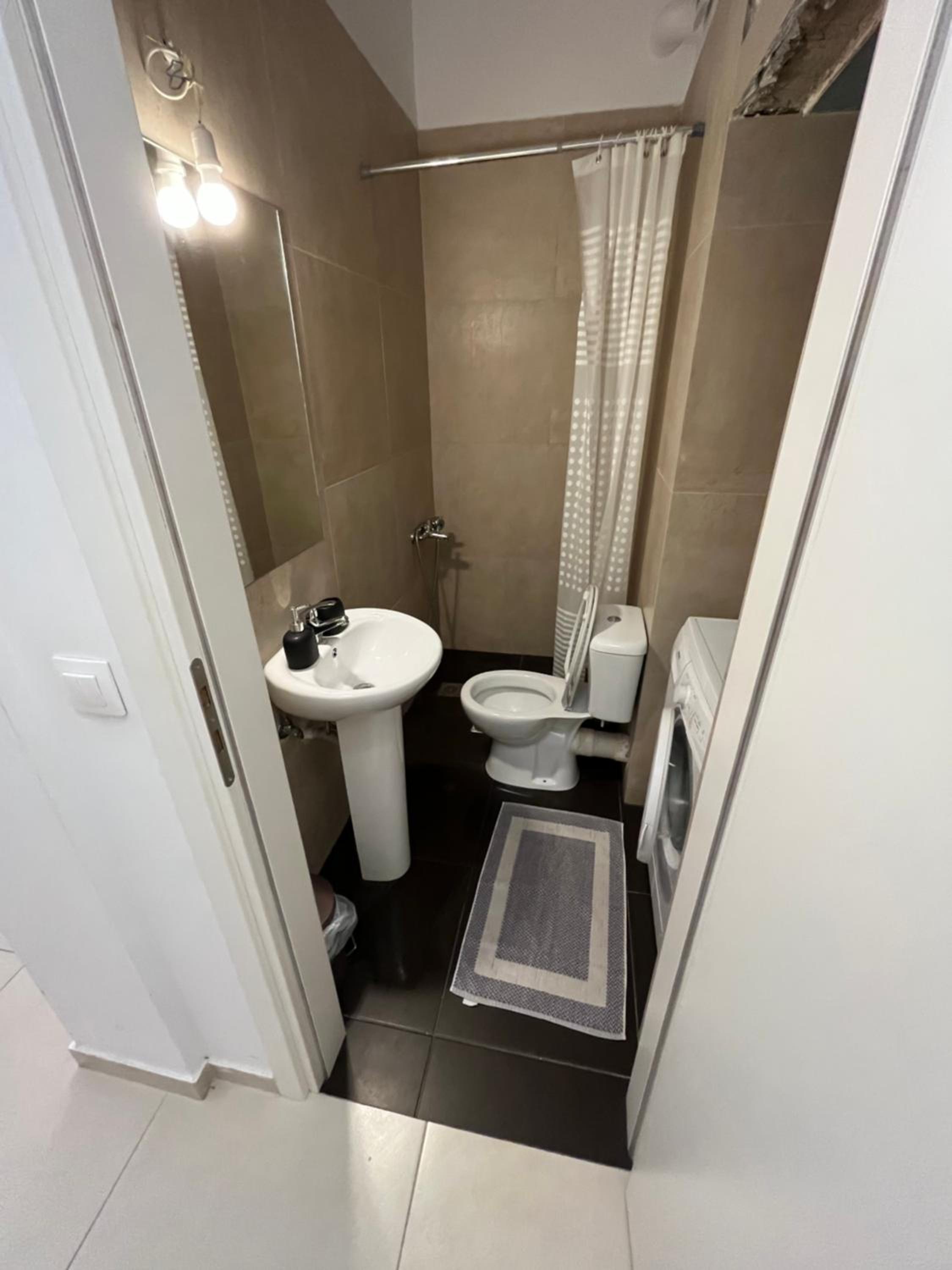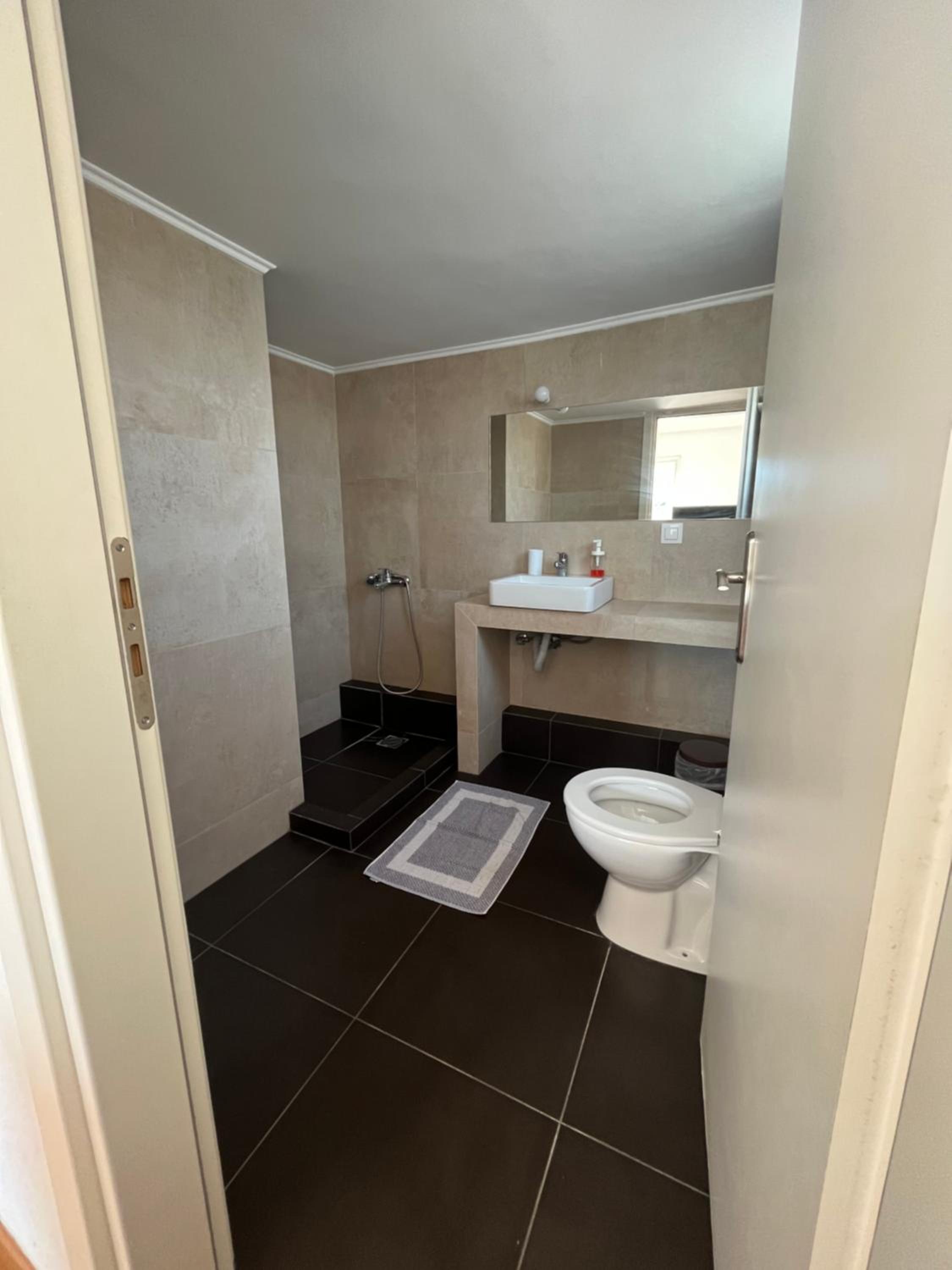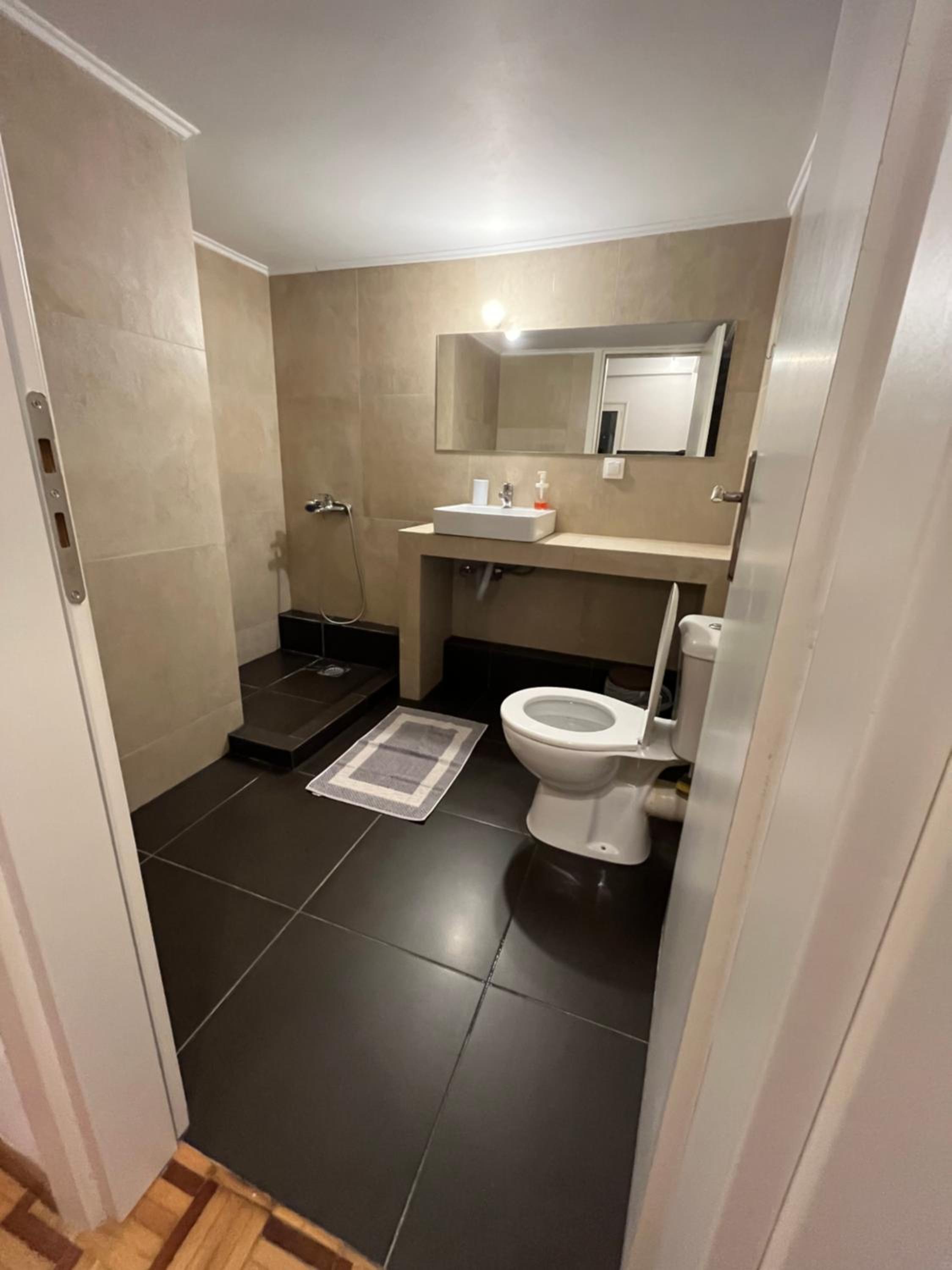 the bathroom wasn’t attached to the room which i didn’t know beforehand and it was in the hall where there were 2 other rooms, so it felt like we were making a lot of noise always opening and closing and going between the two doors. the shower also just didn’t have a way of keeping the water in it so it went everywhere and there was no above head shower head or anywhere to put the hand held shower head which made it a bit hard to shower. also no way of putting up the shade cover the evenings and nights so you can actually see the view. also after a long day in athens riding the metro then walking to the place and walking up 4 flights of stairs was a lot. also the doors are thin so you can hear everything happening in the hall and other rooms if they ar loud.