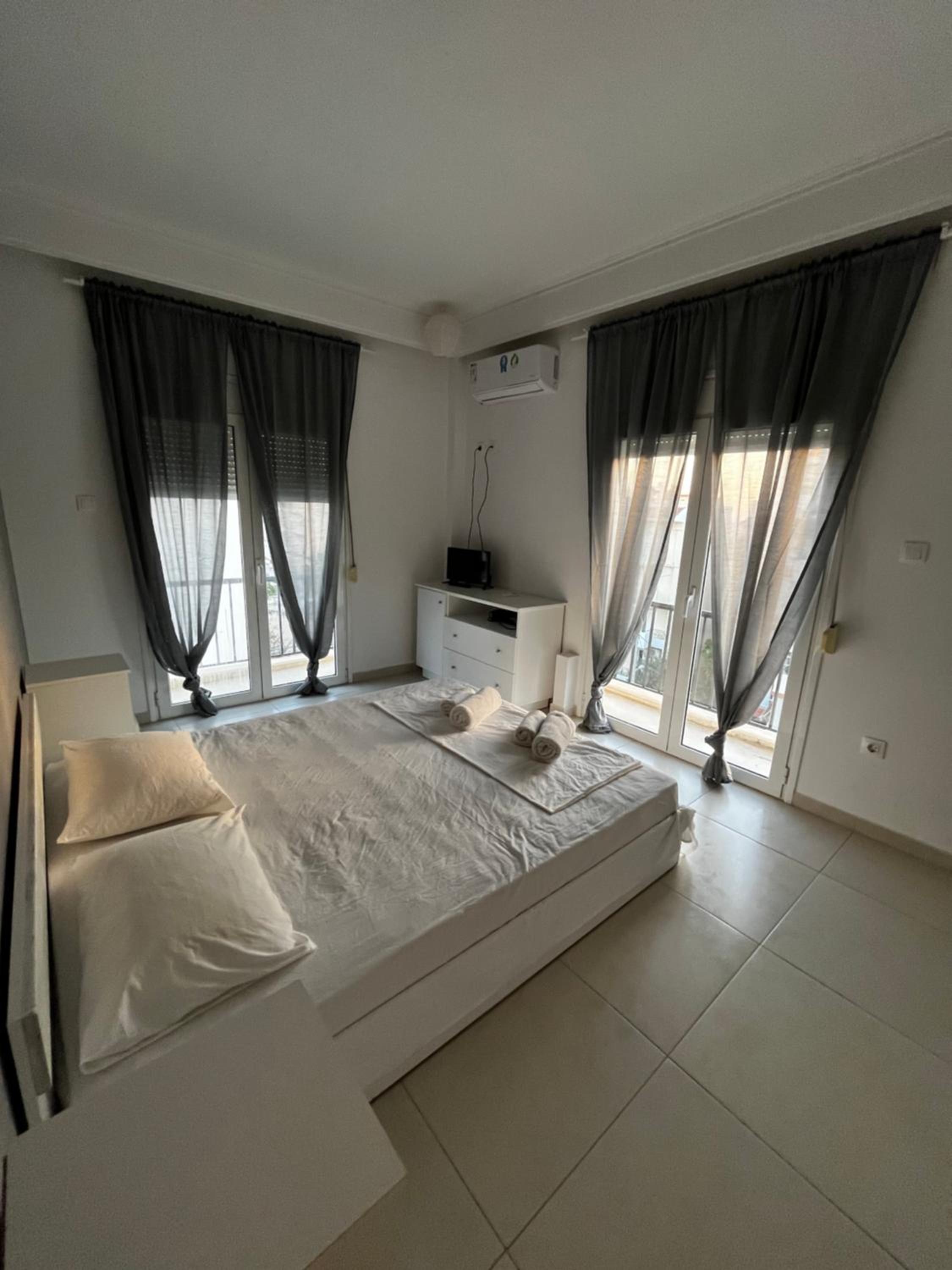 Ar condicionado no quarto do casal, lençóis limpos. Atendimento do proprietário que responde de imediato. Tem vista de longe para a Acrópole. Quarto espaçoso.