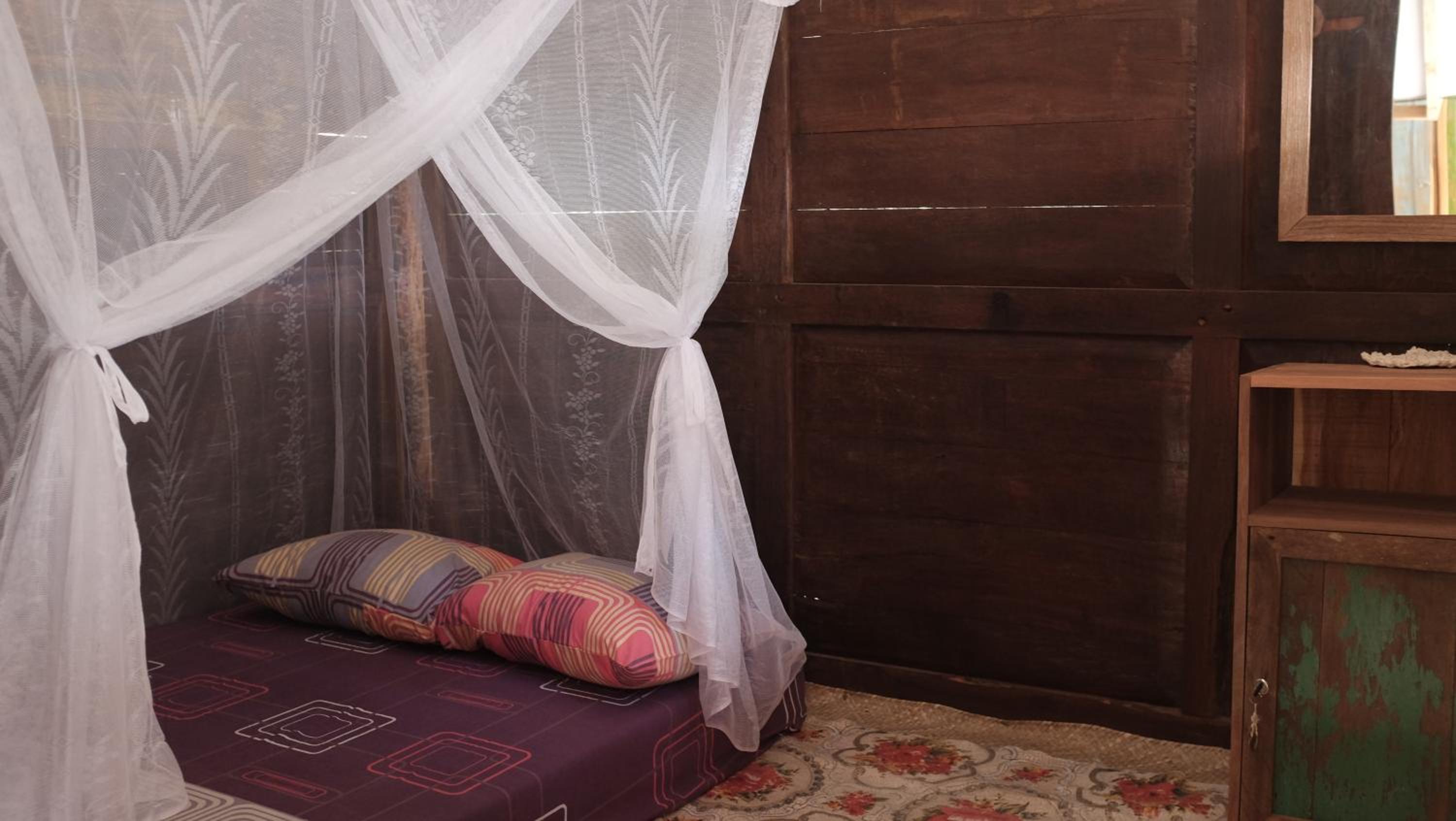 Da die Holzhütten diverse Krabbeltiere anlocken und man auf dem Boden schläft muss man diverse Mottenkugeln unter der Matratze ertragen oder halt Ameisen etc. akzeptieren