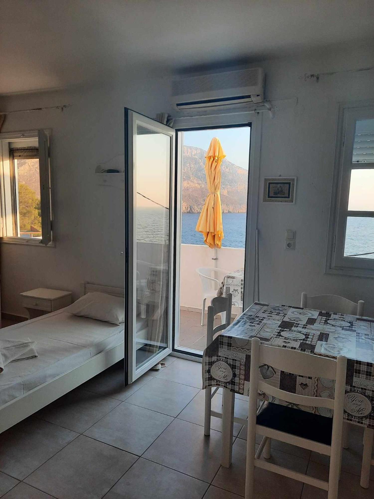 Bilocale spazioso, ben attrezzato e con bellissima terrazza. Impagabile vedere il mare proprio sotto casa e sentire le onde! La posizione consentiva di raggiungere comodamente tutte le altre località dell'isola. Molto vicino il traghetto per la spettacolare Telendos.