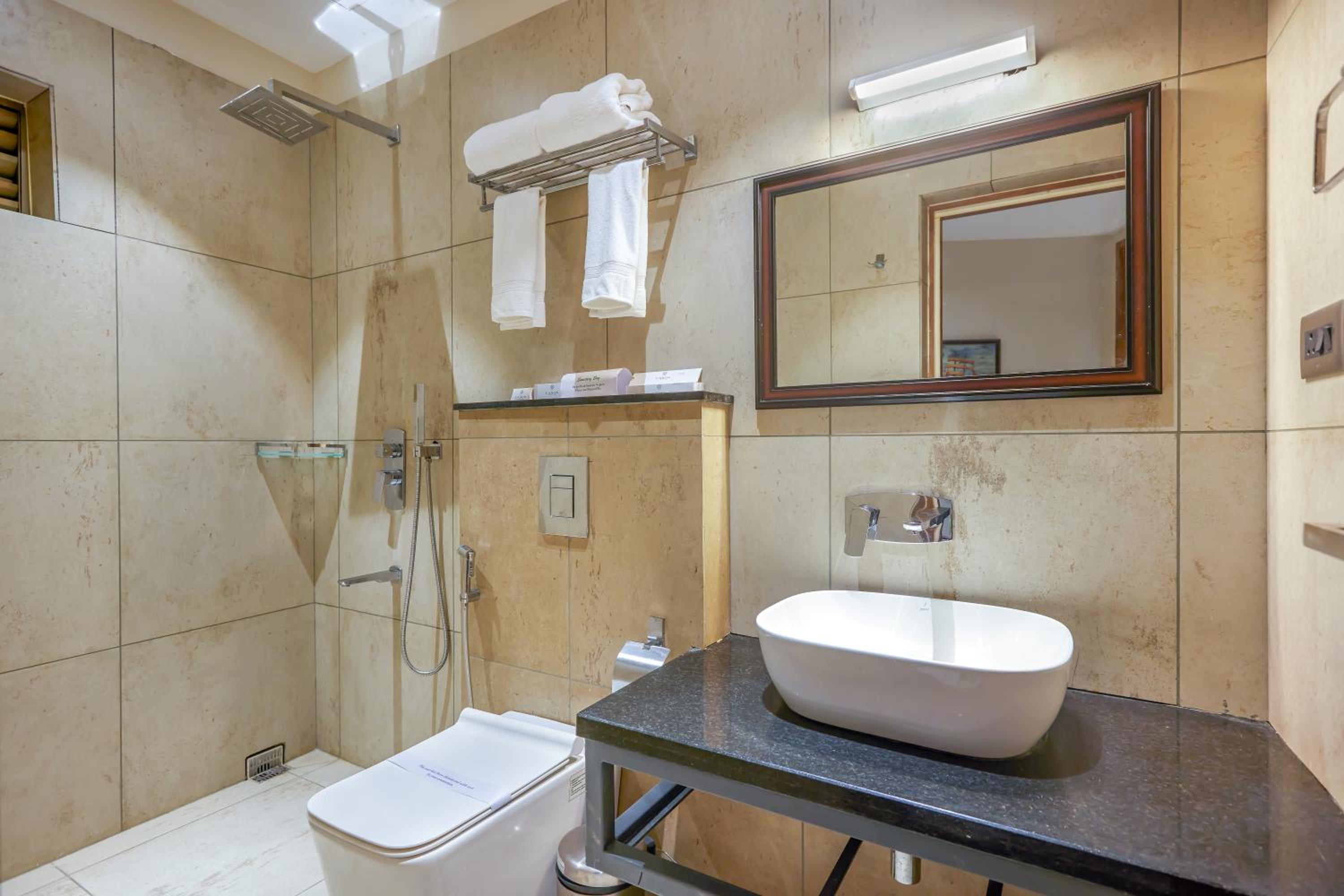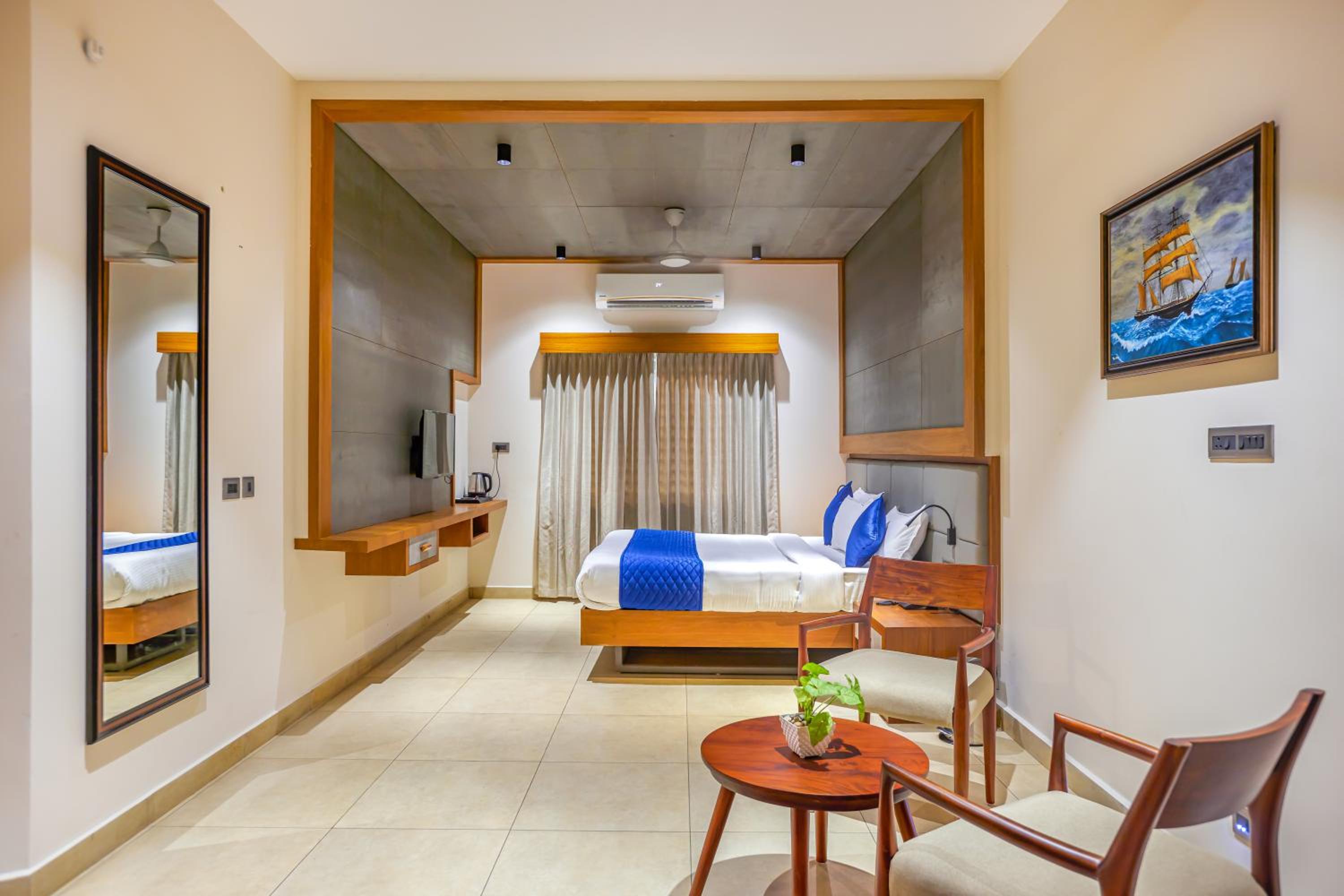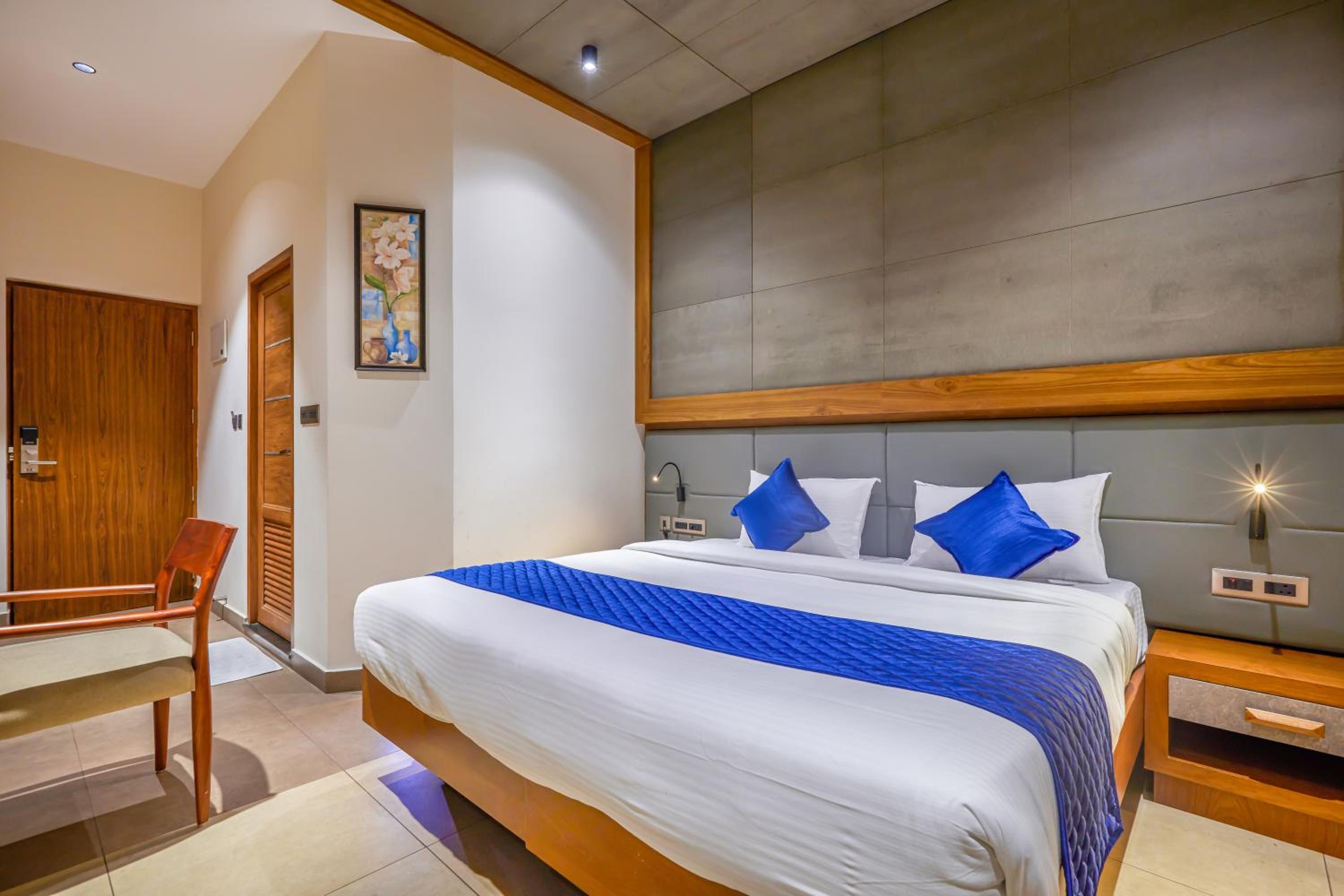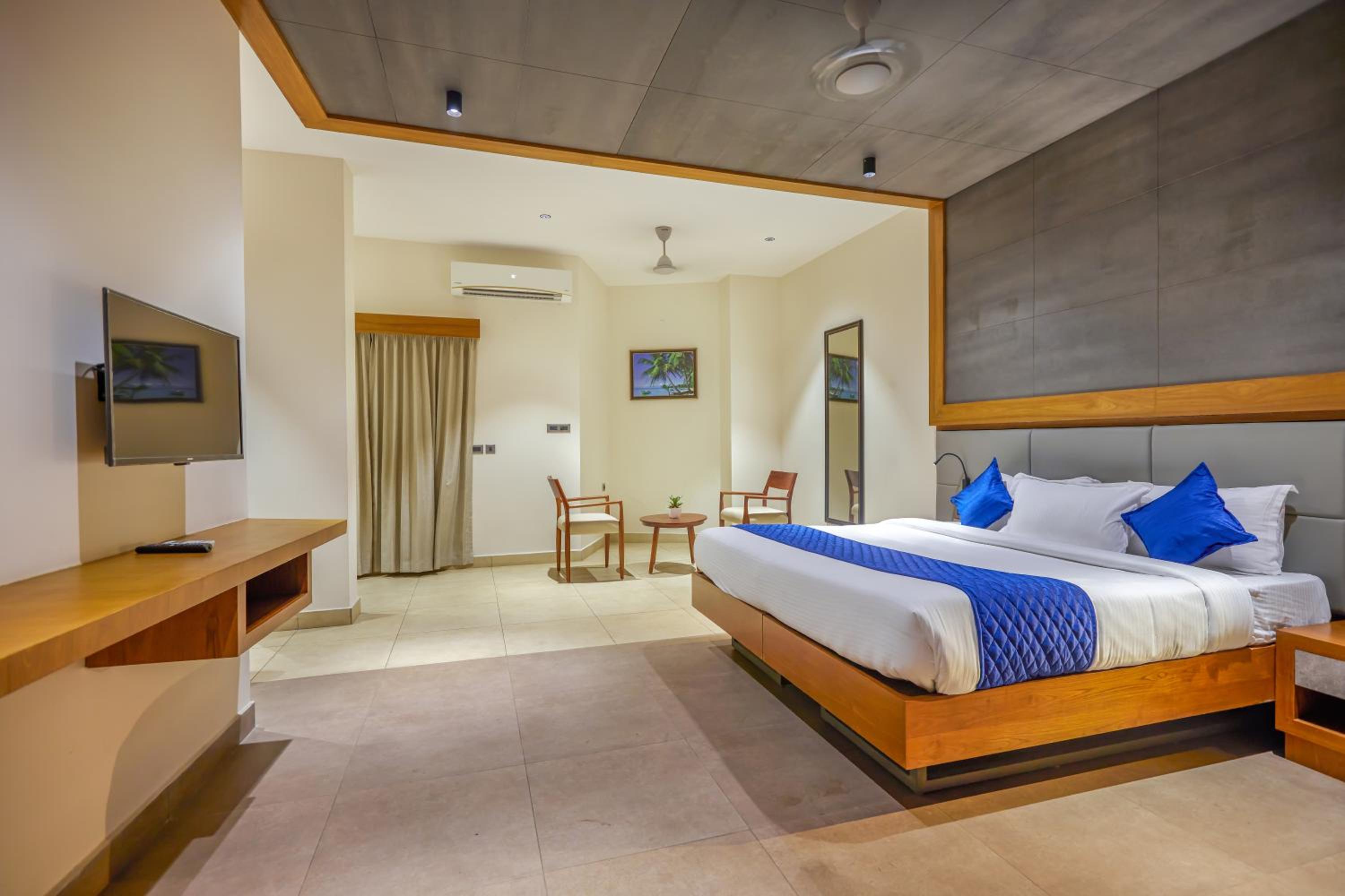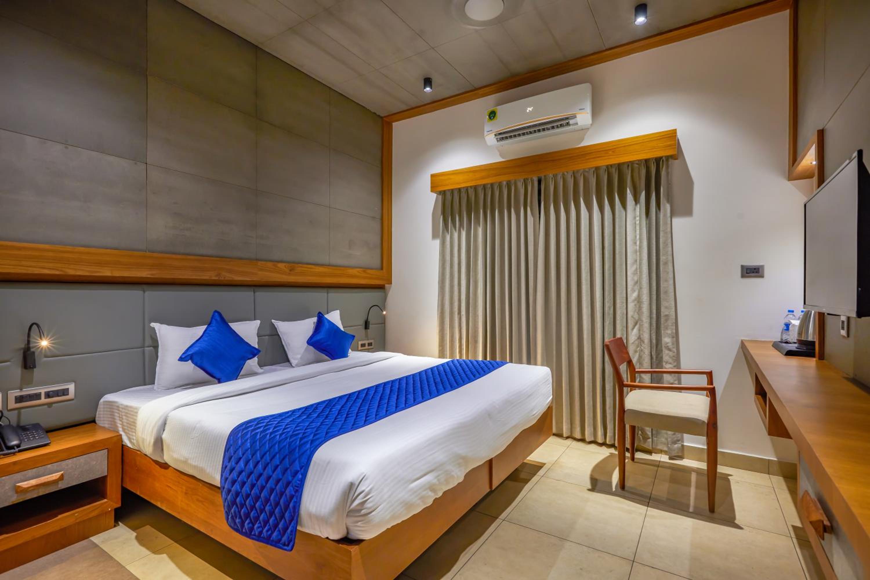 Closer to Calicut Airport and decent restaurants. The covered parking behind is great. Deluxe rooms are spacious.