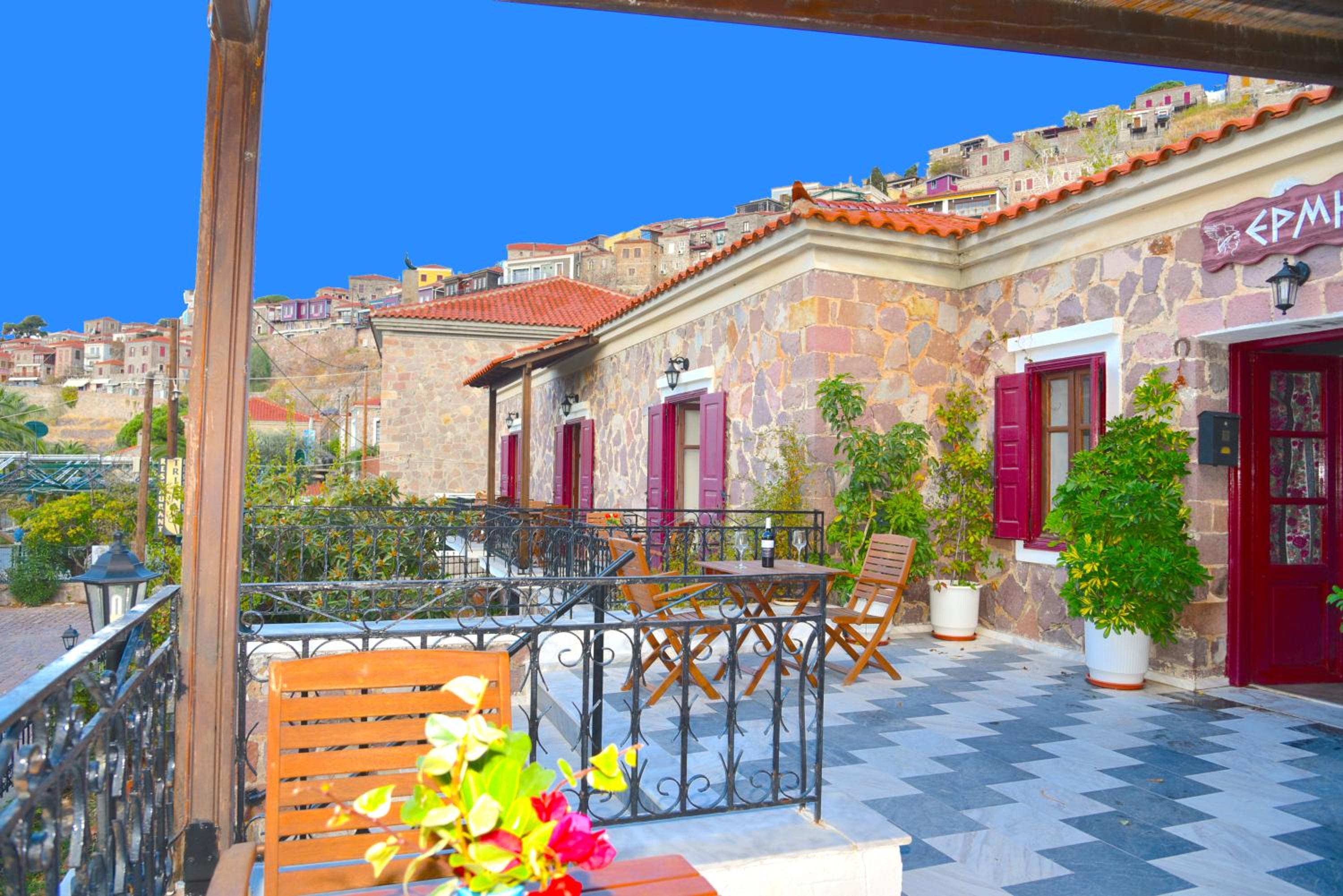 Konumu harika. Denize sıfır.Günbatımı manzaraları müthiş. Otel görevlisi Muhammet çok ilgili, bilgili, yardımsever ve espirili. Kendisine özellikle teşekkür ederiz.😀Tekrar Molivos’a geleceğim ve bu oteli tercih edeceğim.