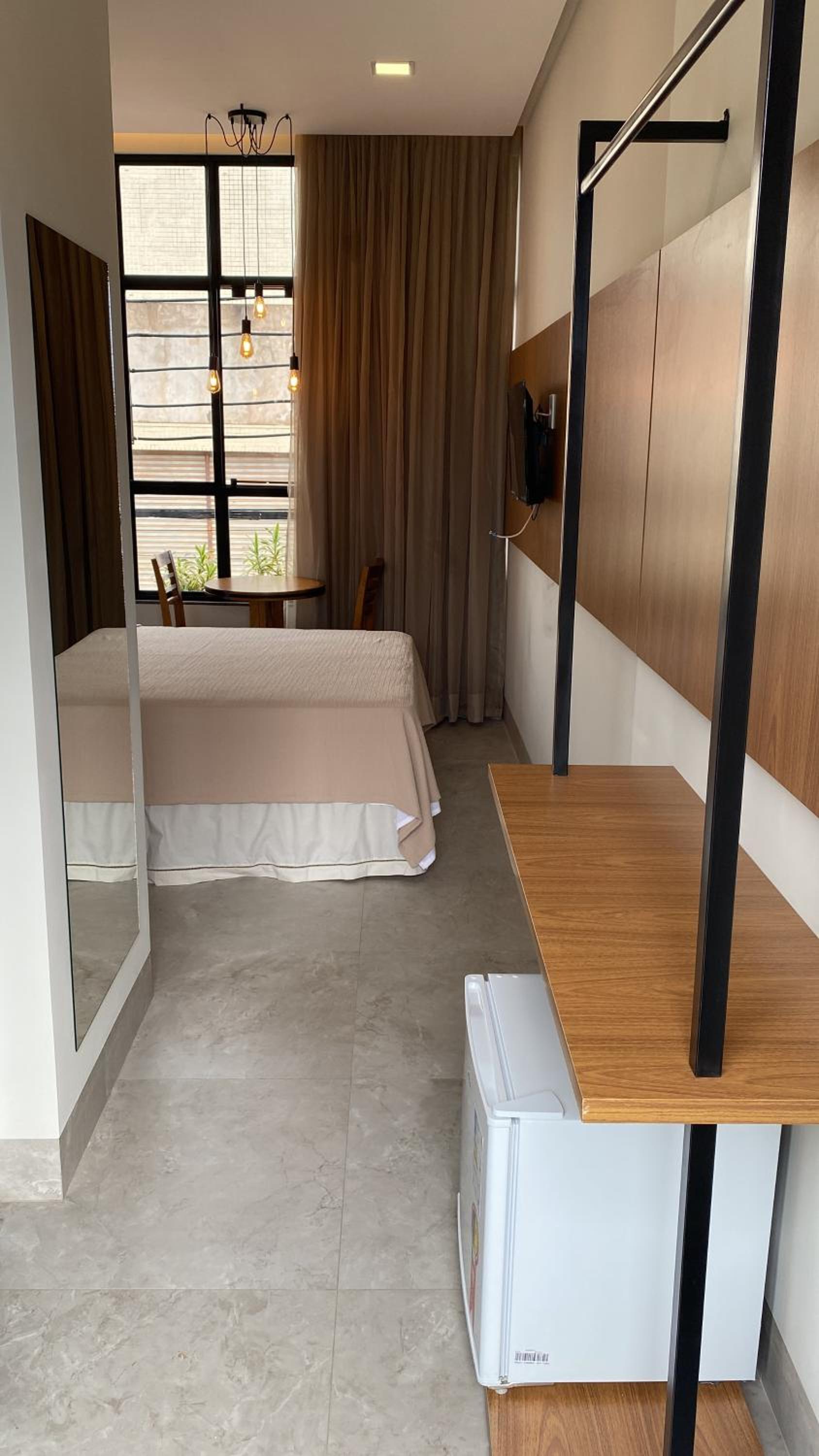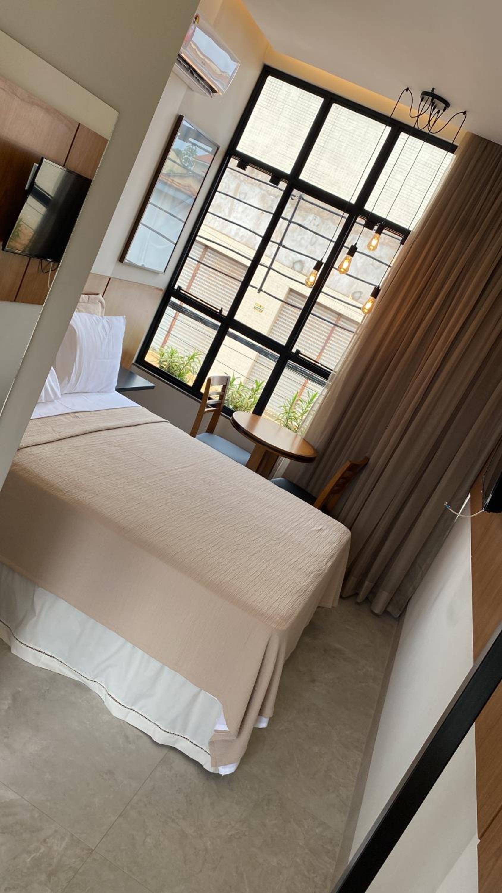 Um hotel moderno, reformado, atendimento excelente, tem garagem interna, café da manhã sortido e delicioso! Com certeza voltaria a me hospedar nele! O quarto é bem funcional!