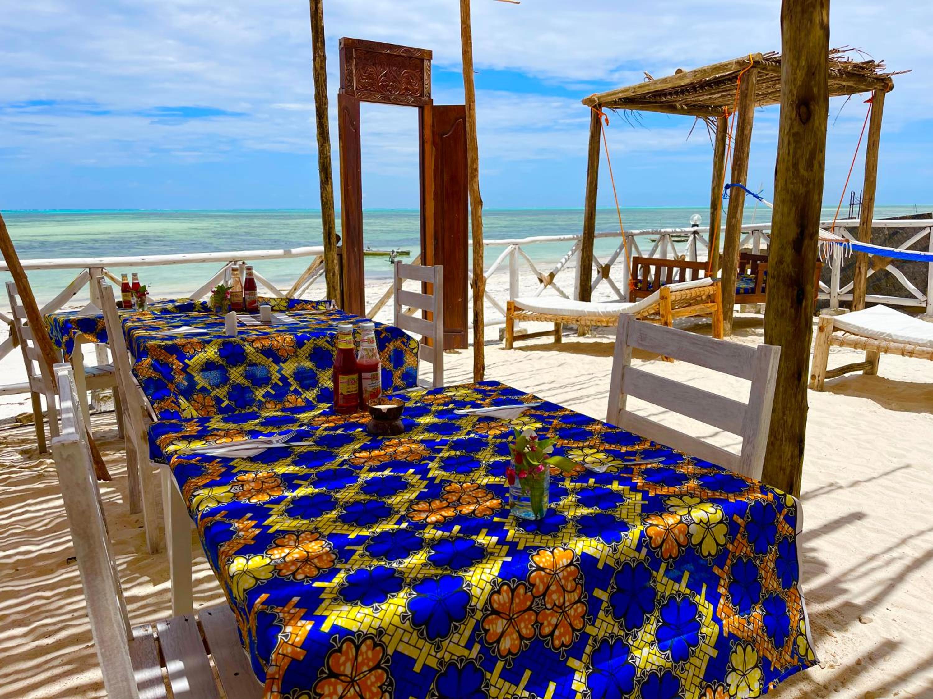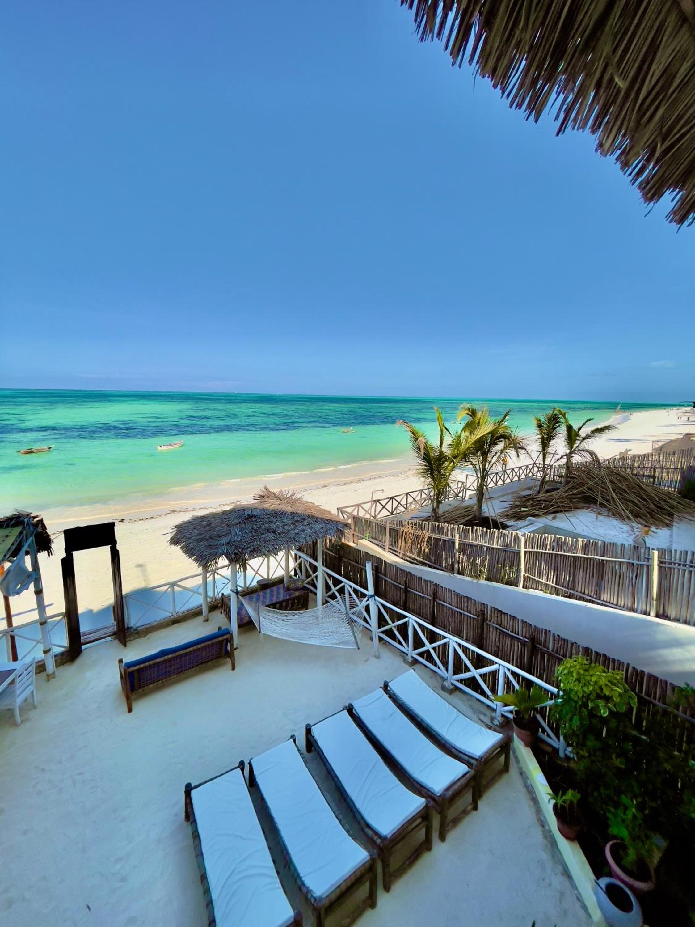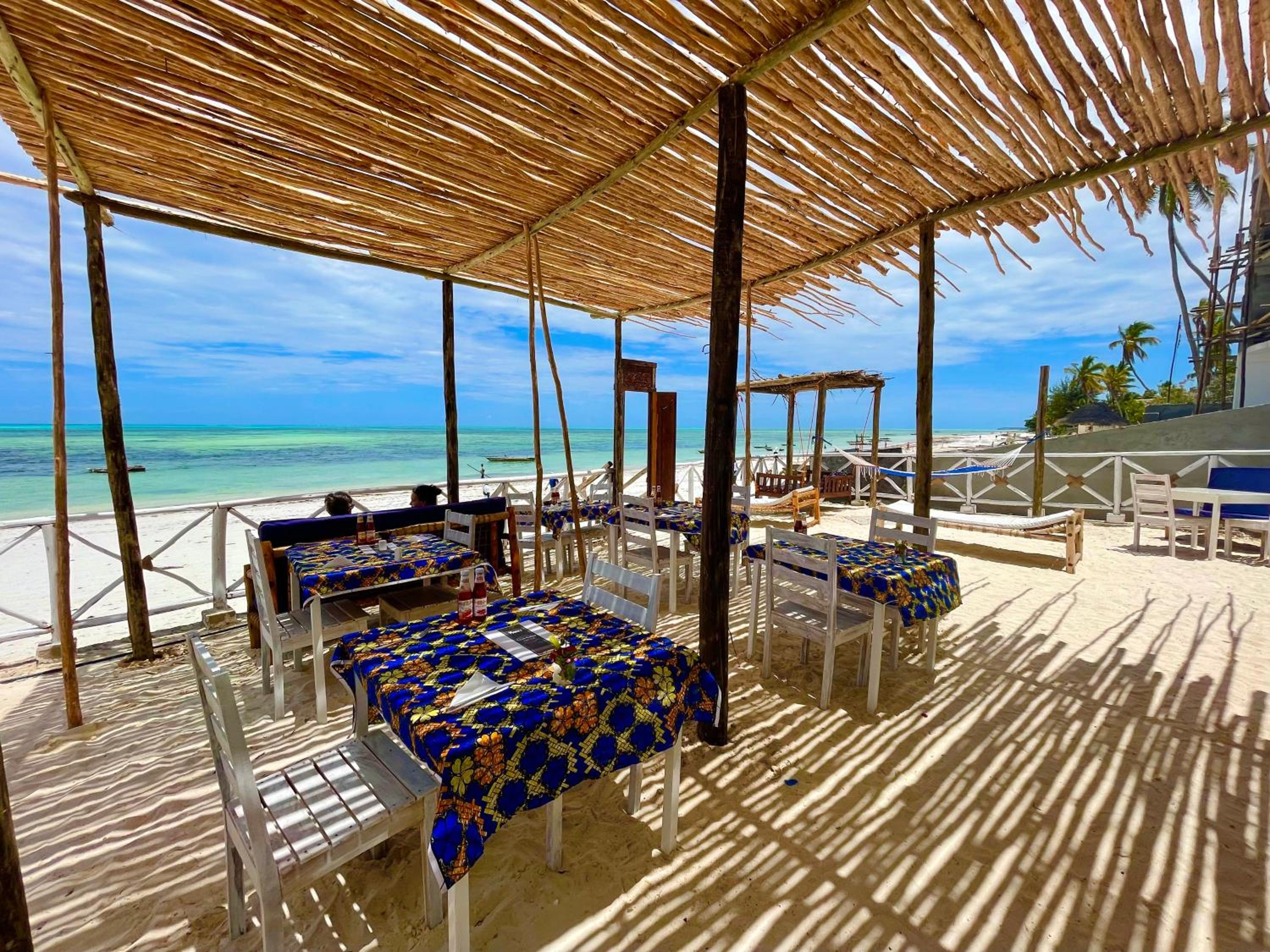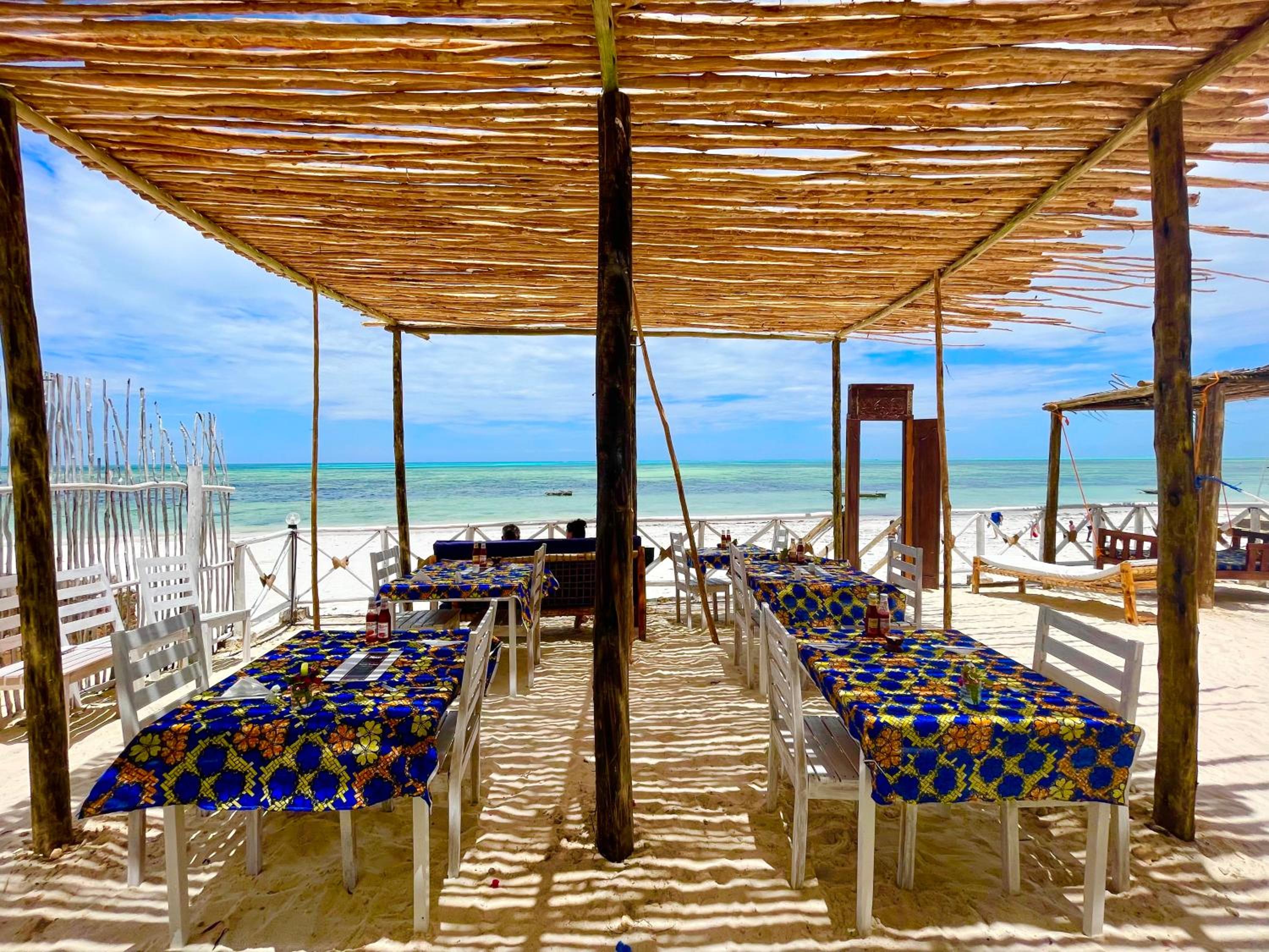 The property is in an amazing location right next to the beach in rural Jambiani, a lovely, quiet, and peaceful village. The seaweed farms in the ocean create a unique and beautiful view. The ocean-view rooms are the best, so I’d definitely recommend booking one of those.