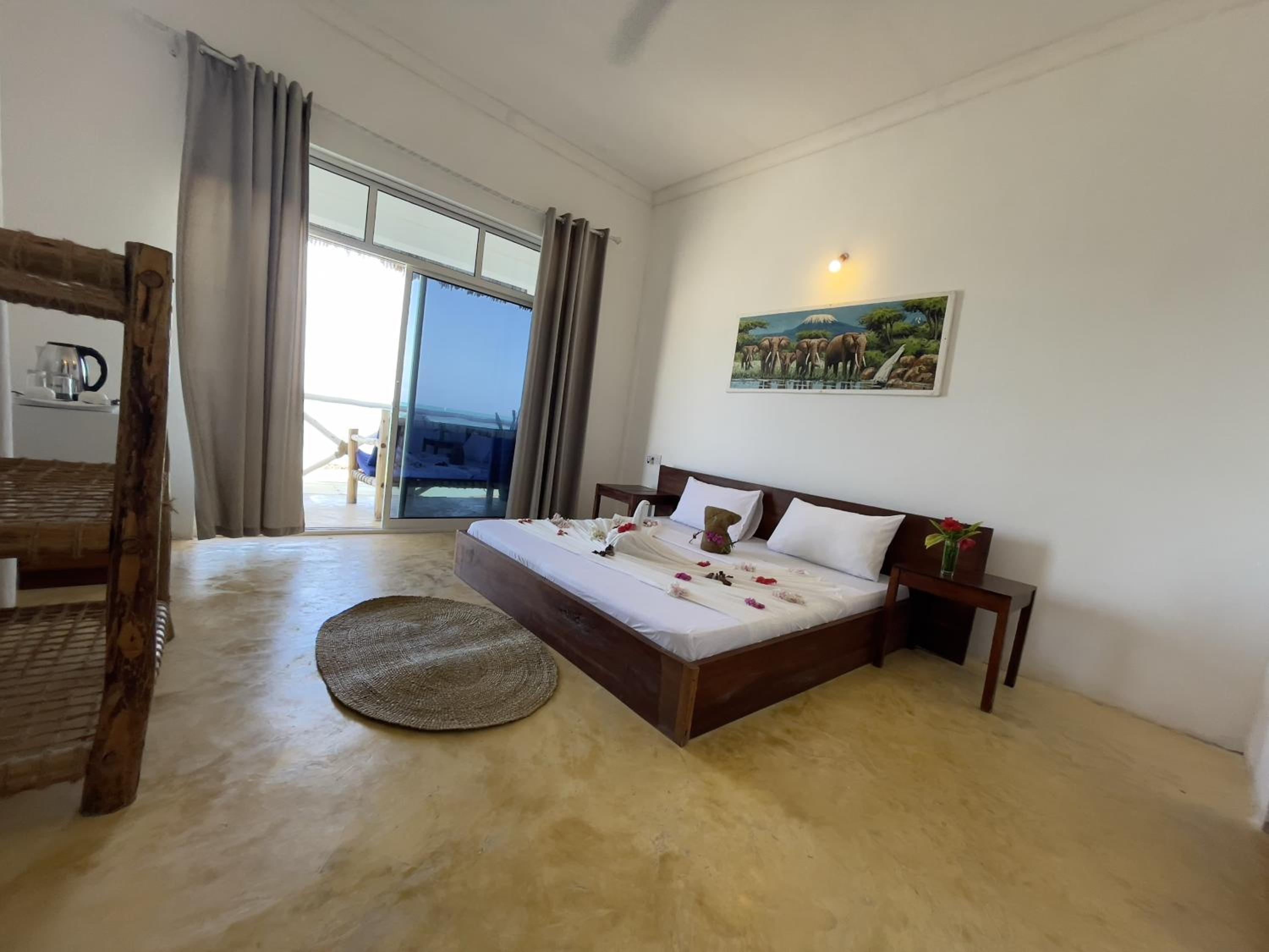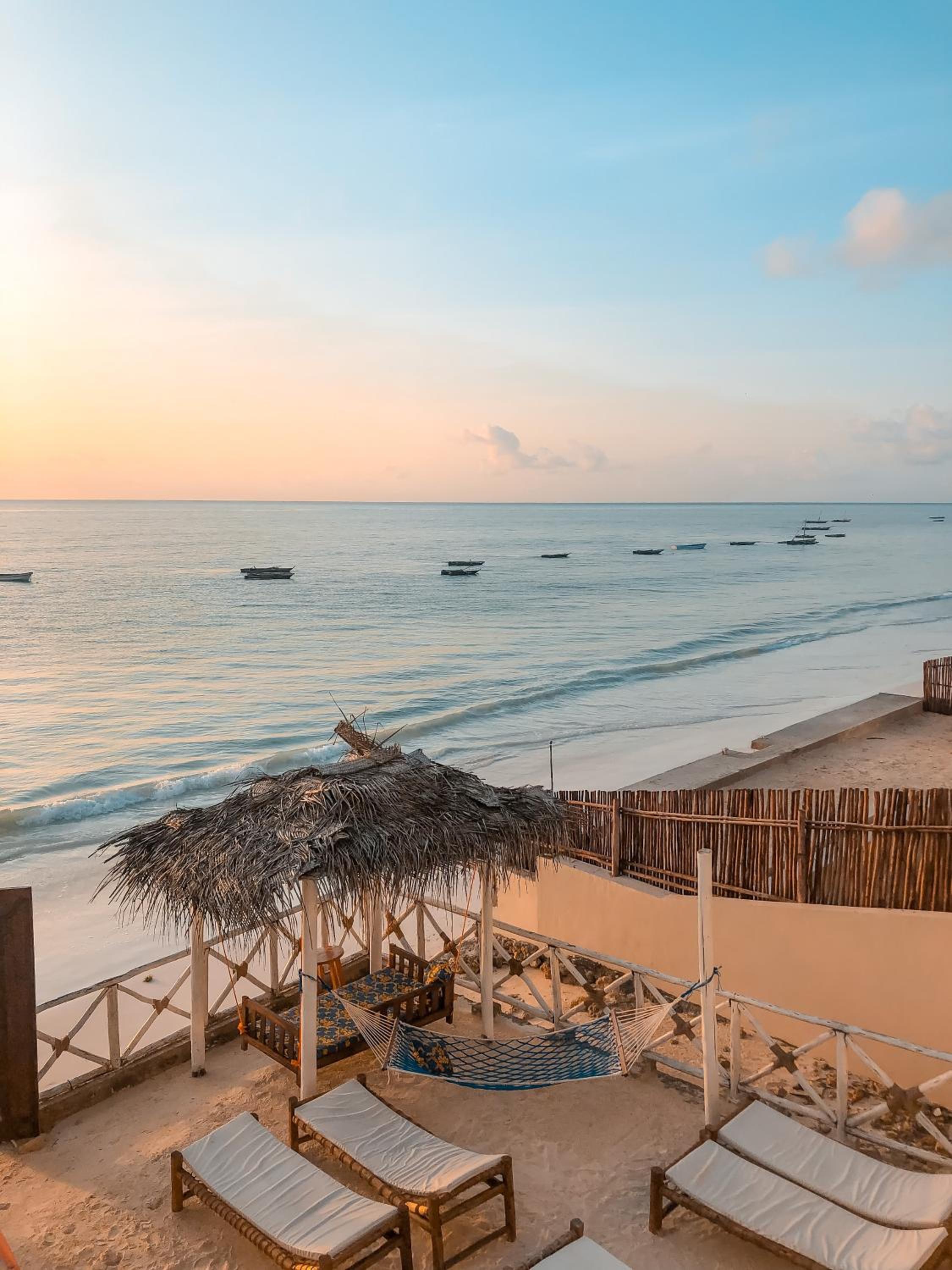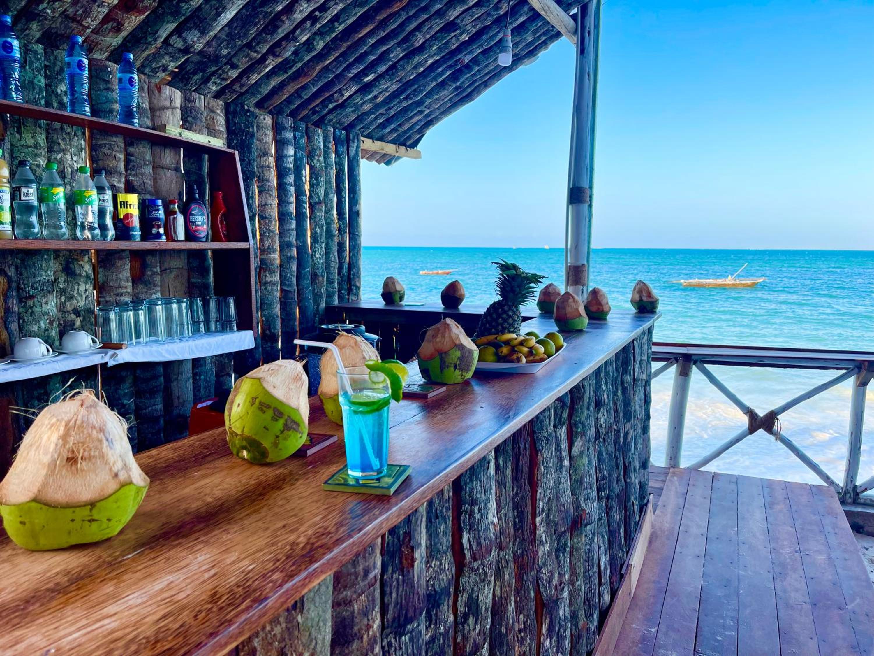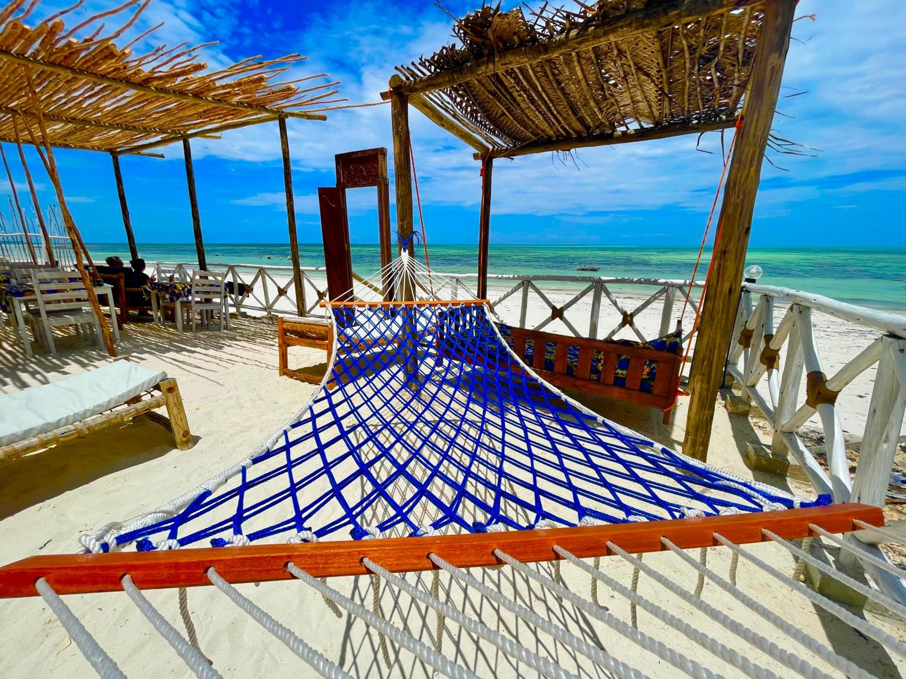The property is in an amazing location right next to the beach in rural Jambiani, a lovely, quiet, and peaceful village. The seaweed farms in the ocean create a unique and beautiful view. The ocean-view rooms are the best, so I’d definitely recommend booking one of those.