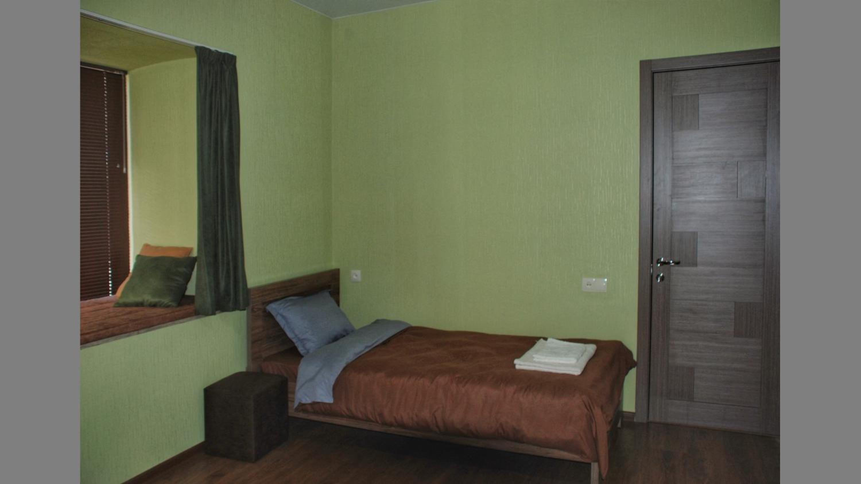 Интересный образ гостевого дома (это не отель) на картинке, в принципе соответствует реальности, но по факту он такой симпатичный только с лицевой стороны ), но на проживание это не влияет. Интересный номер, с лежаком на подоконнике. Автомобиль парковал на дороге перед окном.