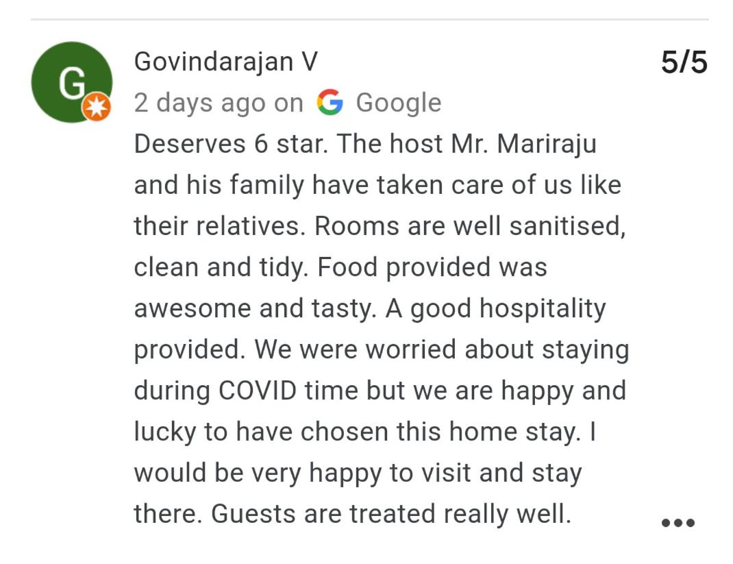 The room was excellent and very clean and tidy .. and the host was extremely good... He took care of us like family.. right from basic needs to arranging our itinerary and suggesting where to and where not to and directing us to restaurants that suited us, he took care of everything..he even arranged auto rikshaw with a Tamil speaking driver as we are from Tamilnadu. Thank you Krishna Homestay for making us feel home..