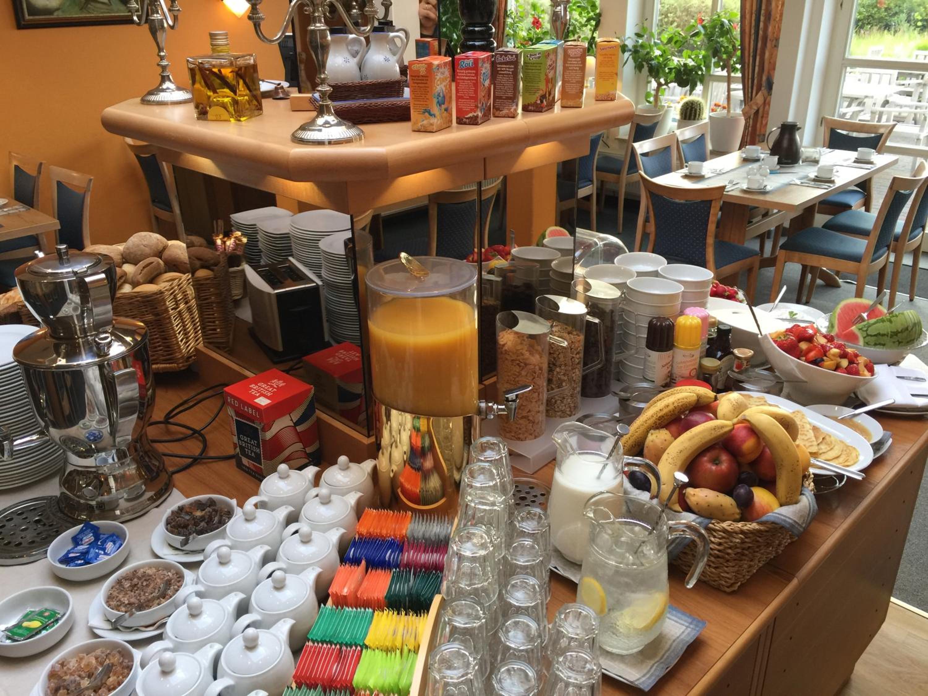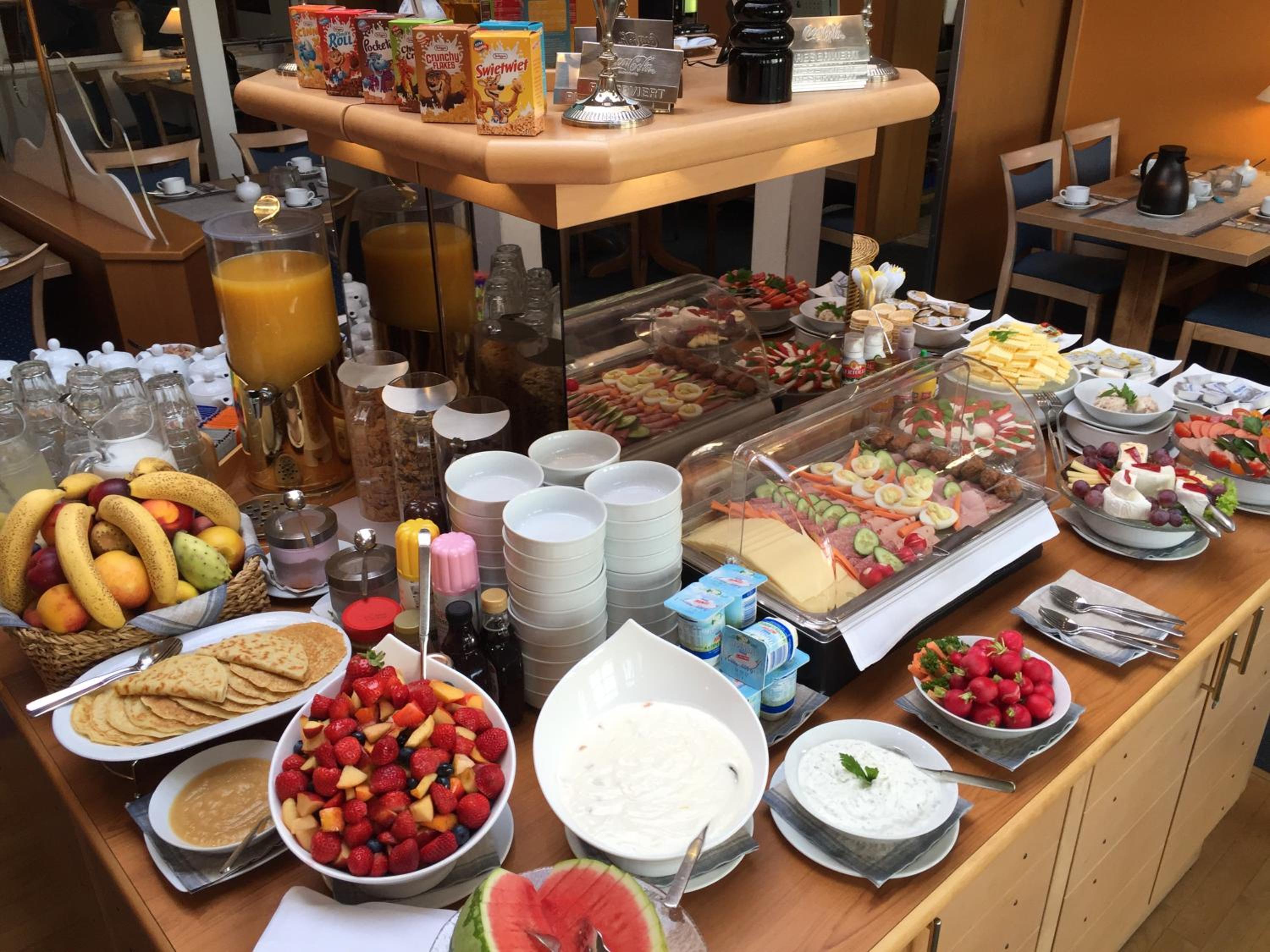 Wir hatten ein reichhaltiges schönes Frühstücksbuffet.Abends haben wir im Hotelrestaurant gegessen.Unglaublich gut und lecker.Es gibt rundherum schon Restaurants, aber es war hier so schmackhaft und reichlich darum sind wir abends nicht nochmal rausfahren.
