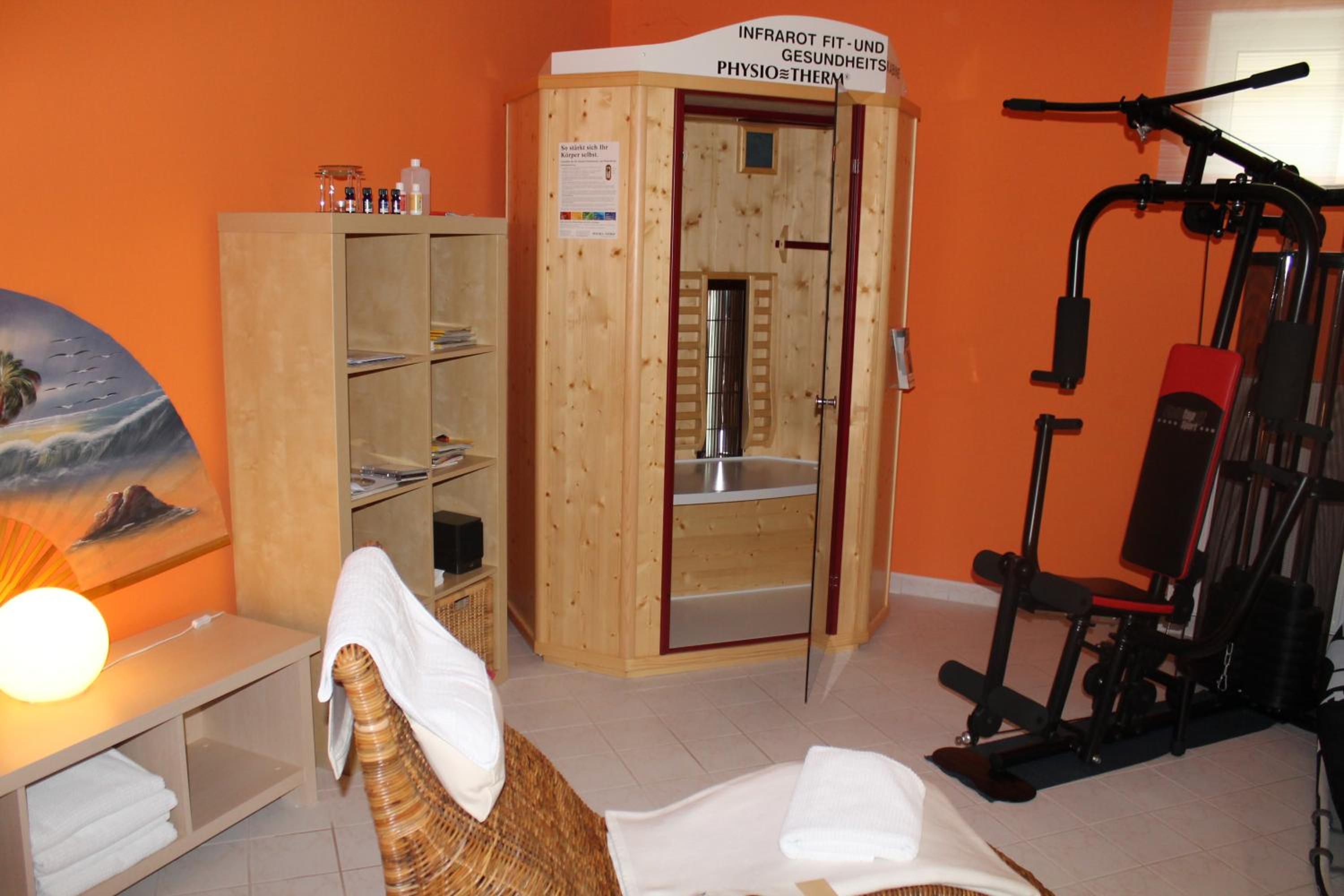 The infrared sauna and the fitness room in the basement are free of charge for guests. The infrared sauna fits up to 2 people, for example a couple.