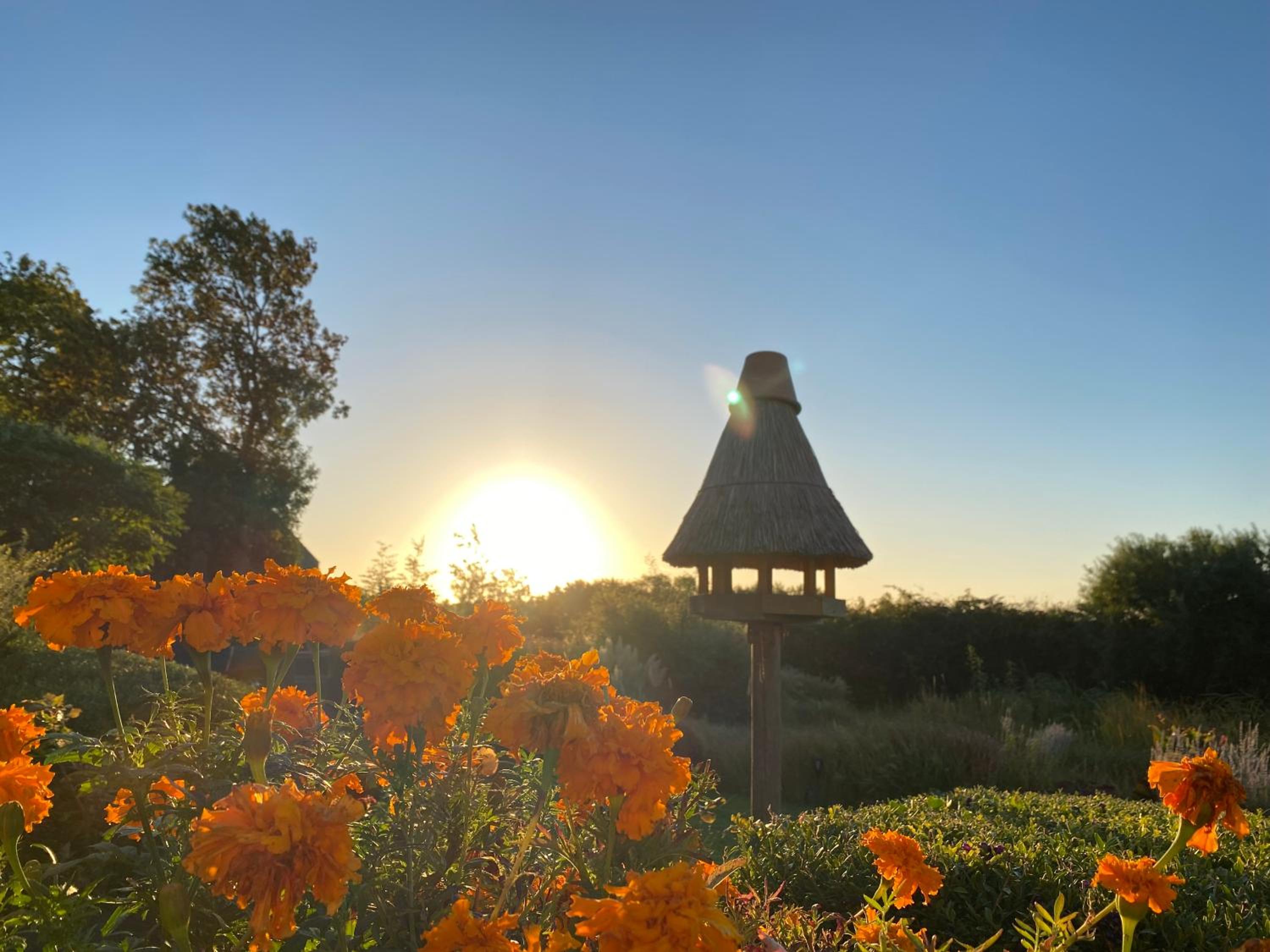 Der Garten ist ein Traum.Das Wetter war noch gut,sodass man dort noch am Teich sitzen konnte.Zimmerservice top.Alles sauber.