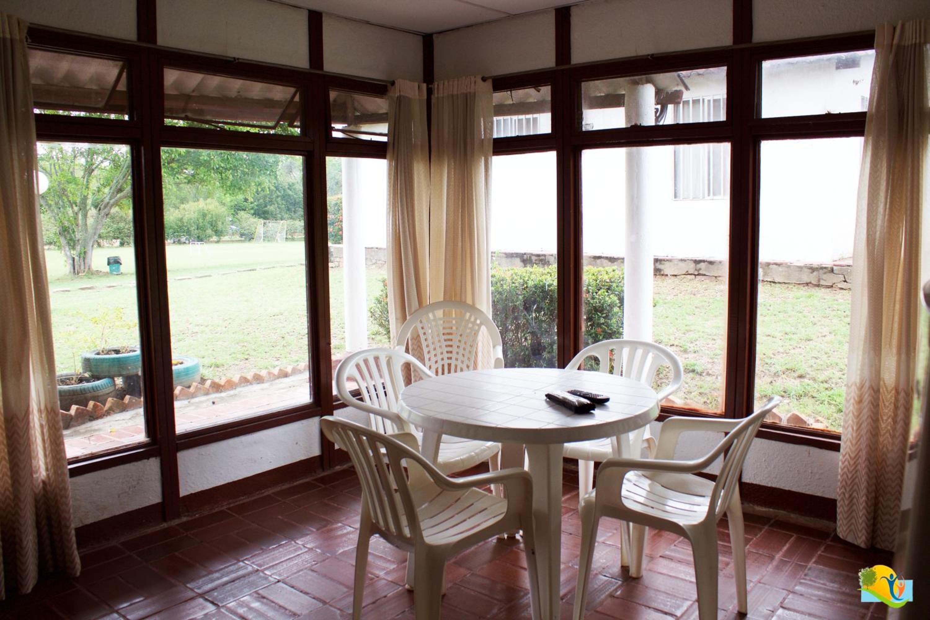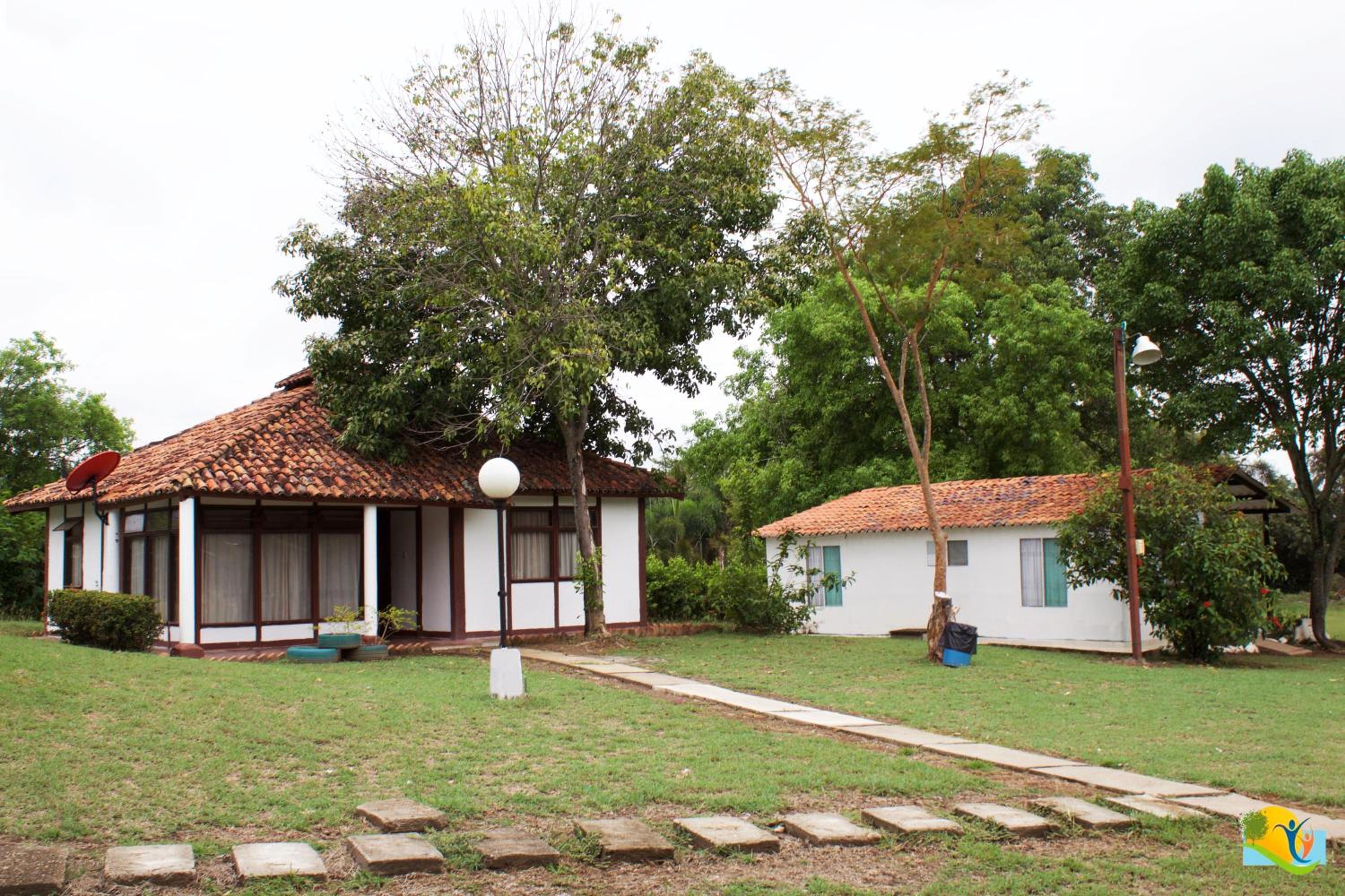 Outdoor Fun and Relaxation: Hotel Campestre CENVATURS offers a serene escape with an outdoor pool, lush garden, and shared lounge for unwinding after a day of adventure.